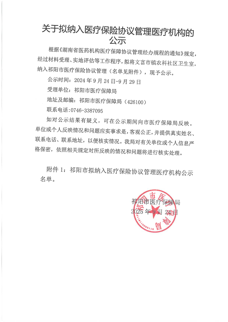关于拟纳入医疗保险协议管理医疗机构的公示