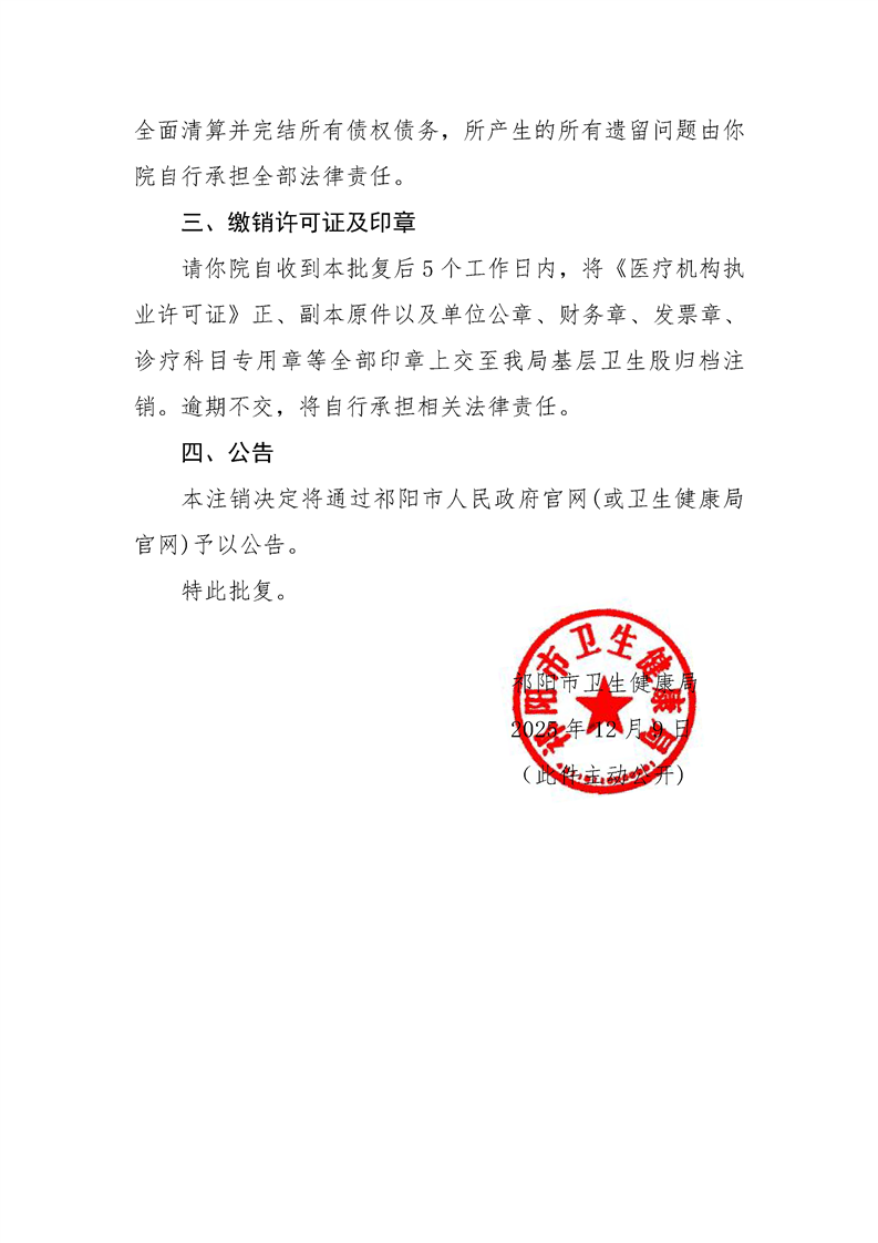 关于同意注销祁阳市龙山街道社区卫生服务中心盘龙东路口腔门诊《医疗机构执业许可证》的批复