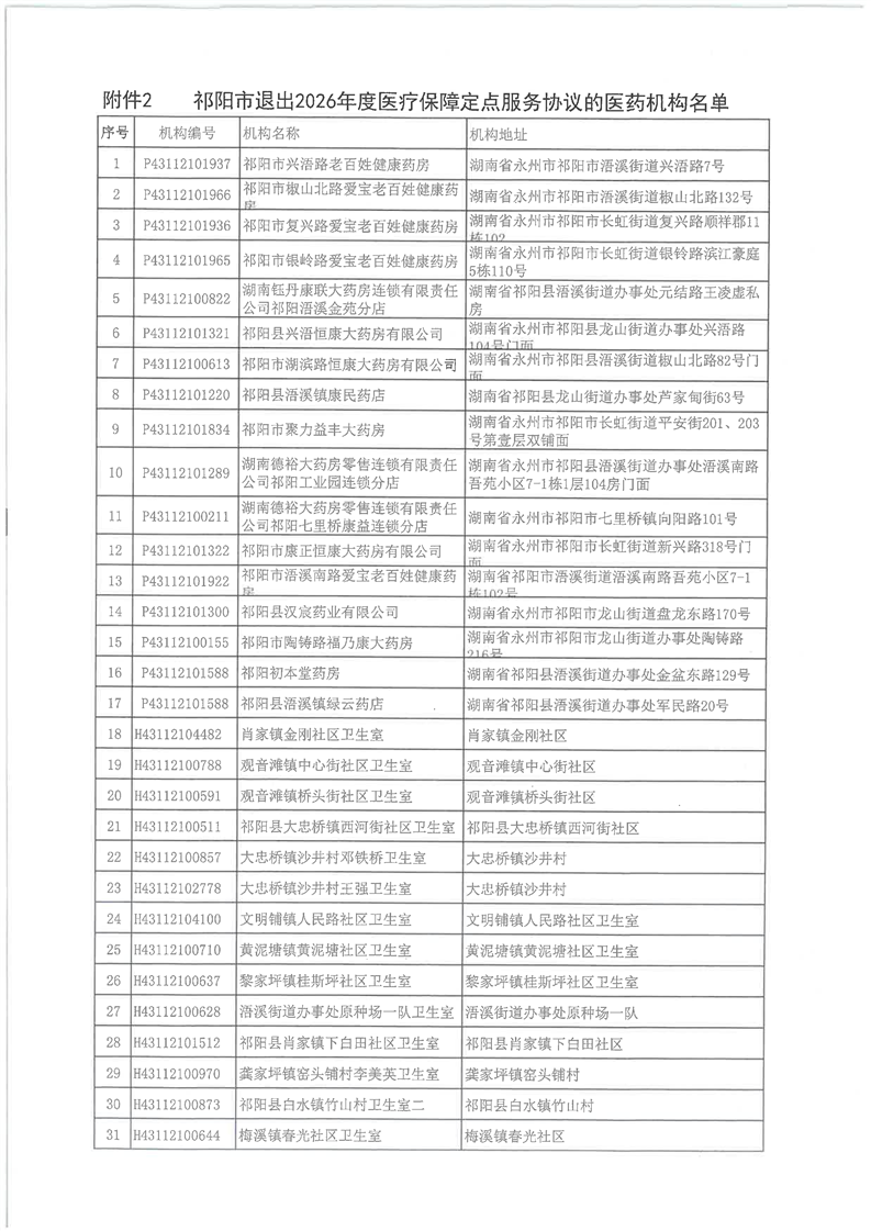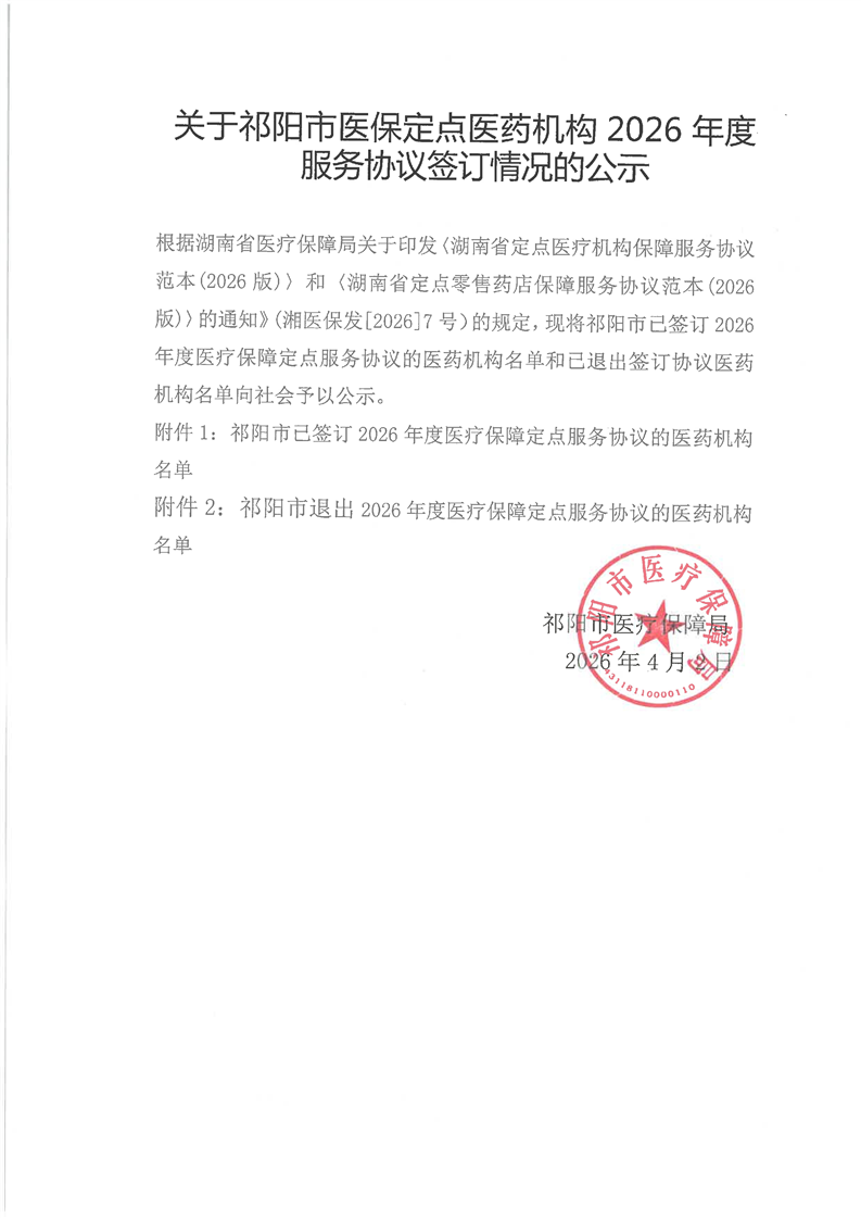 关于祁阳市医保定点医药机构2026年度服务协议签订情况的公示