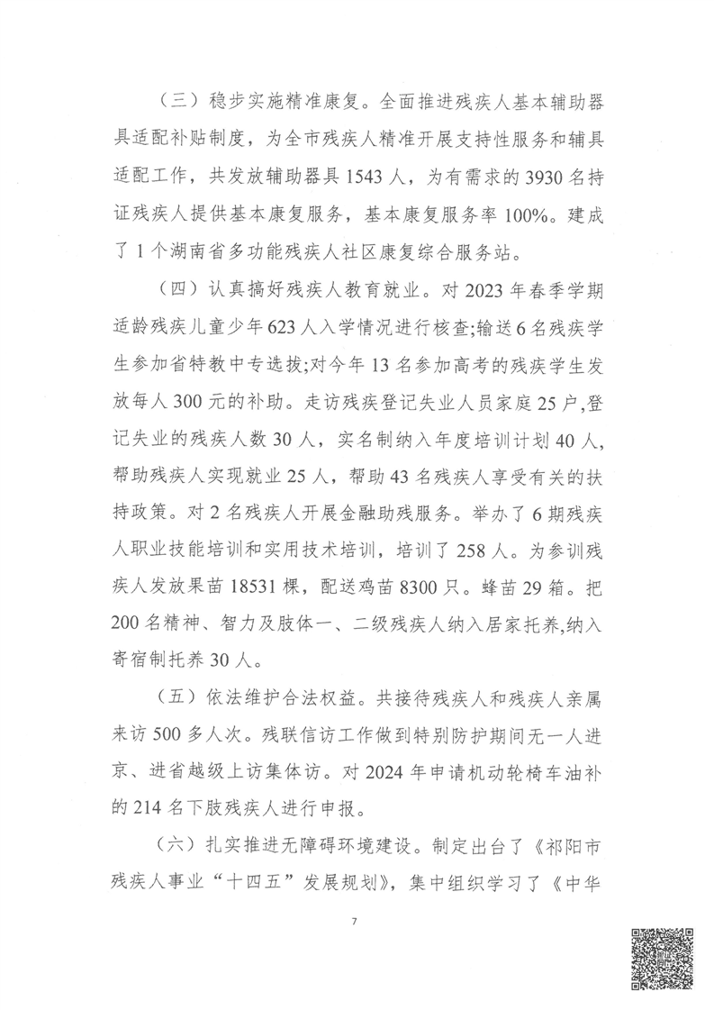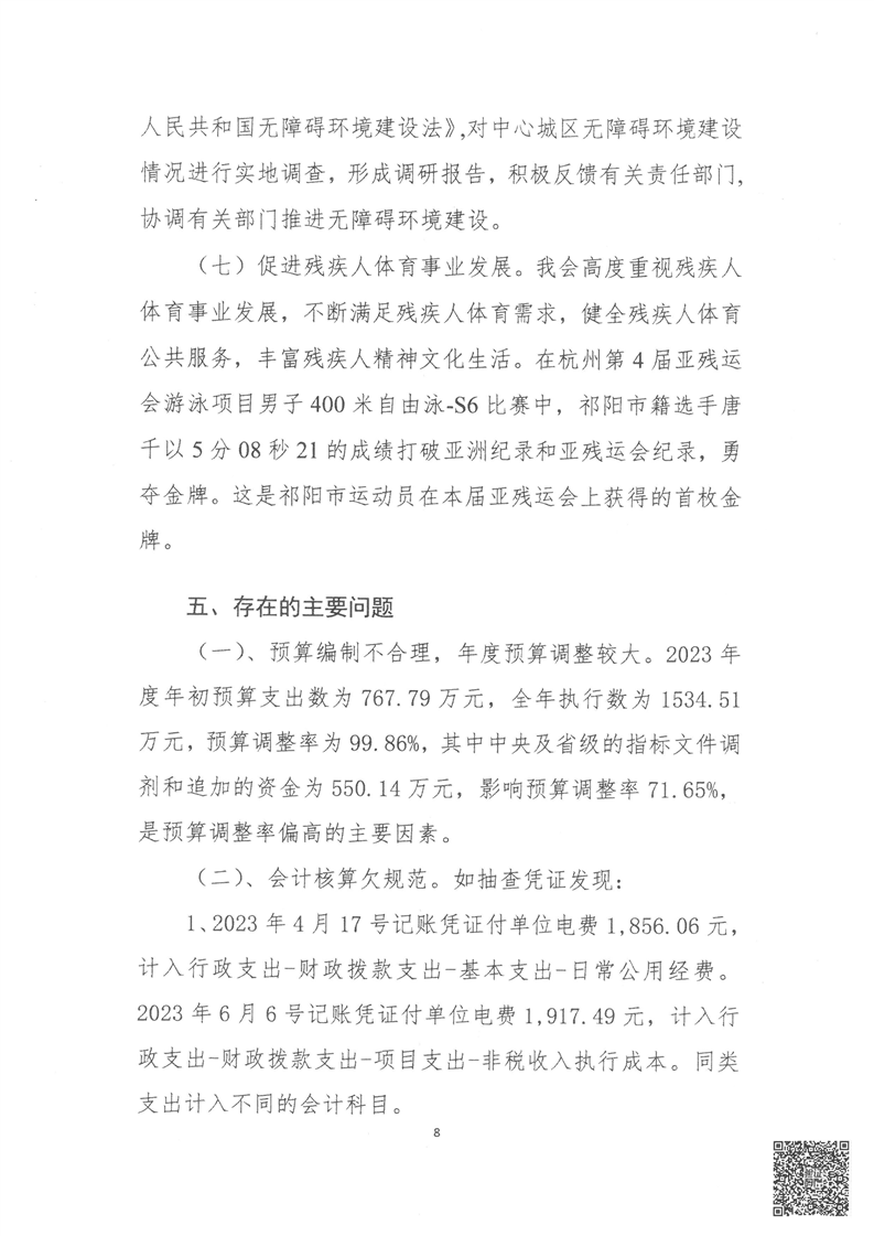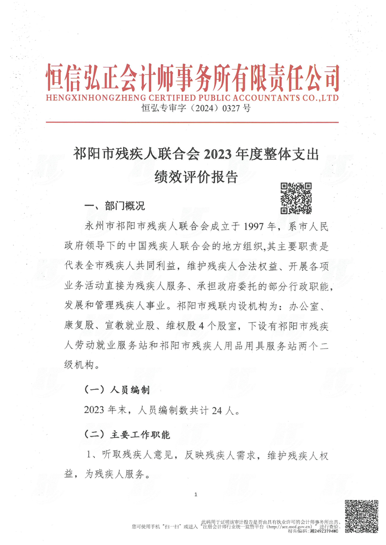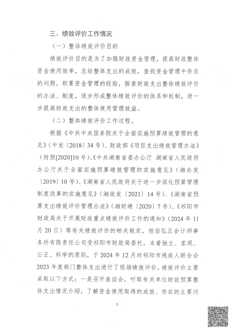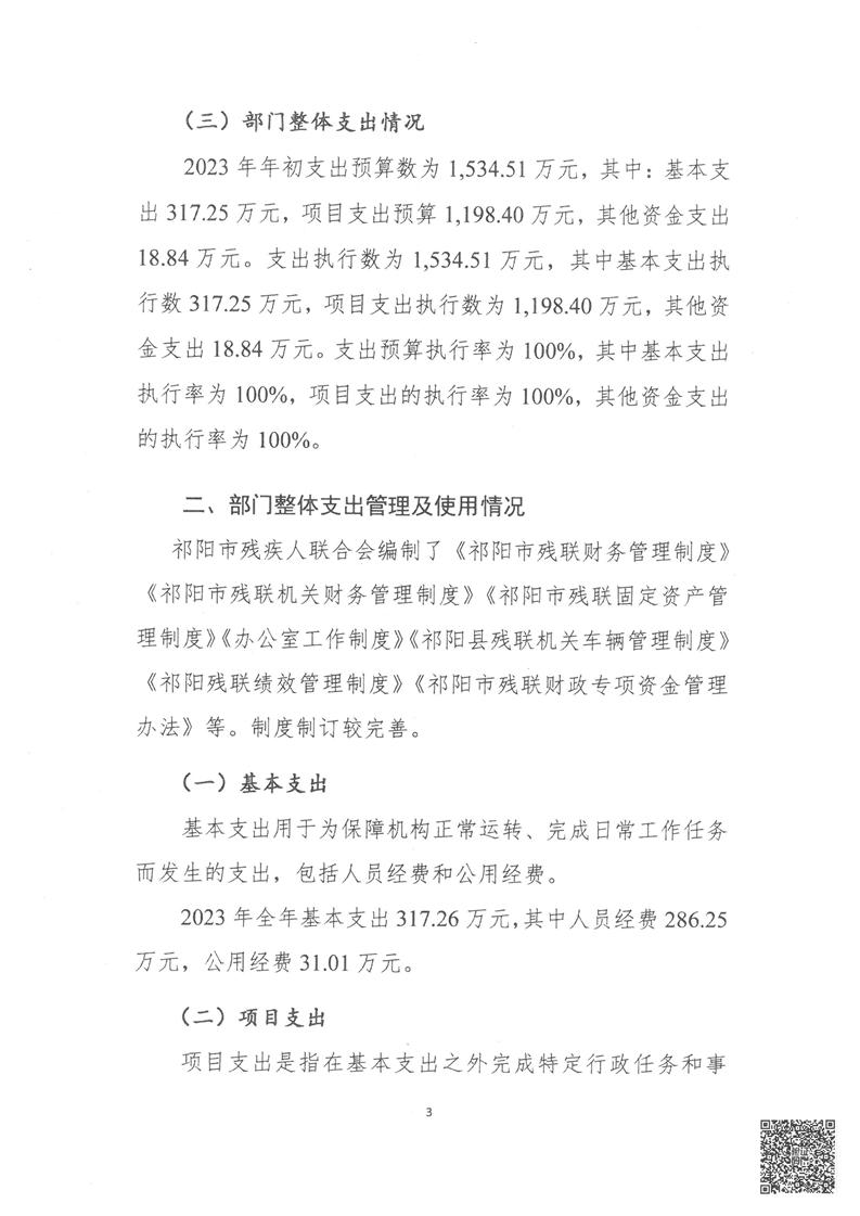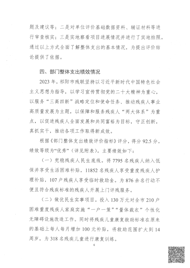 祁阳市残疾人联合会2023年度整体支出绩效评价报告