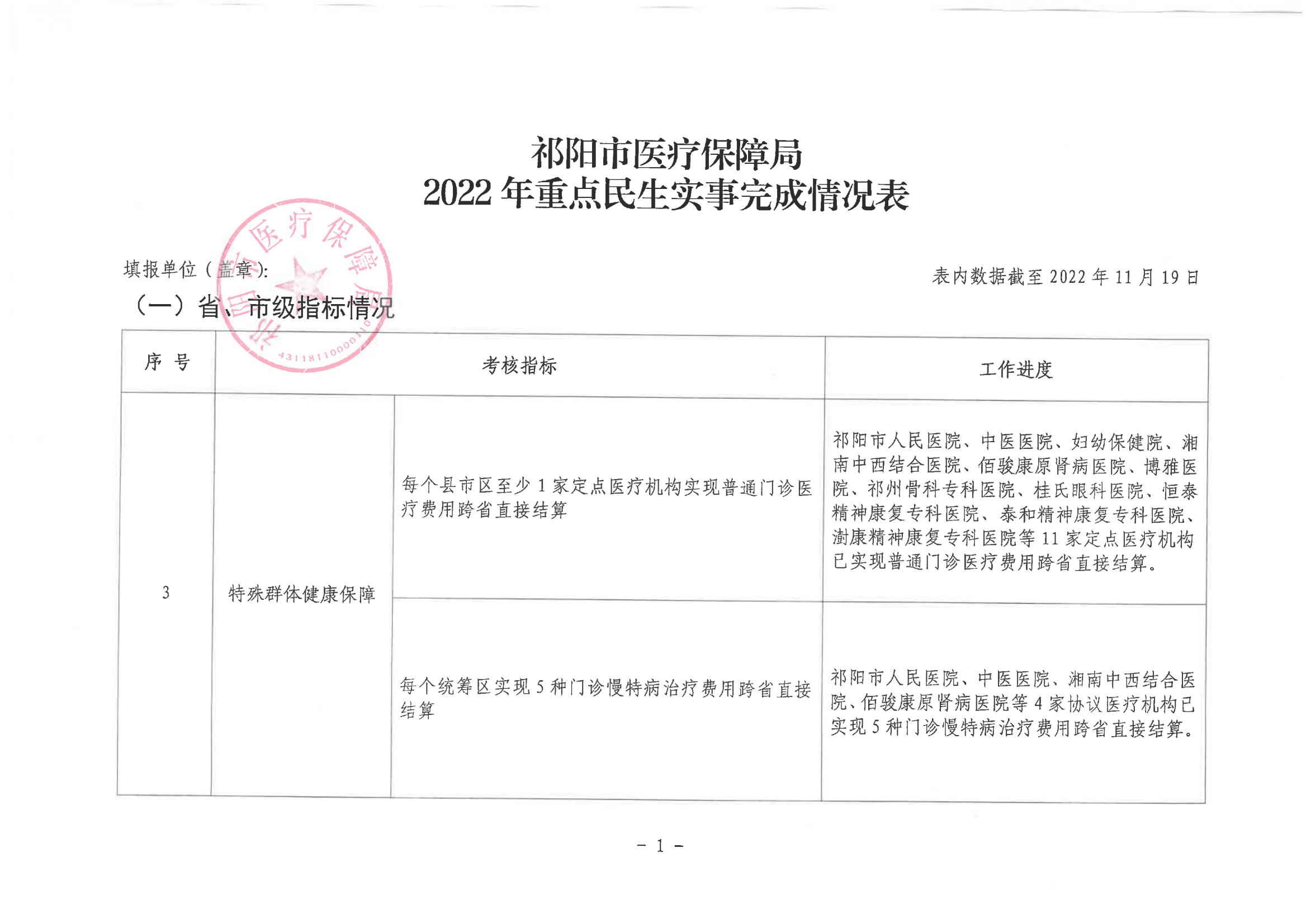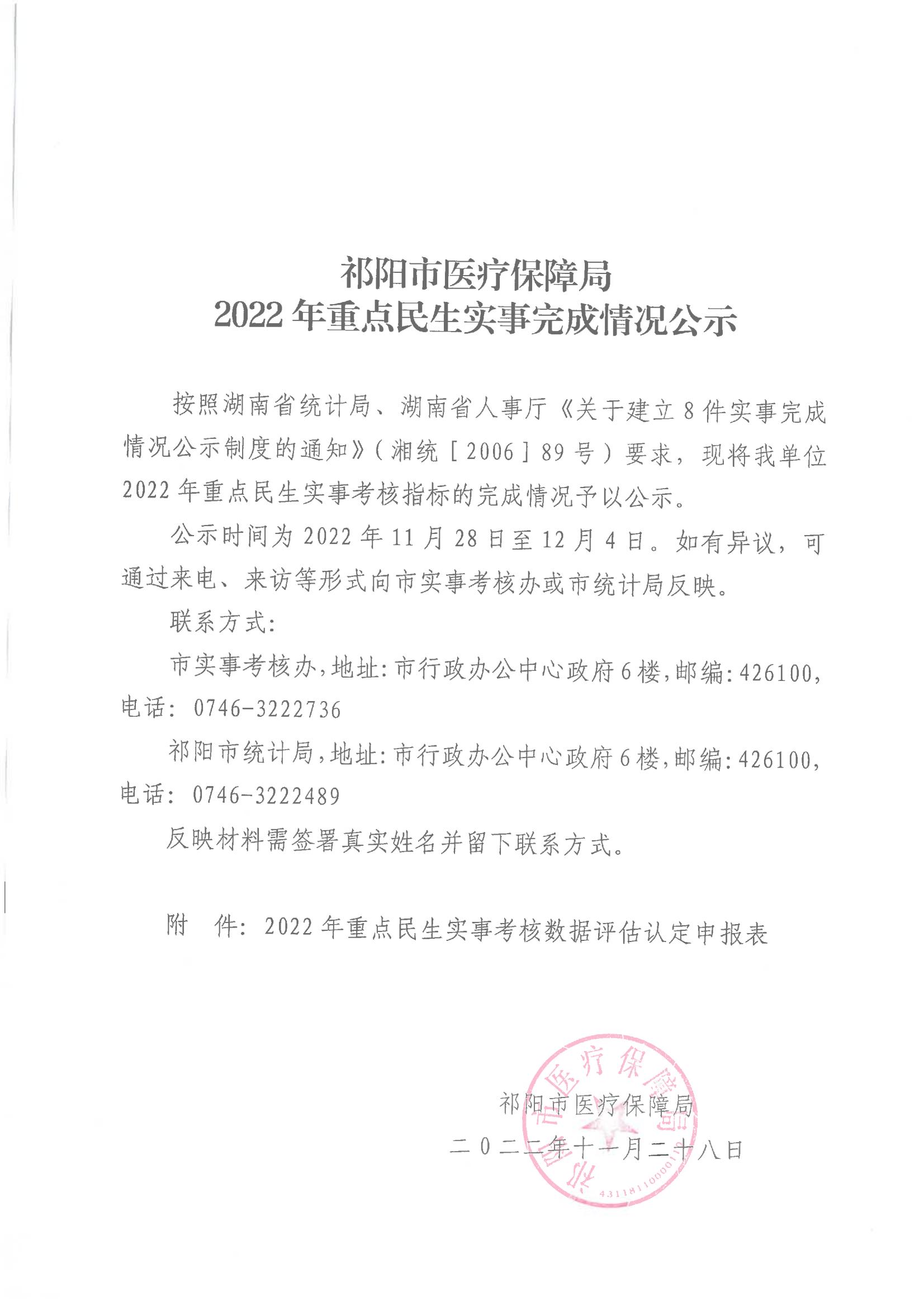 祁阳市医疗保障局2022年重点民生实事完成情况公示