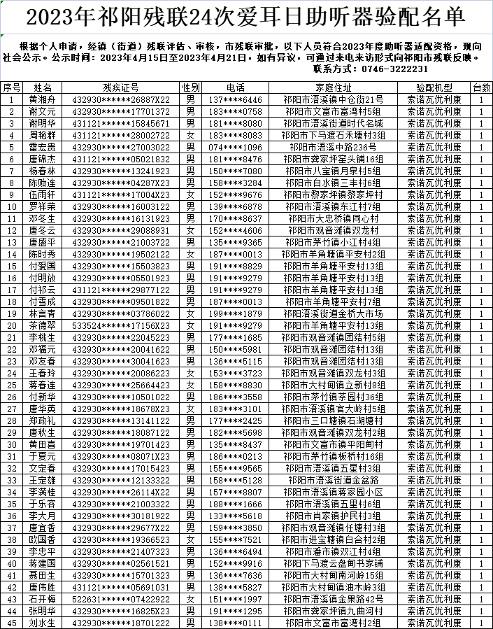 2023年祁阳残联24次爱耳日助听器验配名单