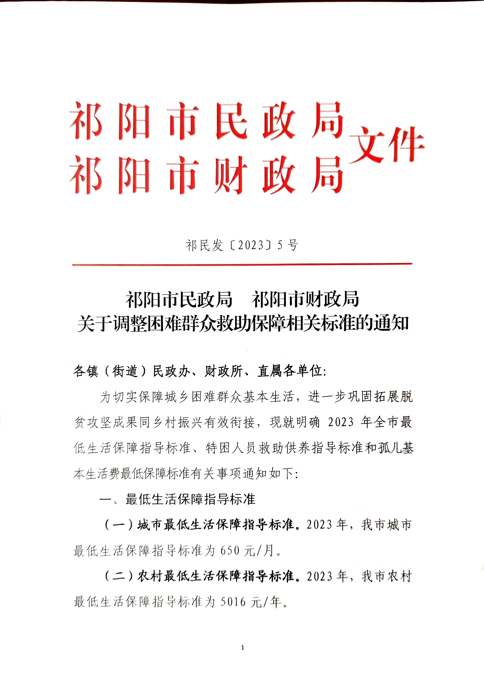 祁阳市民政局 祁阳市财政局关于调整困难群众救助保障相关标准的通知