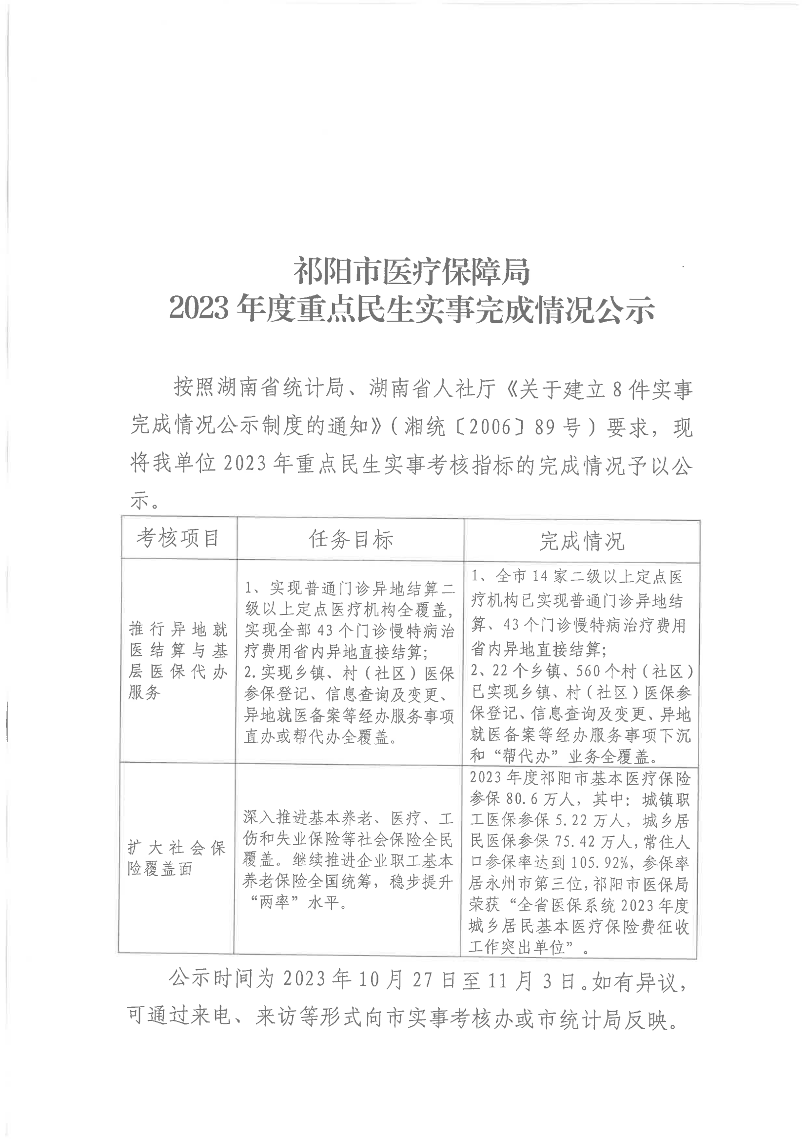 祁阳市医疗保障局2023年度重点民生实事完成情况公示