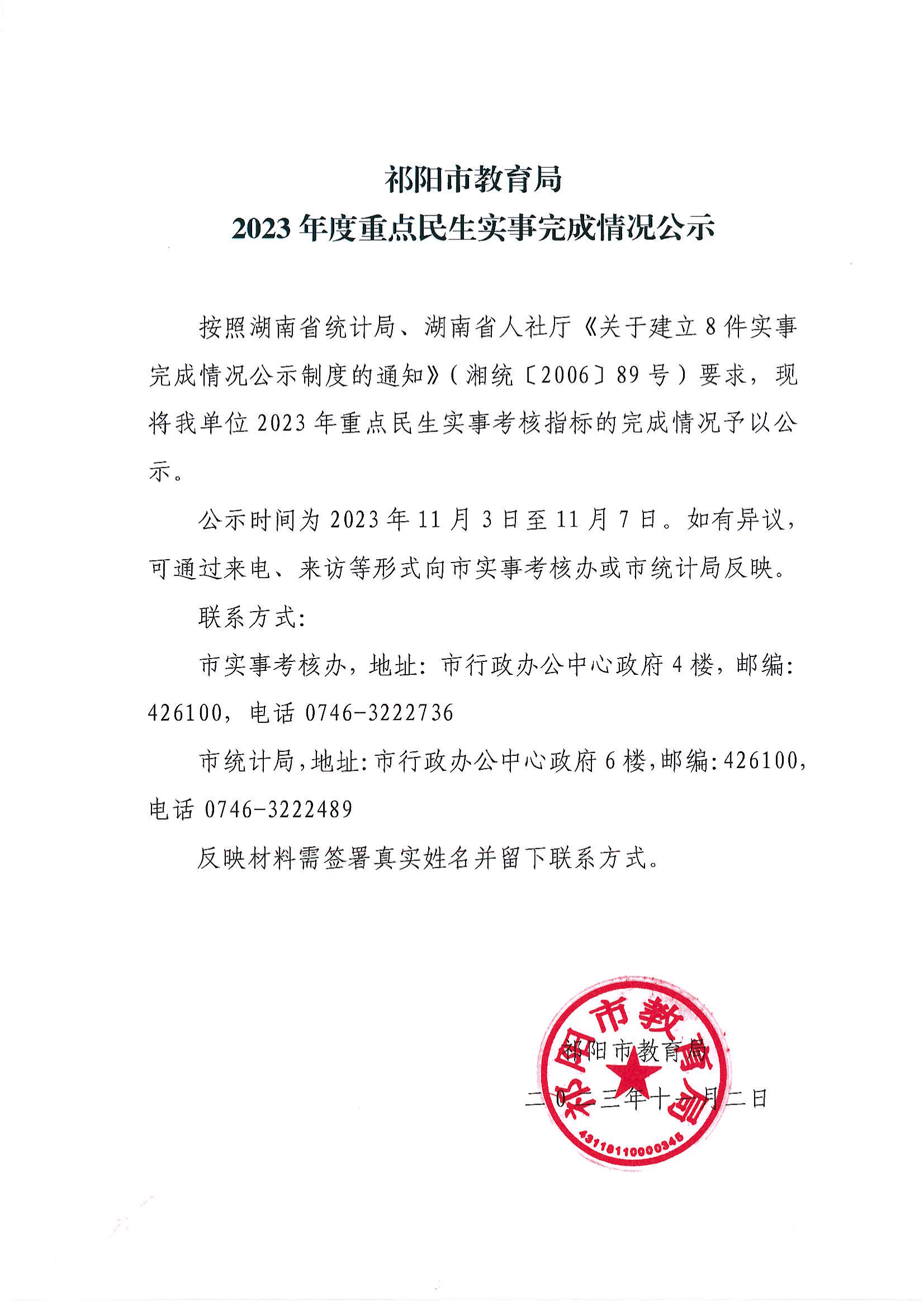祁阳市教育局2023年度重点民生实事完成情况公示