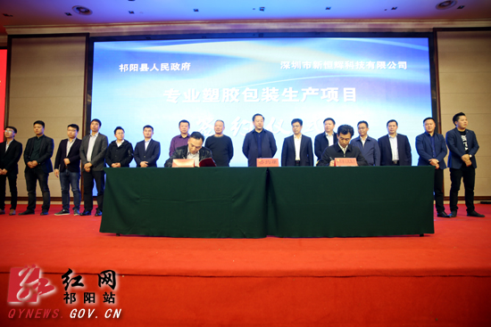 仪式上,湘江百里画廊旅游度假区项目、浯溪生态新城开发项目、原种场片区开发建设项目等12个重大项目进行了招商推介。县委副书记、县长金彪代表政府与客商举行了签约仪式。深圳沃客公司投资智能终端生产项目、东莞聚达公司投资专业连接器生产项目、东莞洪伟祥公司投资专业数据线生产项目、深圳新恒辉公司投资塑胶包装生产项目、深圳大联纺织有限公司投资环保型箱包布、帐蓬布生产线项目正式入驻祁阳经济开发区。