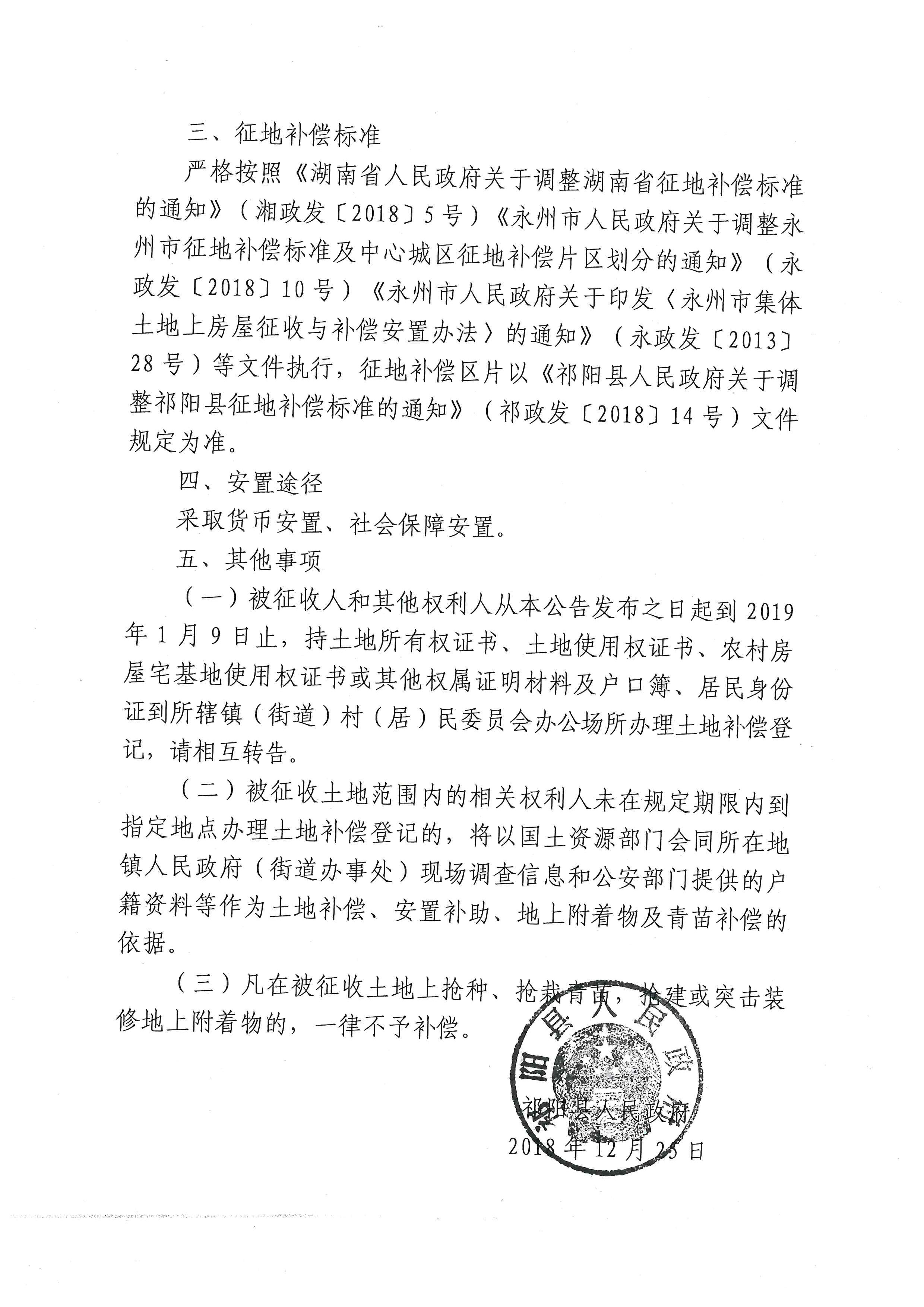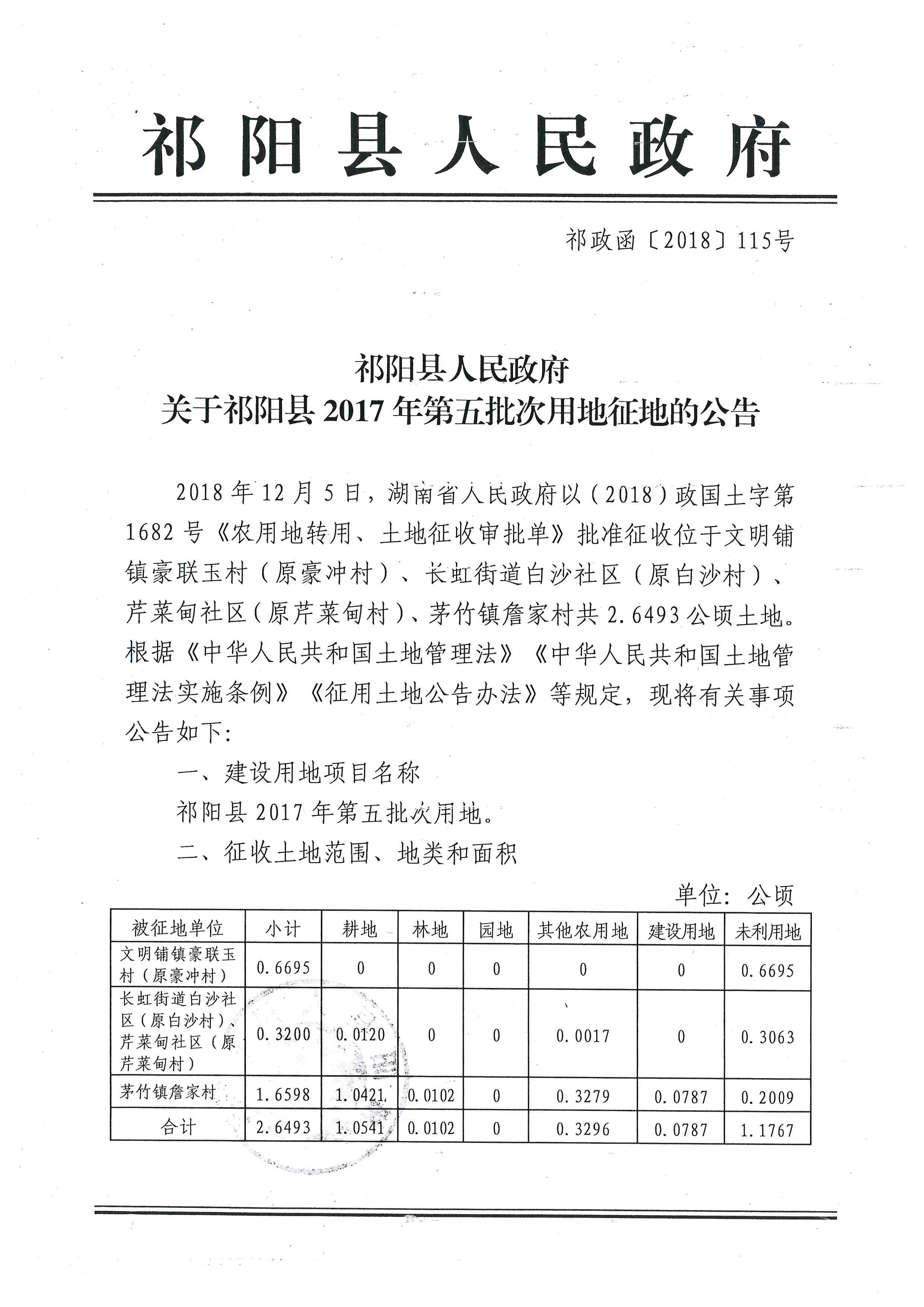 祁阳县人民政府关于祁阳县2017年第五批次用地征地的公告