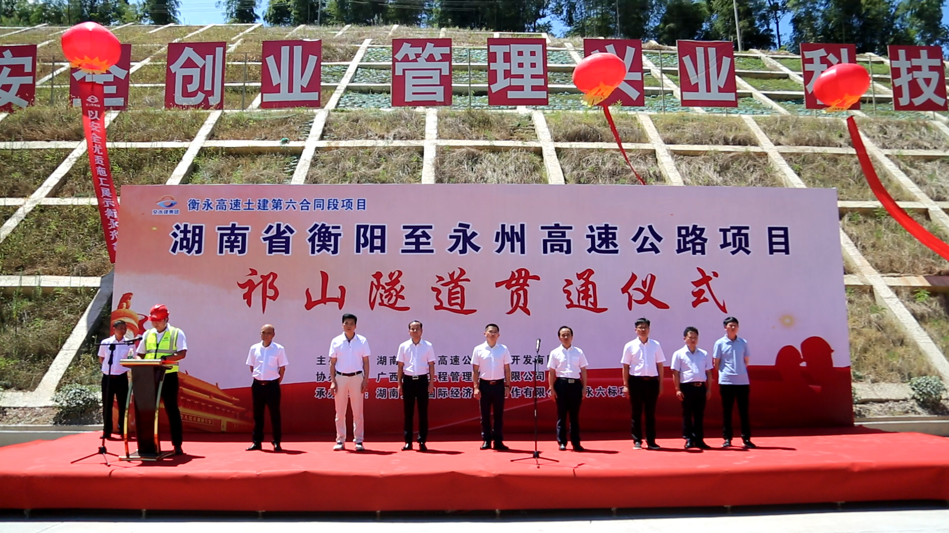 8月9日上午11时,随着最后一次爆破工作的顺利完成,衡永高速公路祁山隧道左线提前两个月顺利贯通,标志着衡永高速项目建设取得阶段性进展。湖南省衡永高速公路建设开发有限公司党委书记、董事长何亮,永州市交通运输局党组书记、局长邓扬中,祁阳市委副书记、市长陈小平出席贯通仪式。