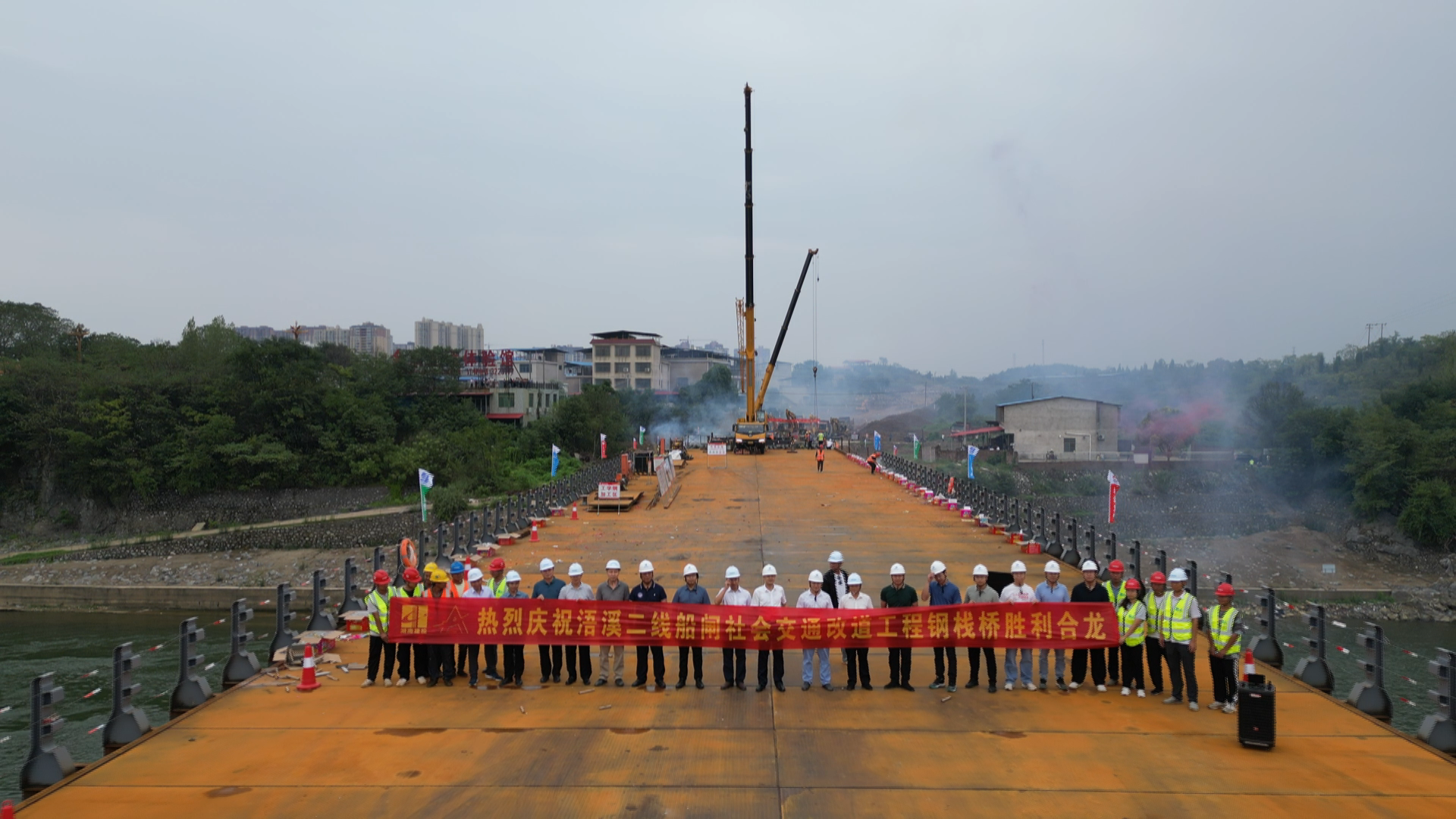 8月30日上午,随着最后一组贝雷梁的吊装固定,祁阳浯溪二线船闸社会交通改道工程钢栈桥顺利合龙。祁阳市副市长唐琳玮出席合龙仪式。
