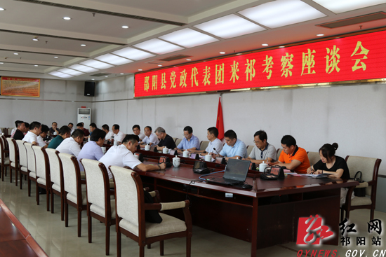 在下午召开的座谈会上,周新辉对邵阳县党政代表团的到来表示热烈欢迎,并详细介绍了祁阳经济社会发展情况。两县有关部门就园区规划、承接产业转移、项目建设、招商引资、征地拆迁等工作进行了交流。
