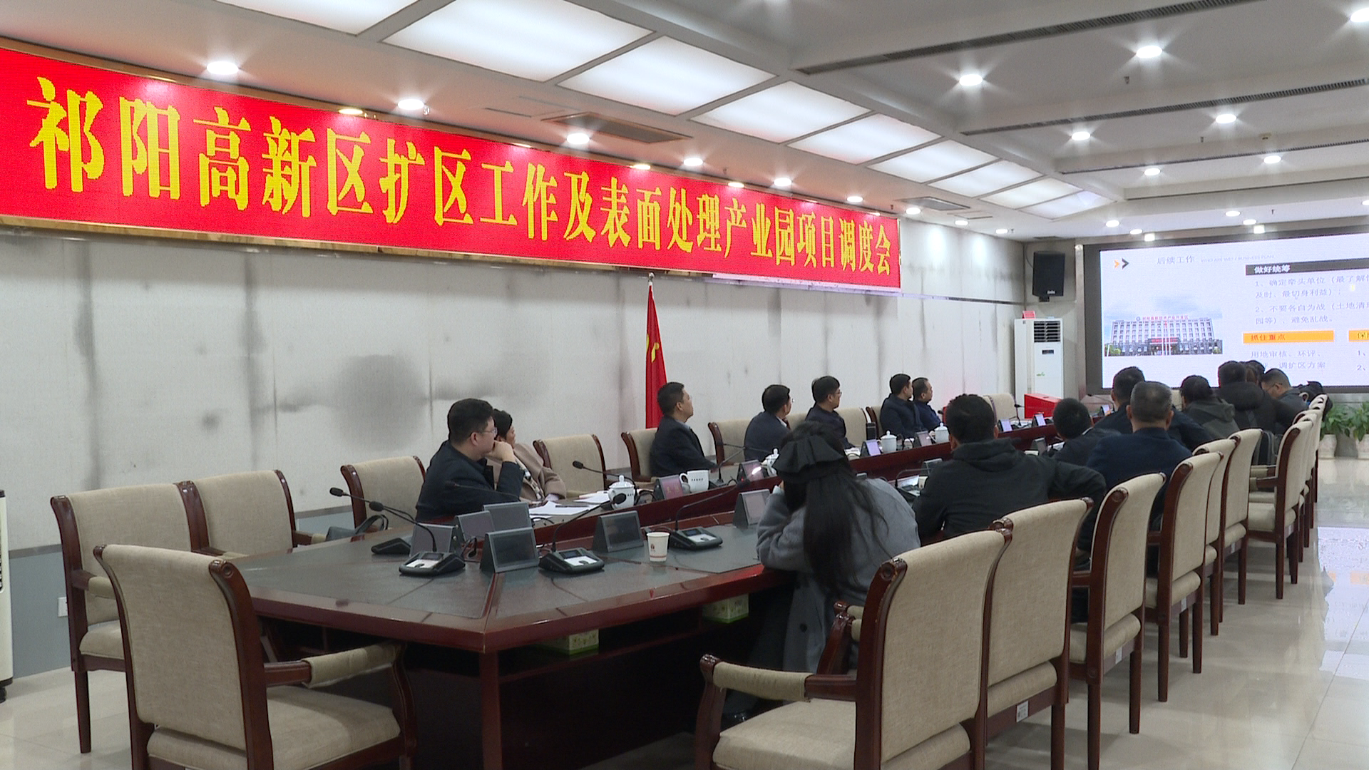 会上,祁阳高新区党工委书记李政介绍了扩区政策要求及流程,汇报了祁阳高新区扩区工作进展情况以及存在的困难和问题,并对下一步工作提出建议。永州(祁阳)表面处理产业园项目相关负责人介绍了项目目前的基本情况,针对当前土地、征地拆迁及相关证件办理等问题提出诉求,相关单位作表态发言。