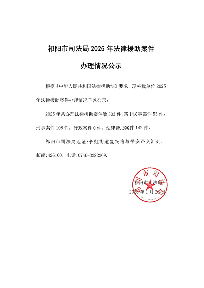 祁阳市司法局2025法律援助案件办理情况公示