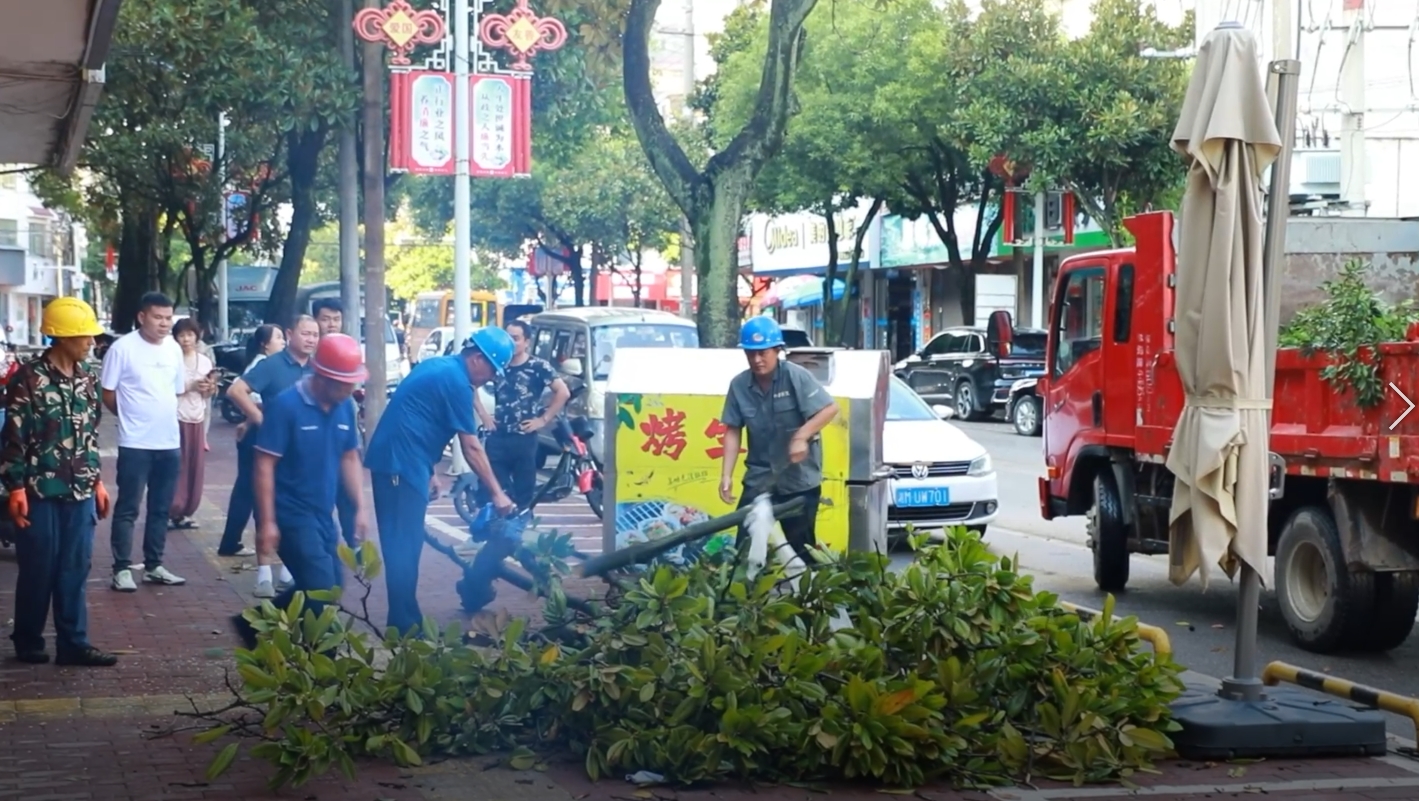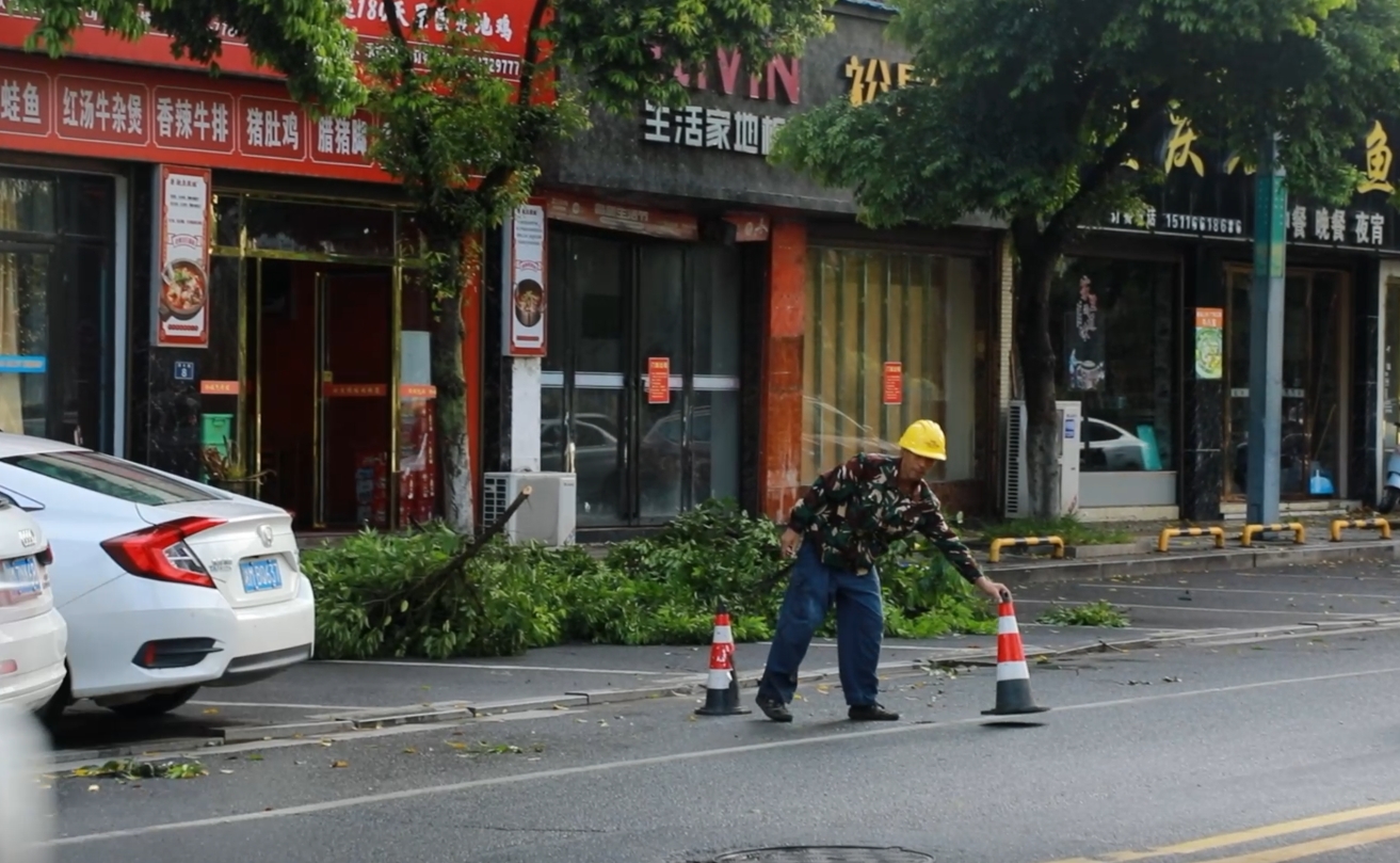 本网讯 (双牌融媒记者 盘春红 通讯员 汤翔 )9月5日下午2时左右,受强对流天气影响,双牌城区出现短时强降水伴随大风,风力达7级。此次大风导致城区部分路段树木枝干折断、倒伏,影响市民出行安全。双牌县城管、环卫等部门迅速响应,第一时间组织力量赶赴现场开展清理工作,保障道路畅通。