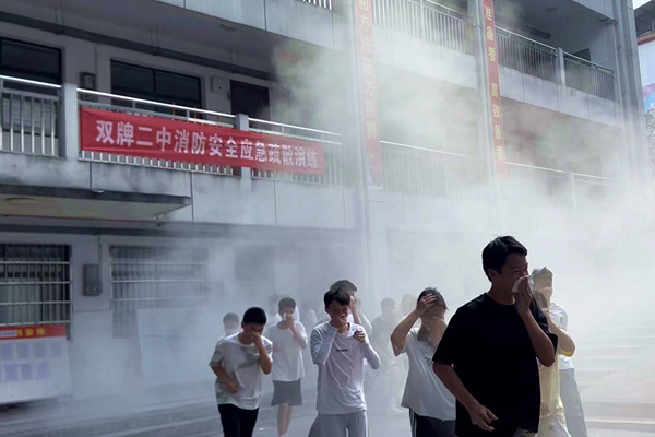 8月28日上午,双牌县二中响起火灾警报声,疏散演练启动。各班班主任迅速组织学生用湿毛巾捂口鼻、弯腰低姿,沿预设路线快速有序撤离至操场等安全区域。老师们全程引导,提醒避免拥挤。仅3分钟,全校2000余名师生全部安全抵达集合点,班主任清点人数并向总指挥汇报,确保无一人遗漏。
