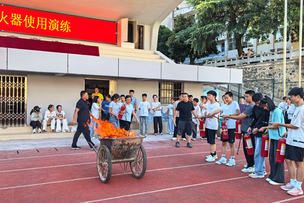 演练后,校园安全负责人结合真实案例开展讲座,用通俗语言讲解火灾成因、初期扑救方法、灭火器与消防栓使用步骤,以及教室、宿舍、楼道等场景逃生技巧;还现场演示干粉灭火器操作,邀请学生上台实操。“原来用灭火器有这么多讲究,今天亲手操作后,心里更有底了。” 学生李志睿说道。