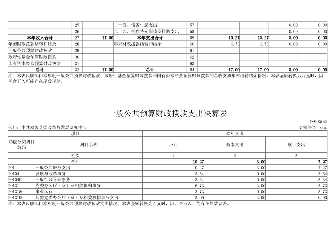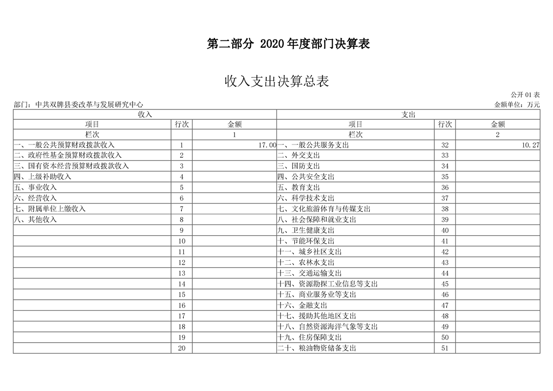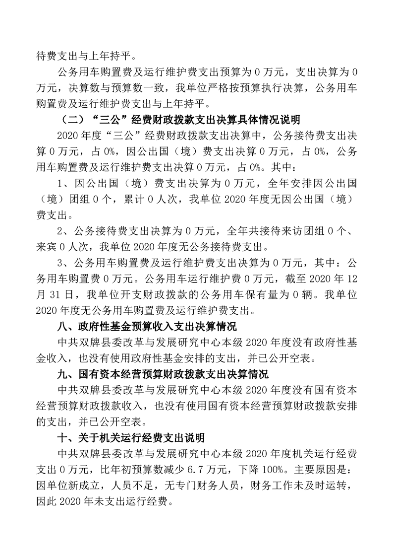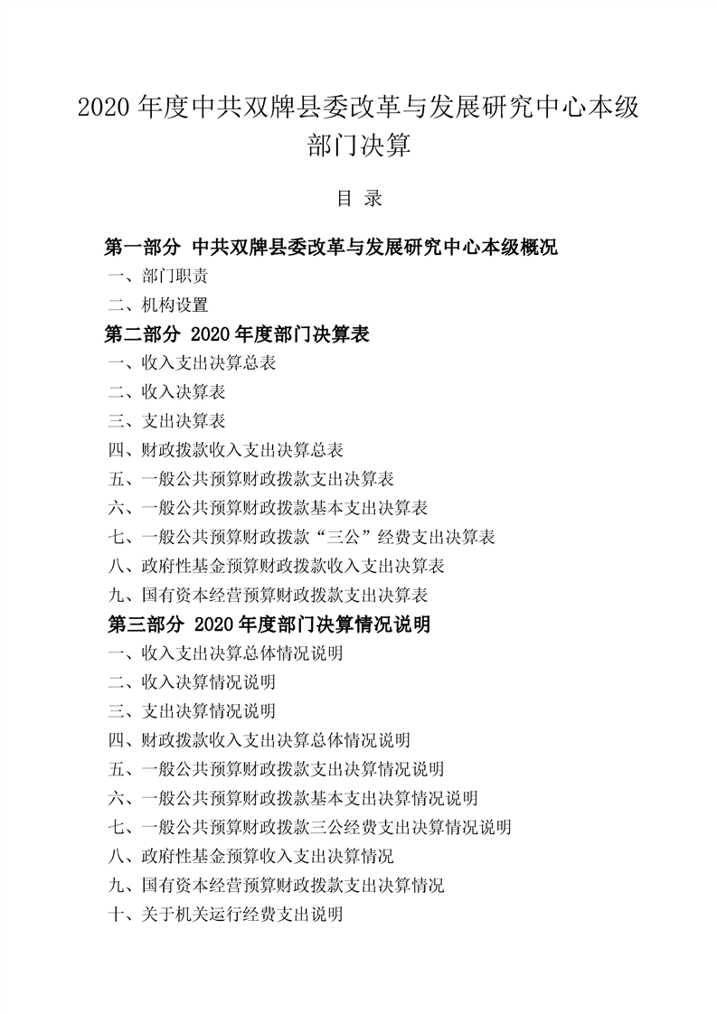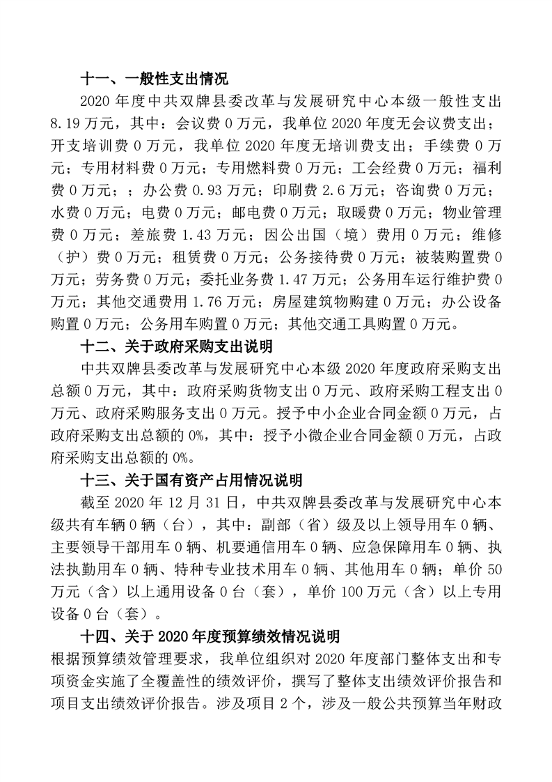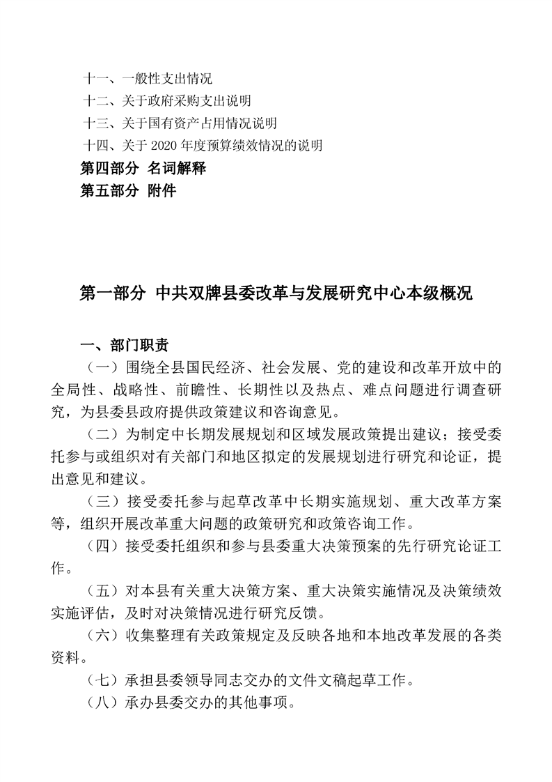 2020年度中共双牌县委改革与发展研究中心部门决算公开说明