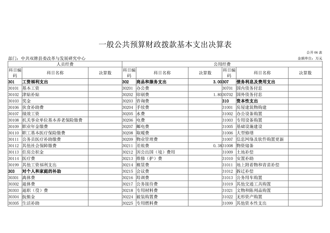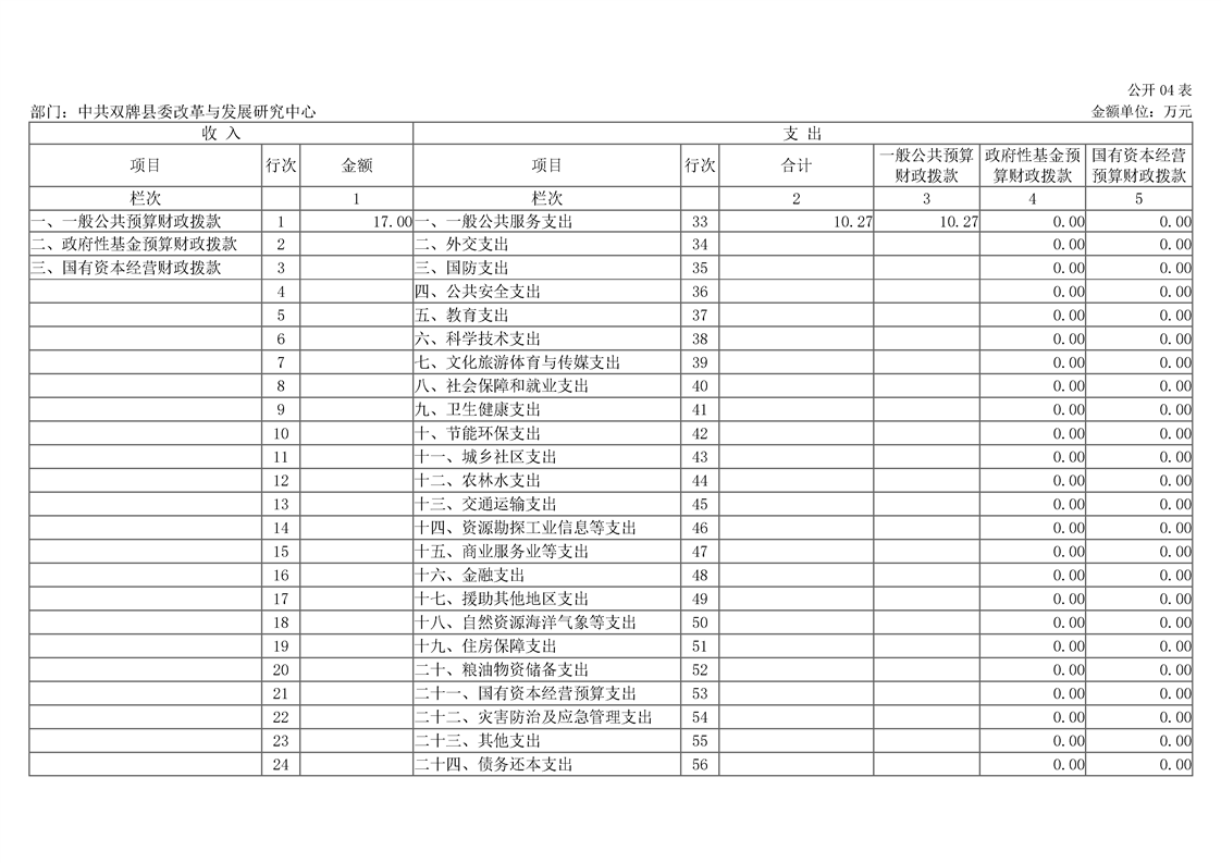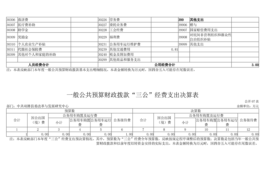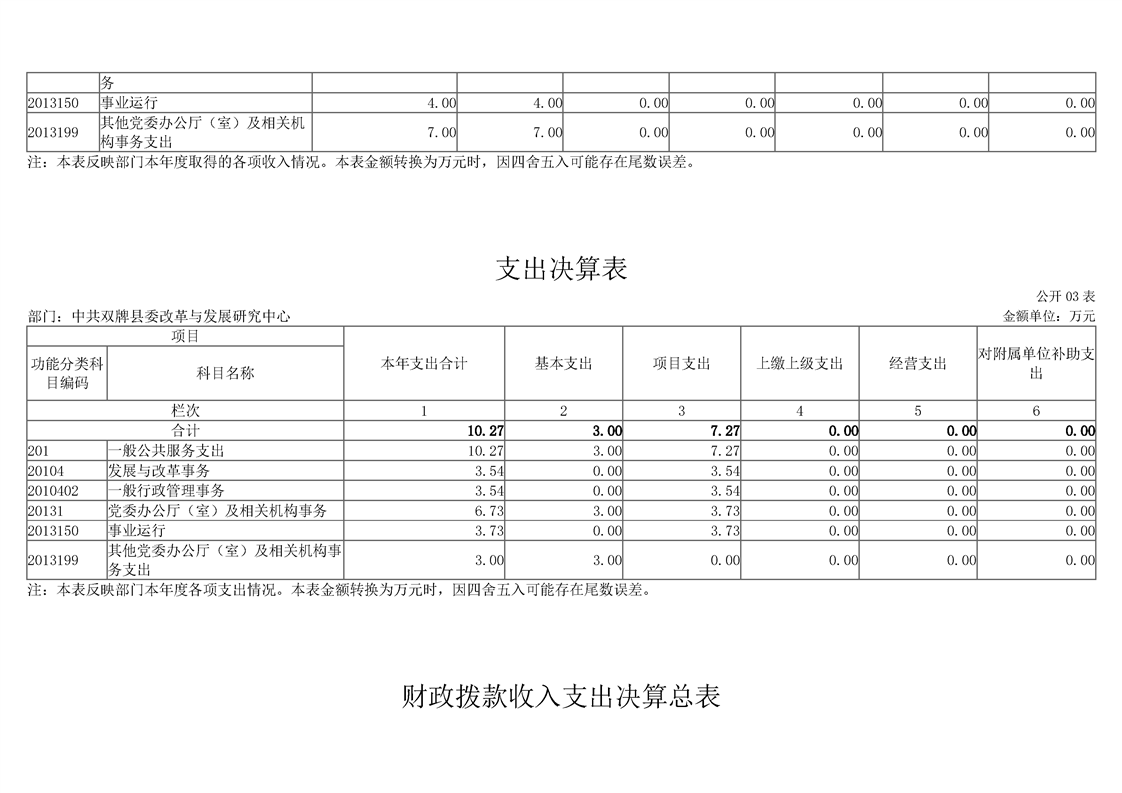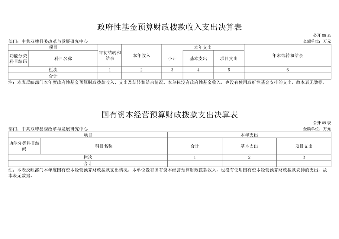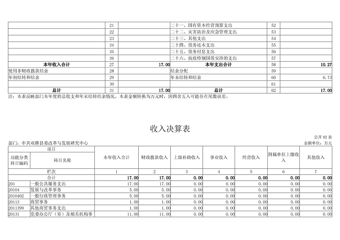 2020年度中共双牌县委改革与发展研究中心部门决算公开说明