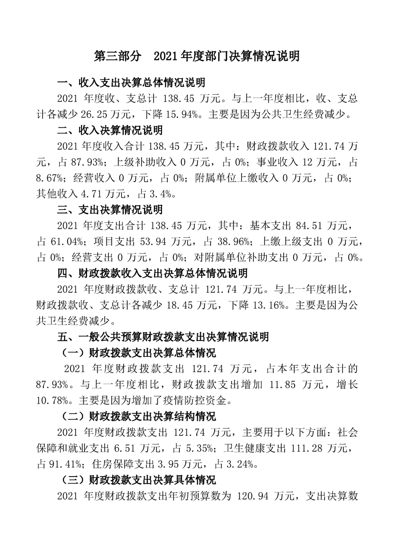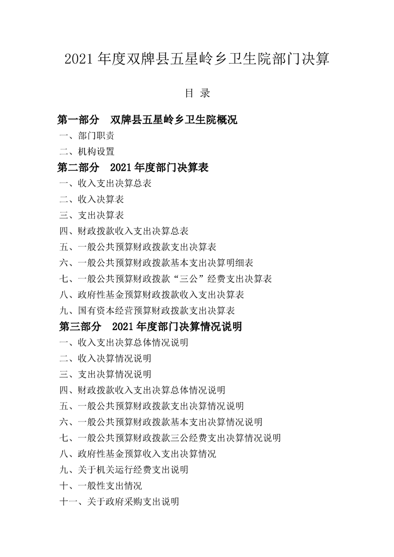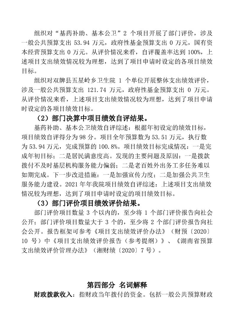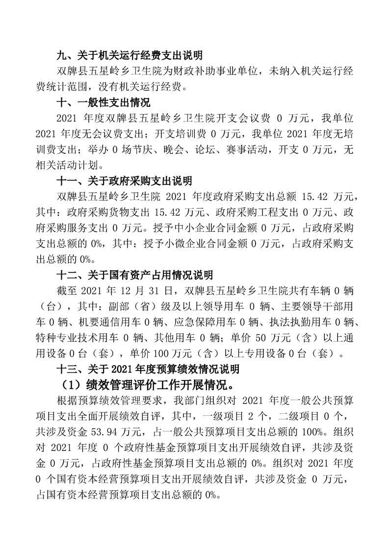 2021年度部门决算公开说明双牌县五星岭乡卫生院