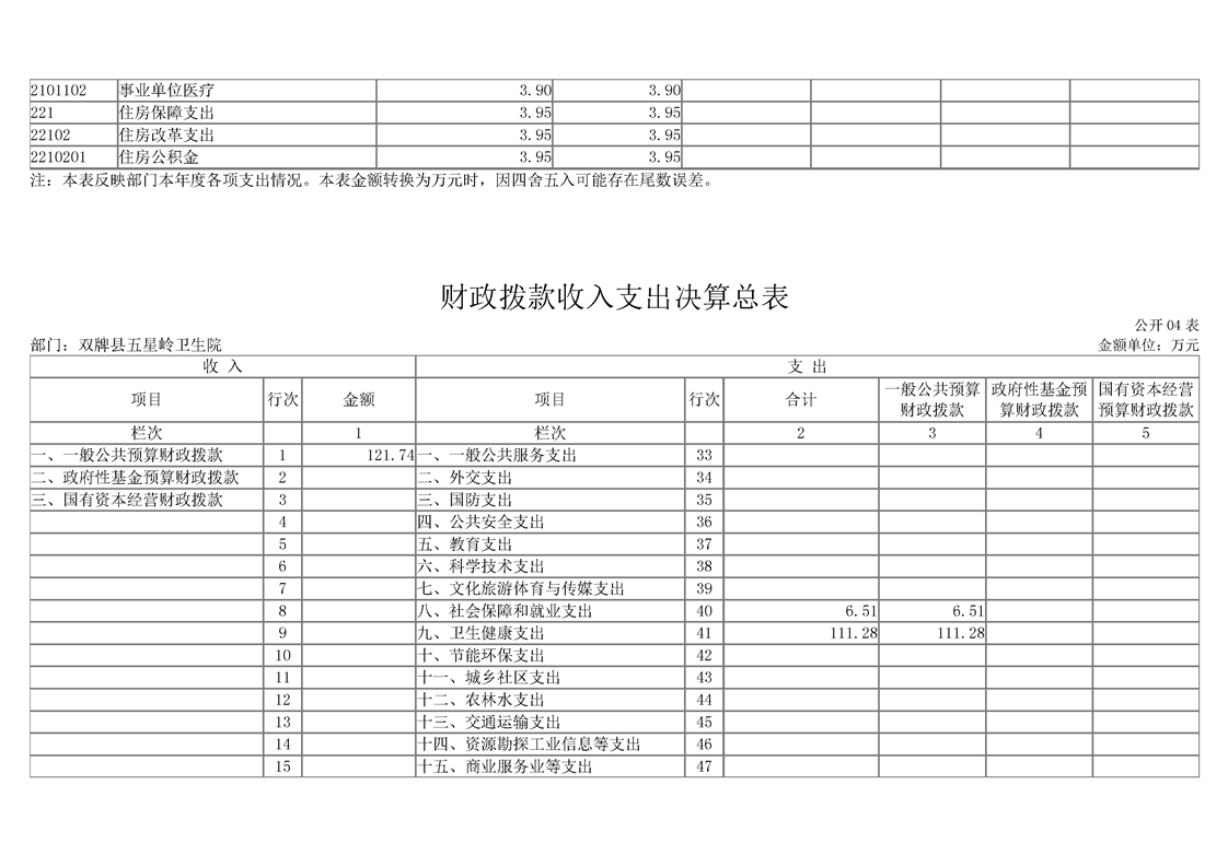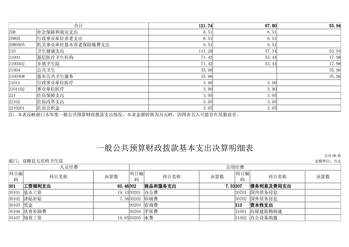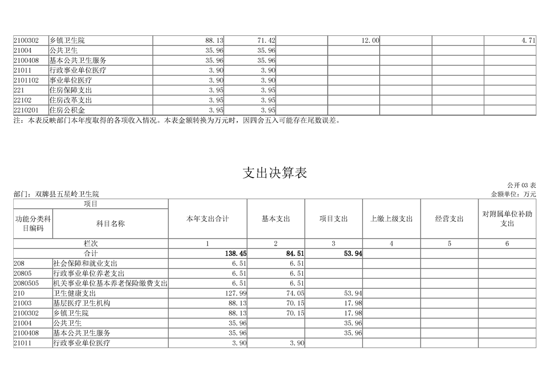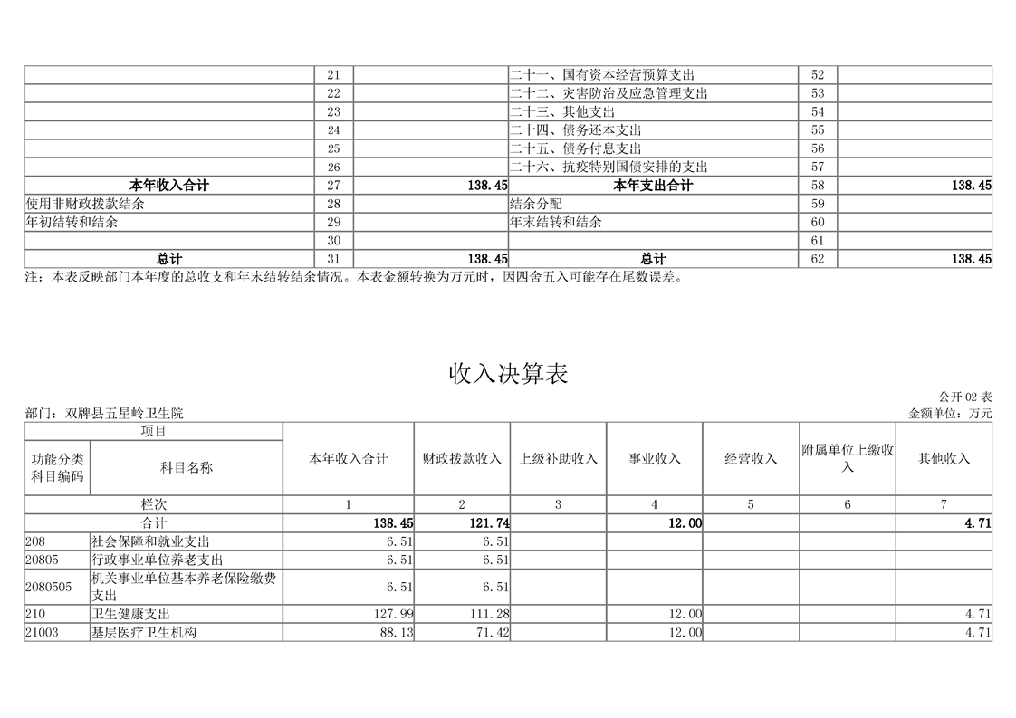 2021年度部门决算公开说明双牌县五星岭乡卫生院