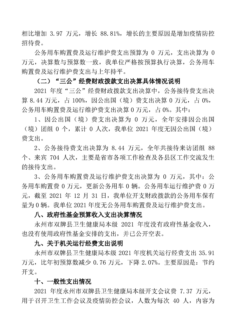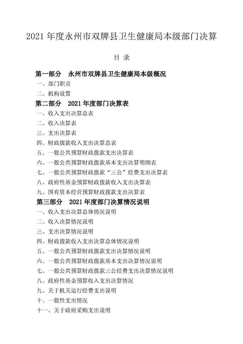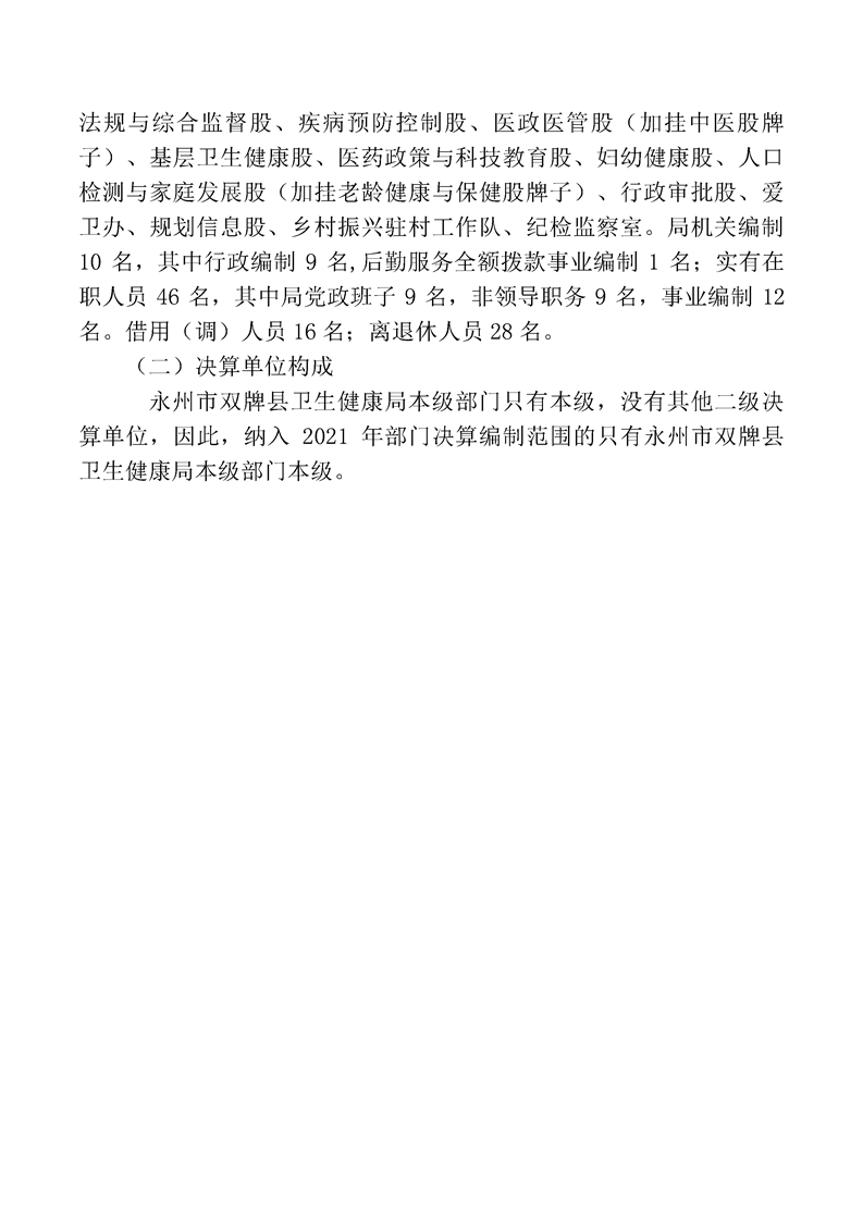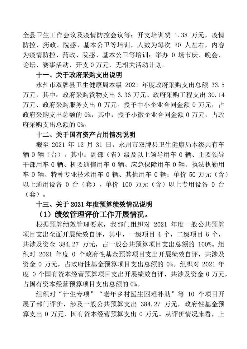 2021年度部门决算公开说明永州市双牌县卫生健康局本级