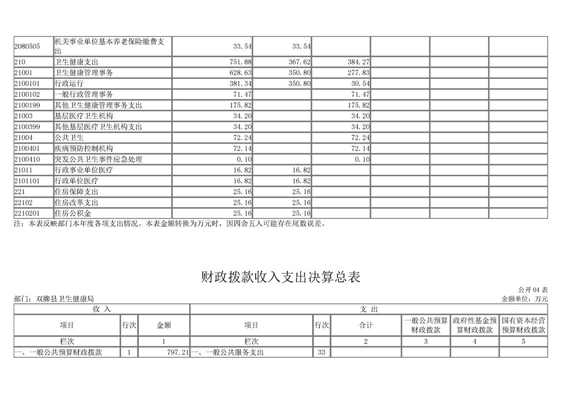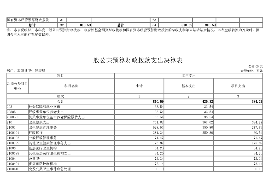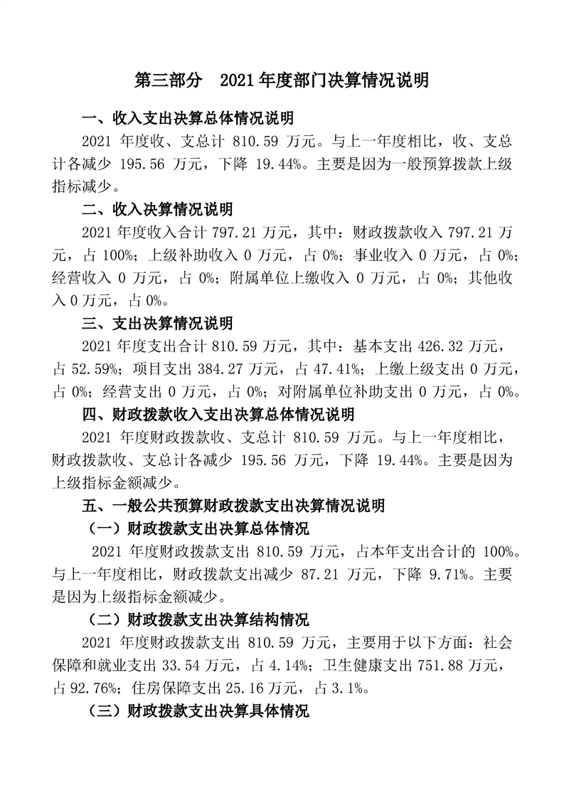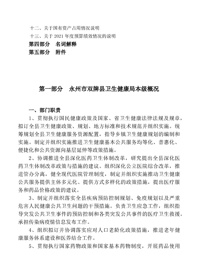 2021年度部门决算公开说明永州市双牌县卫生健康局本级