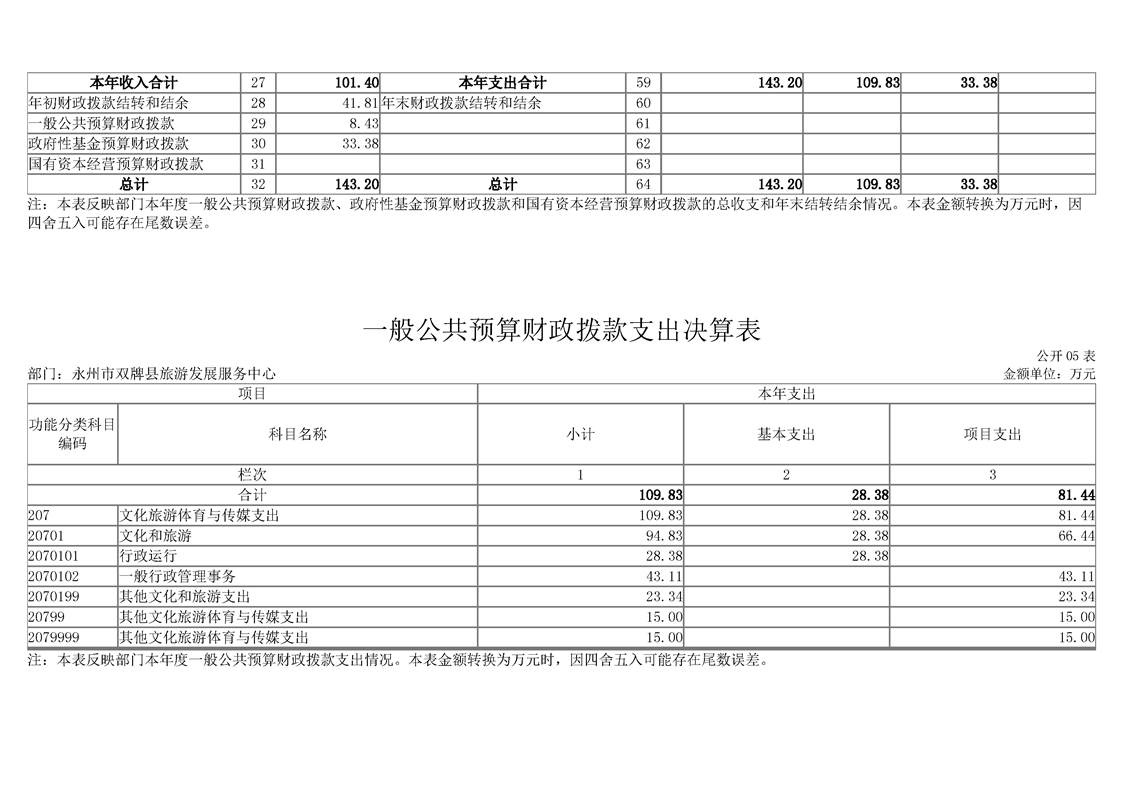 2021年度部门决算公开说明永州市双牌县旅游发展服务中心