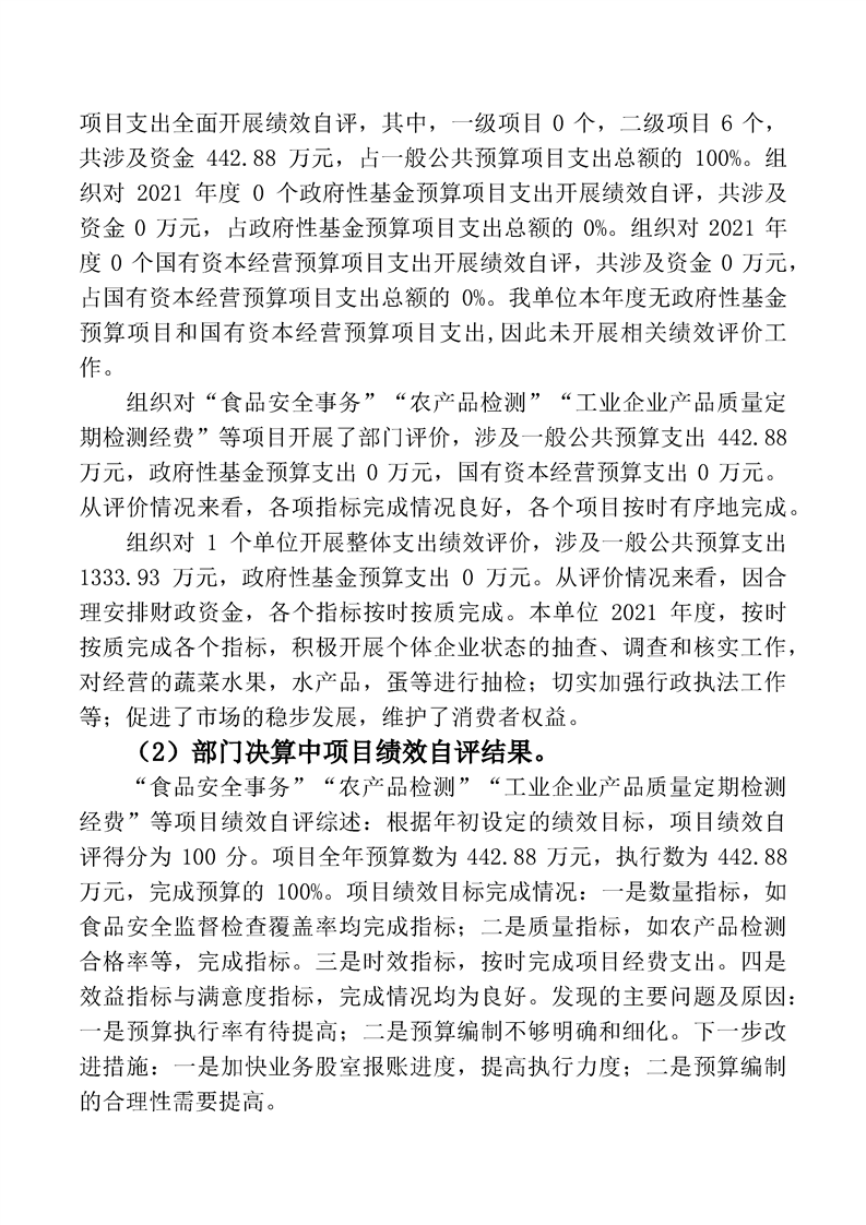 2021年度市场监督管理局部门整体支出绩效评价报告