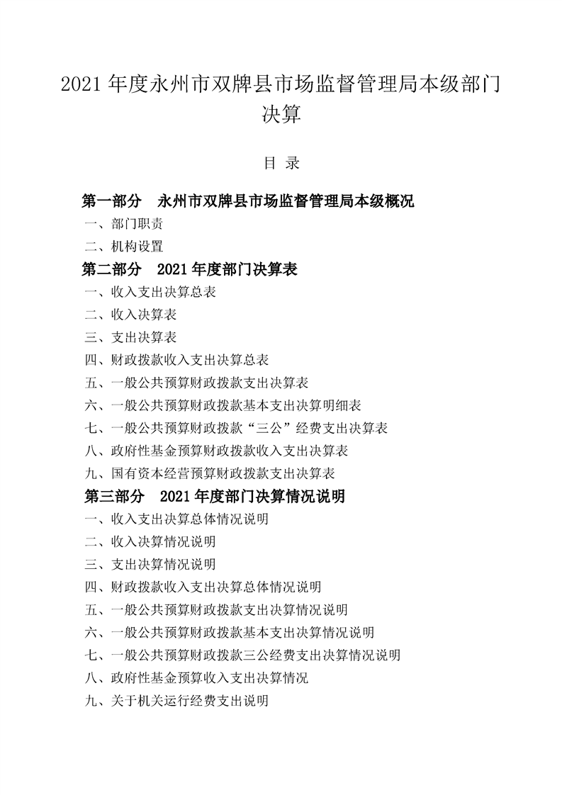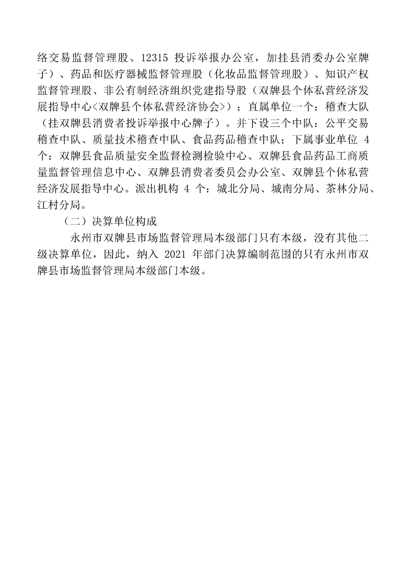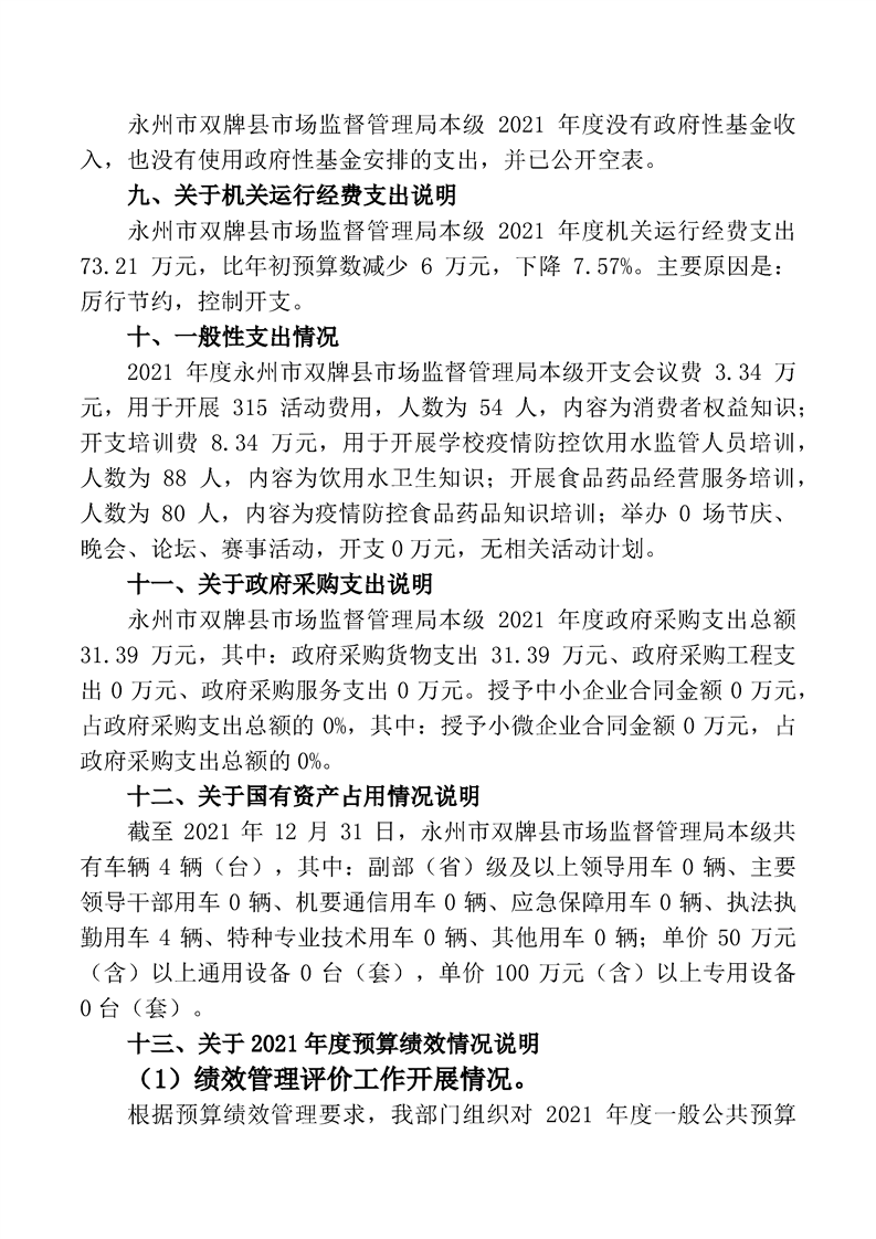 2021年度部门决算公开说明永州市双牌县市场监督管理局本级