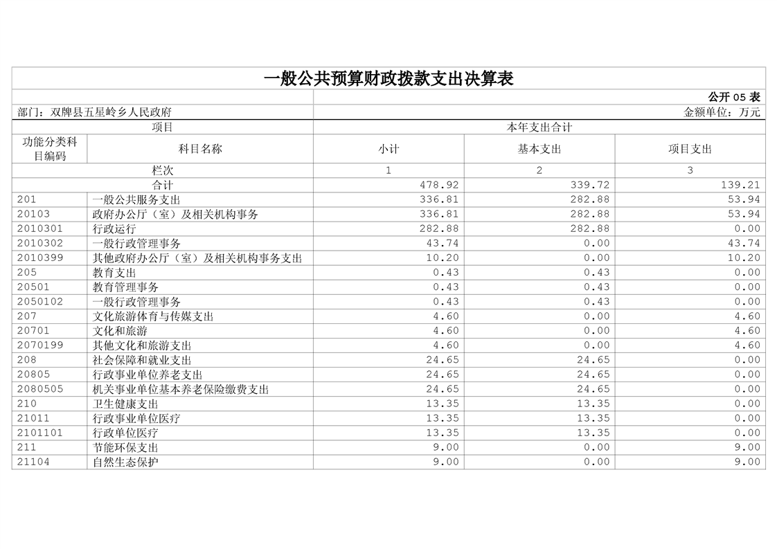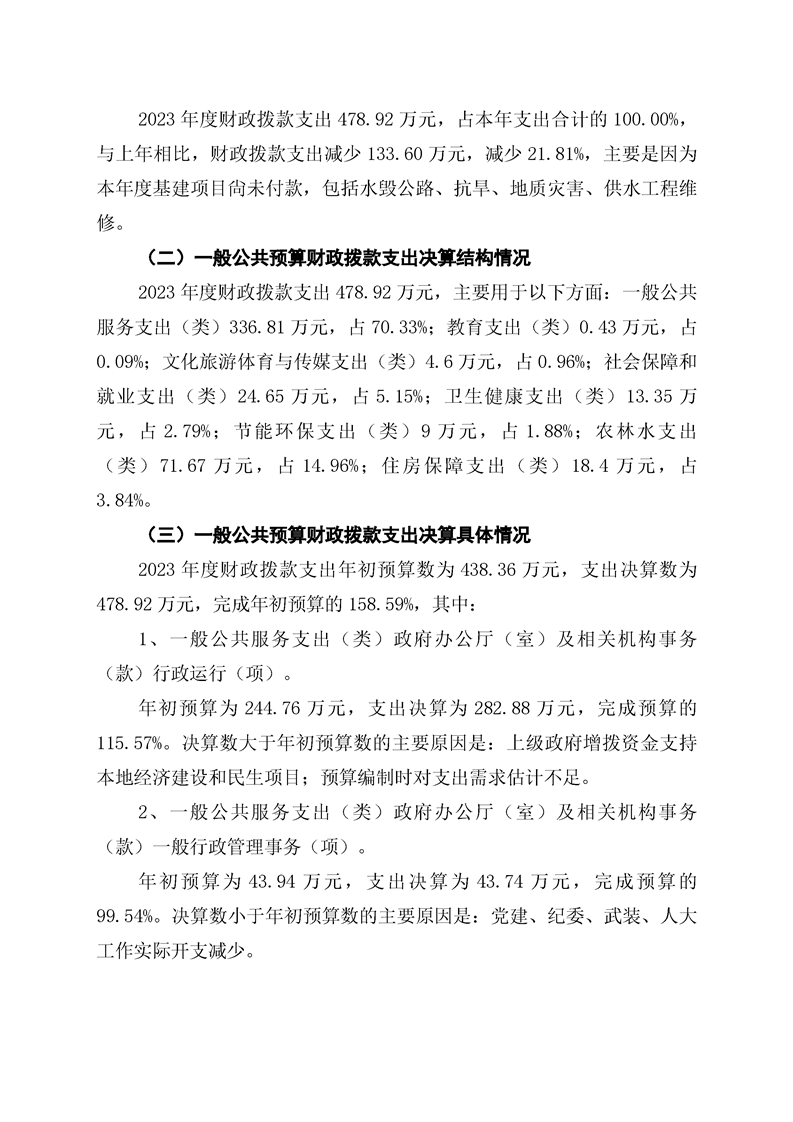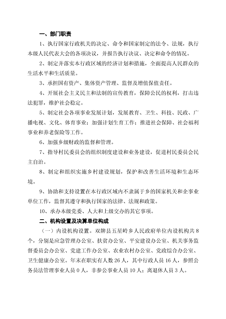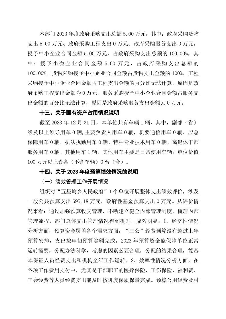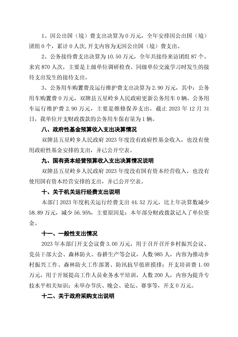 双牌县五星岭乡人民政府2023年部门决算公开说明