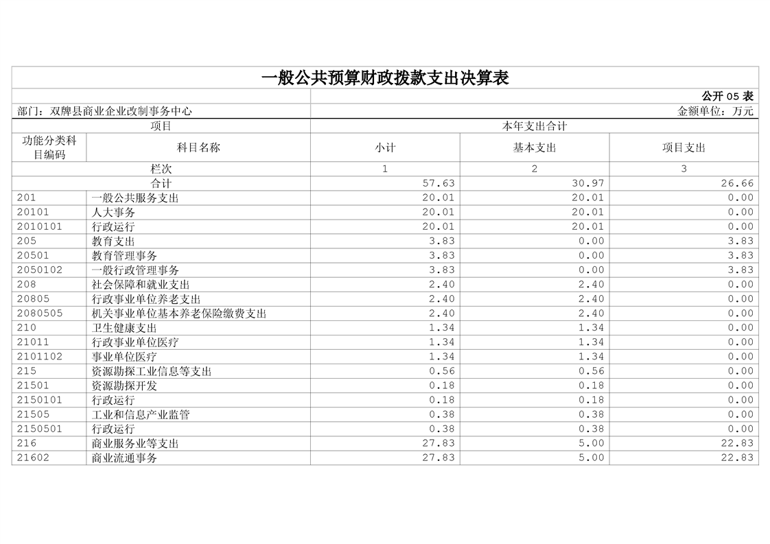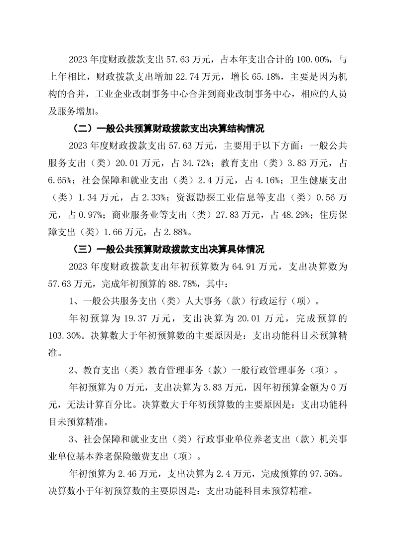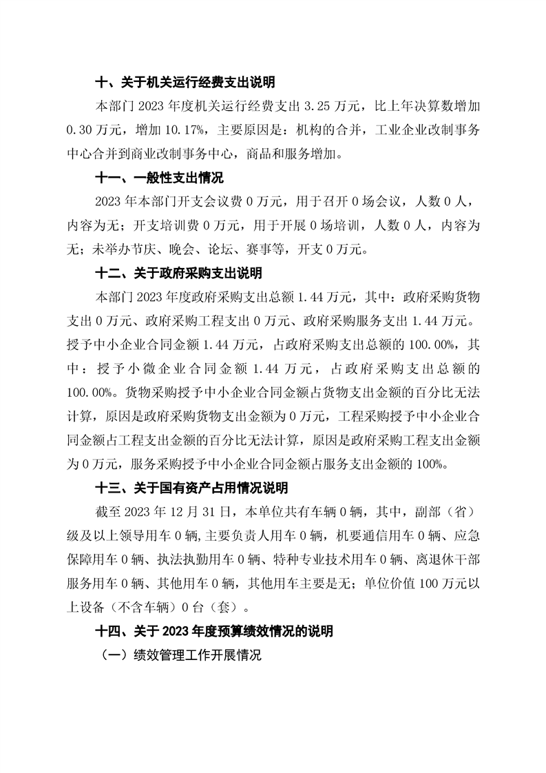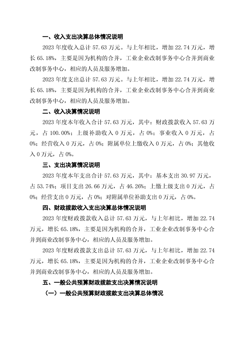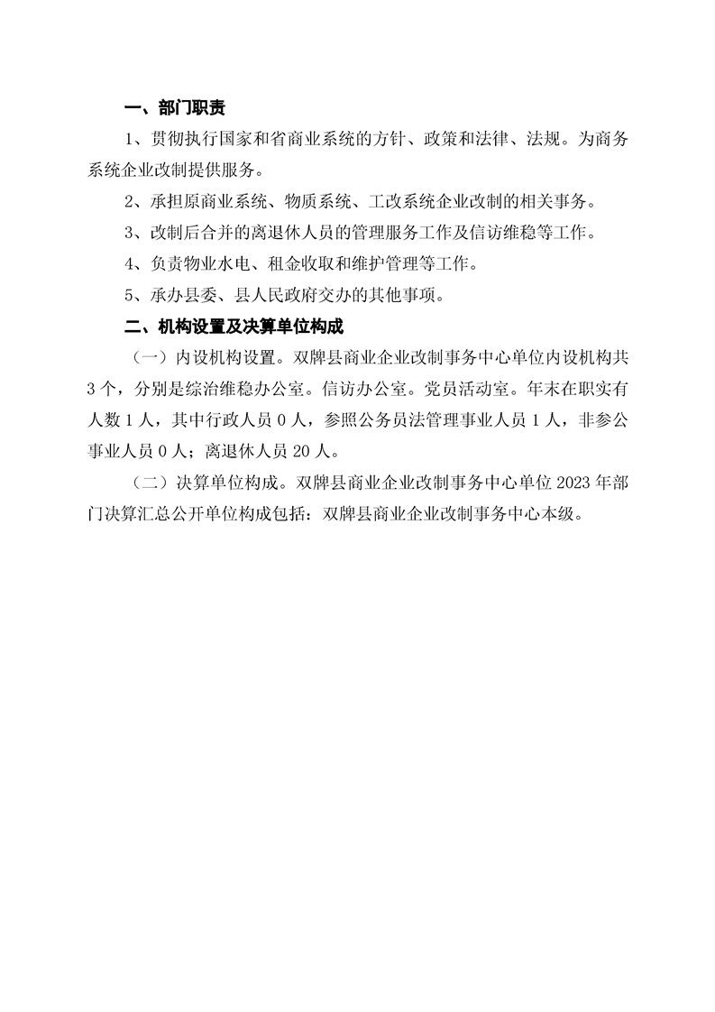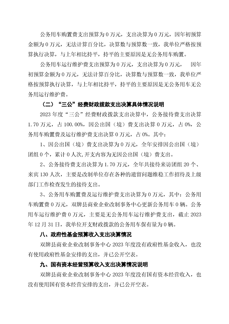 双牌县商业企业改制事务中心2023年部门决算公开说明