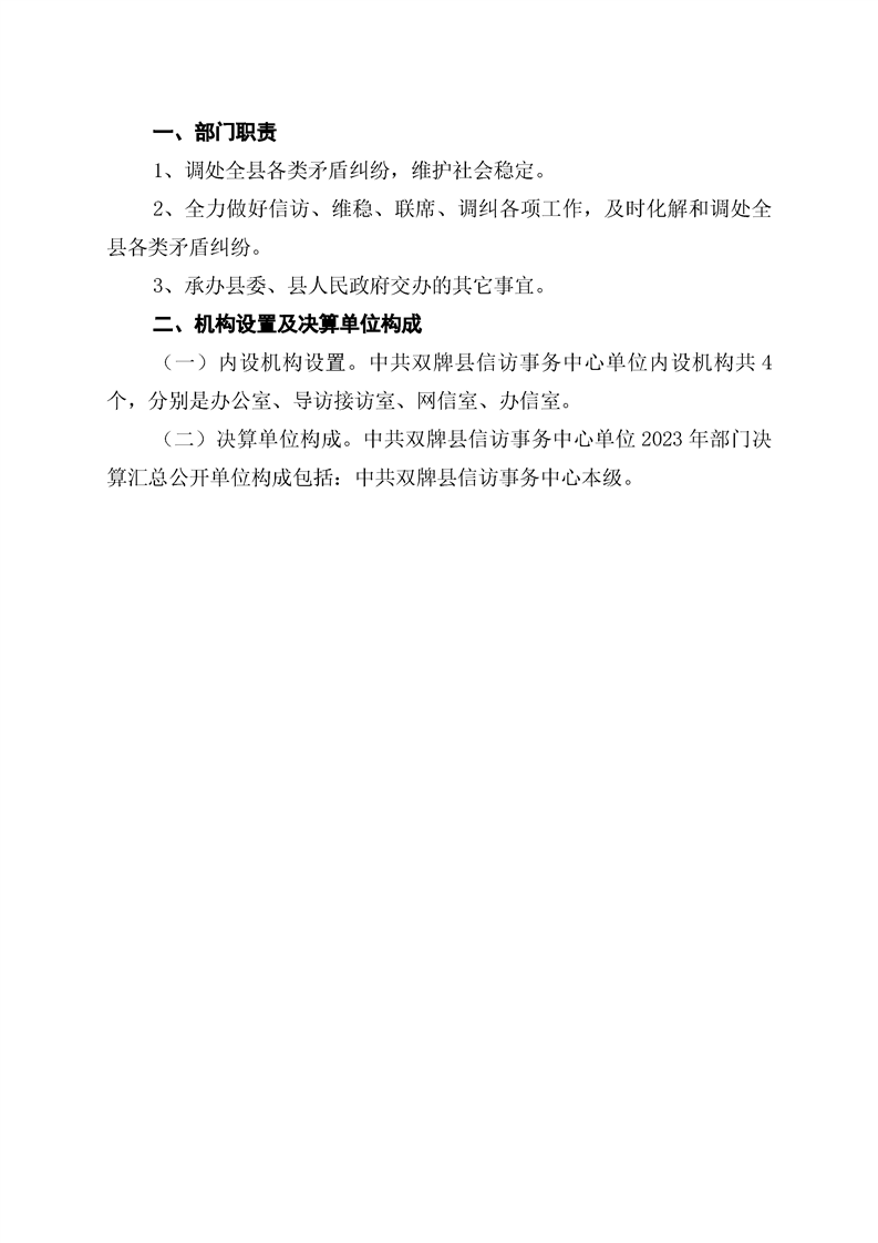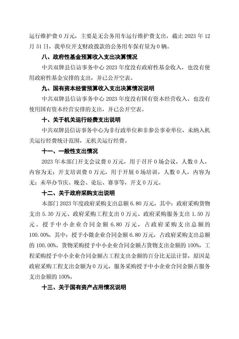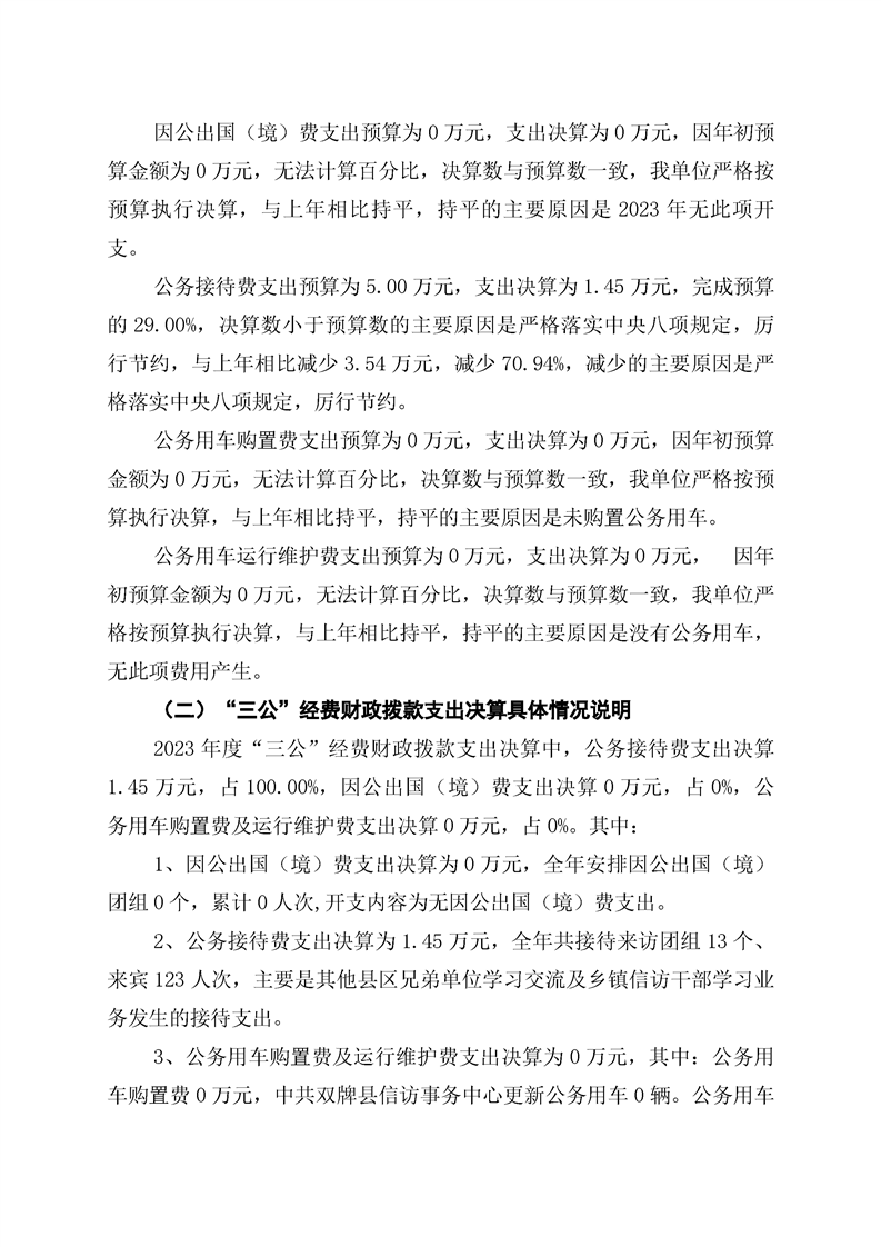 中共双牌县信访事务中心2023年部门决算公开说明