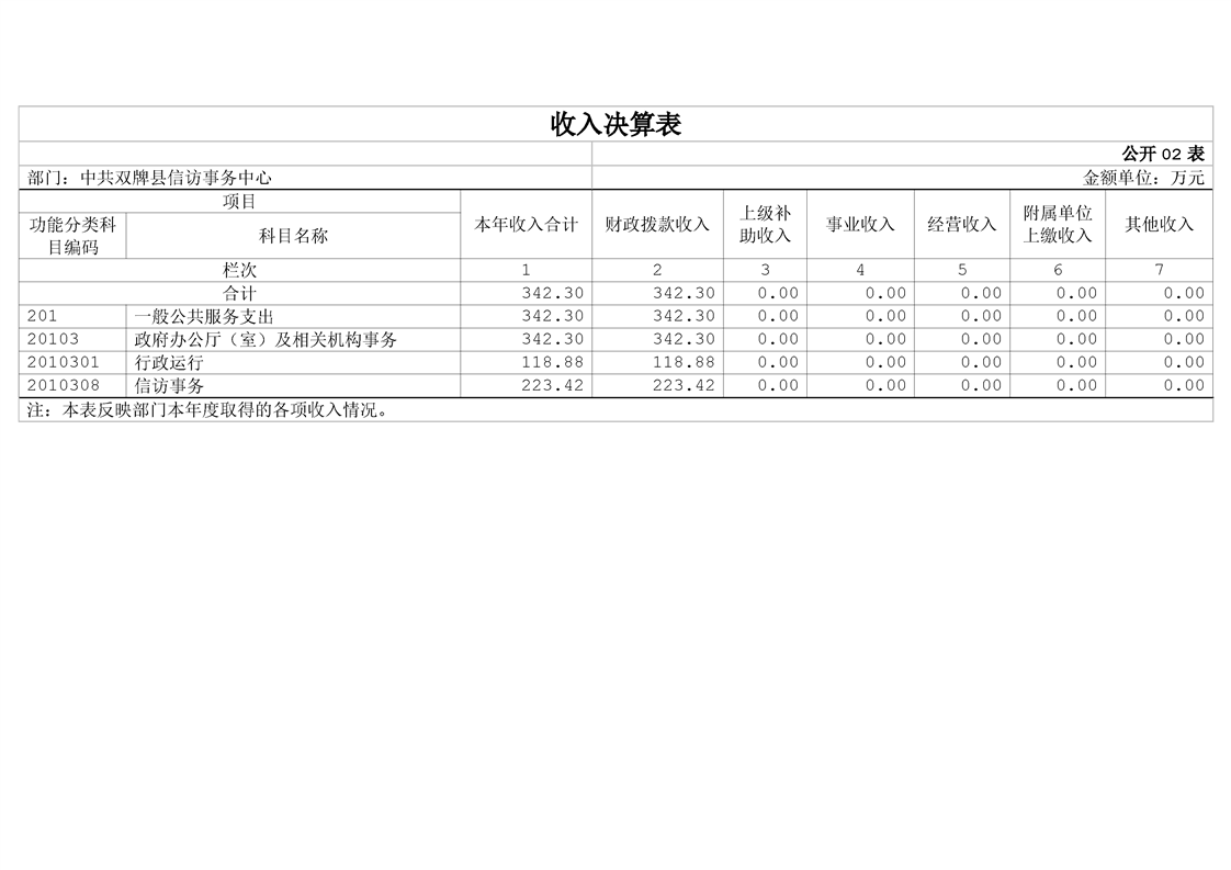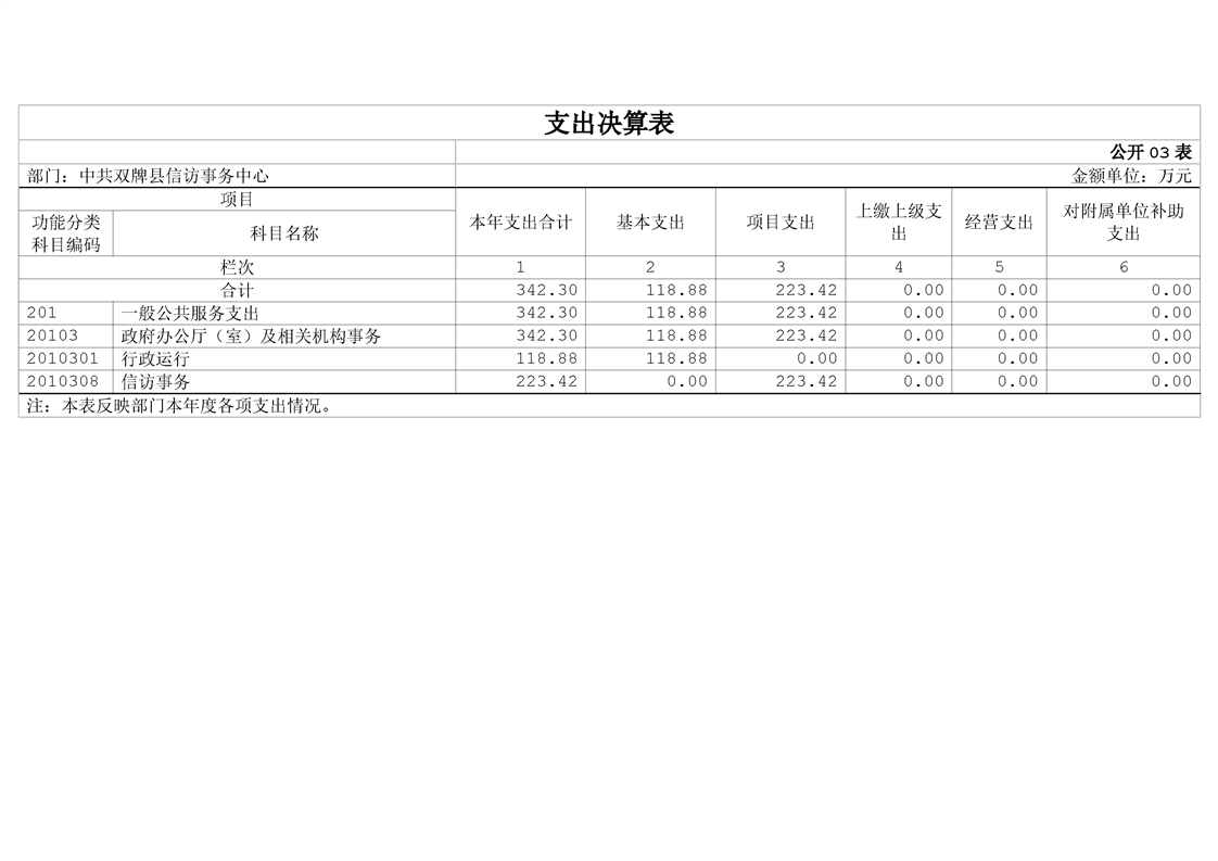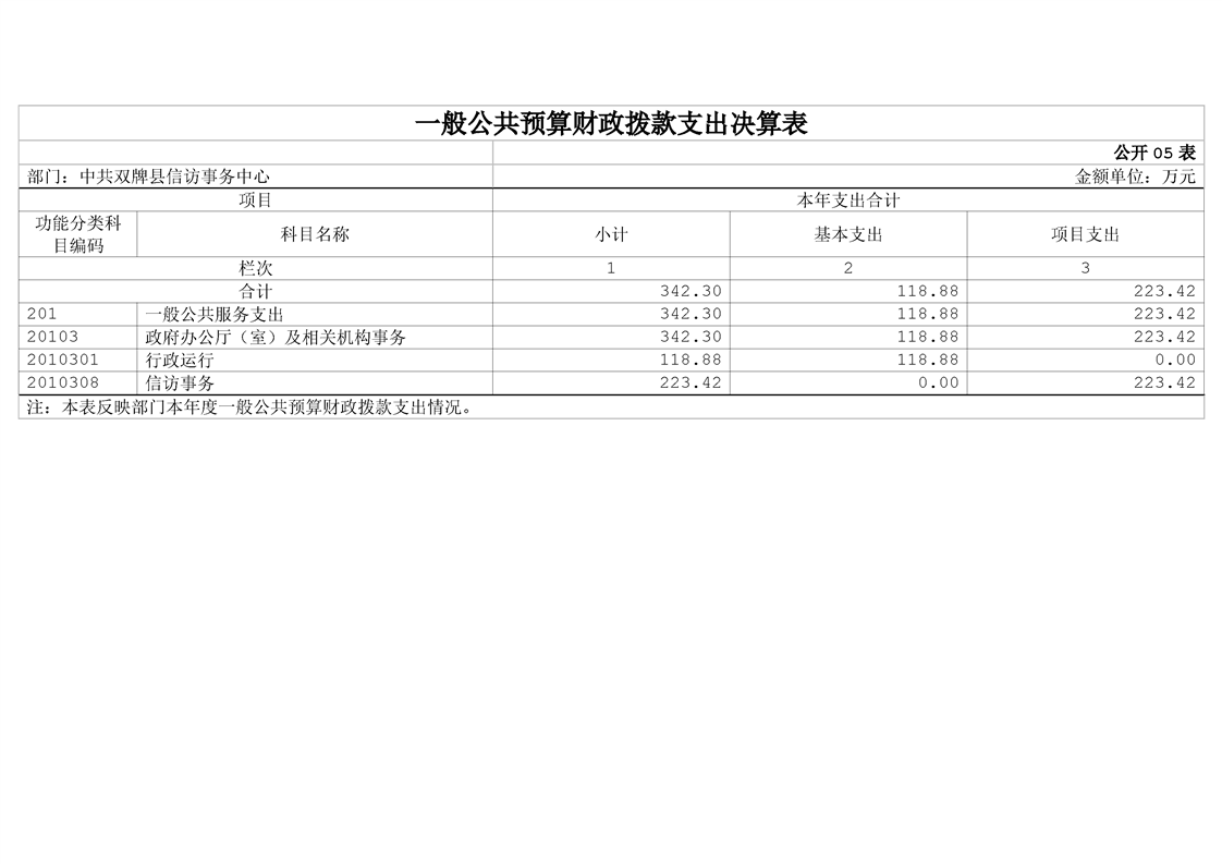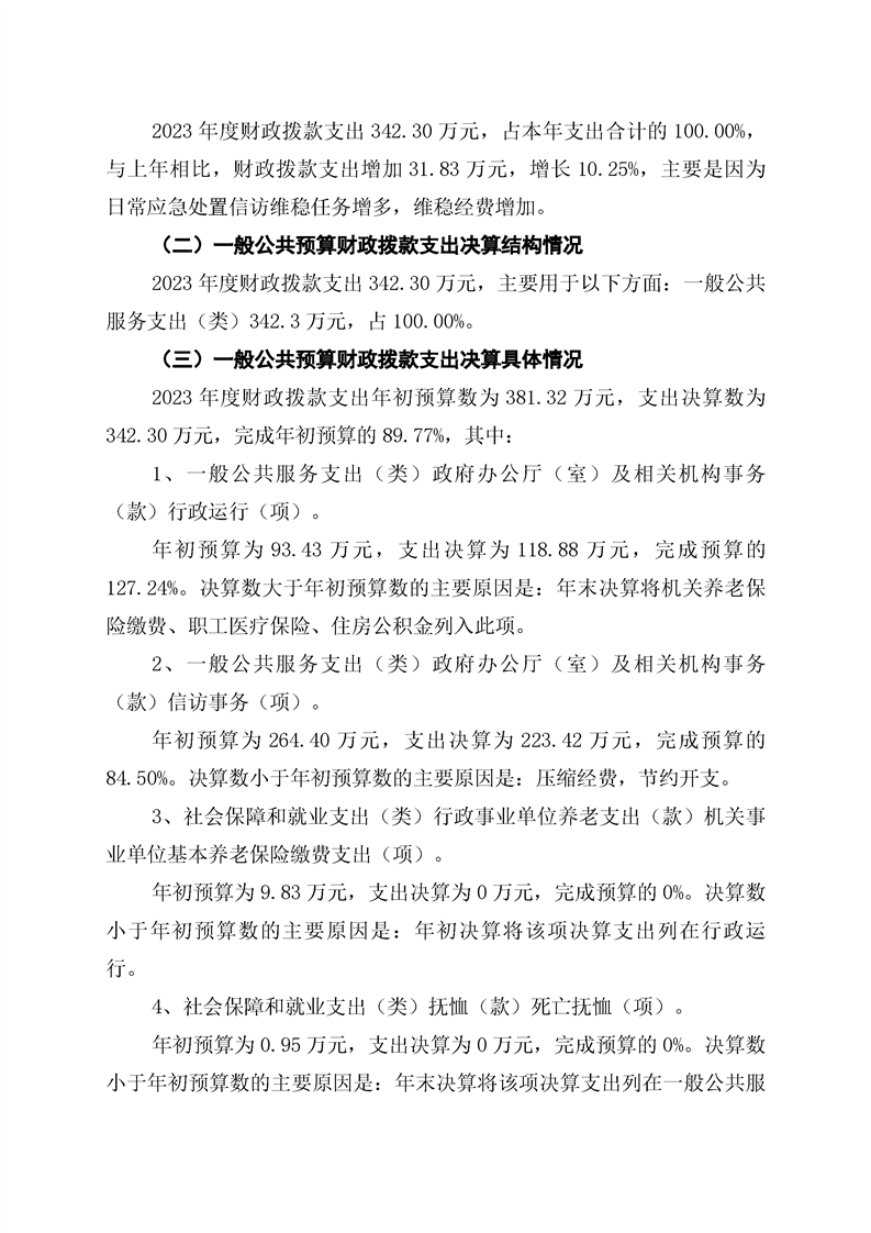 中共双牌县信访事务中心2023年部门决算公开说明
