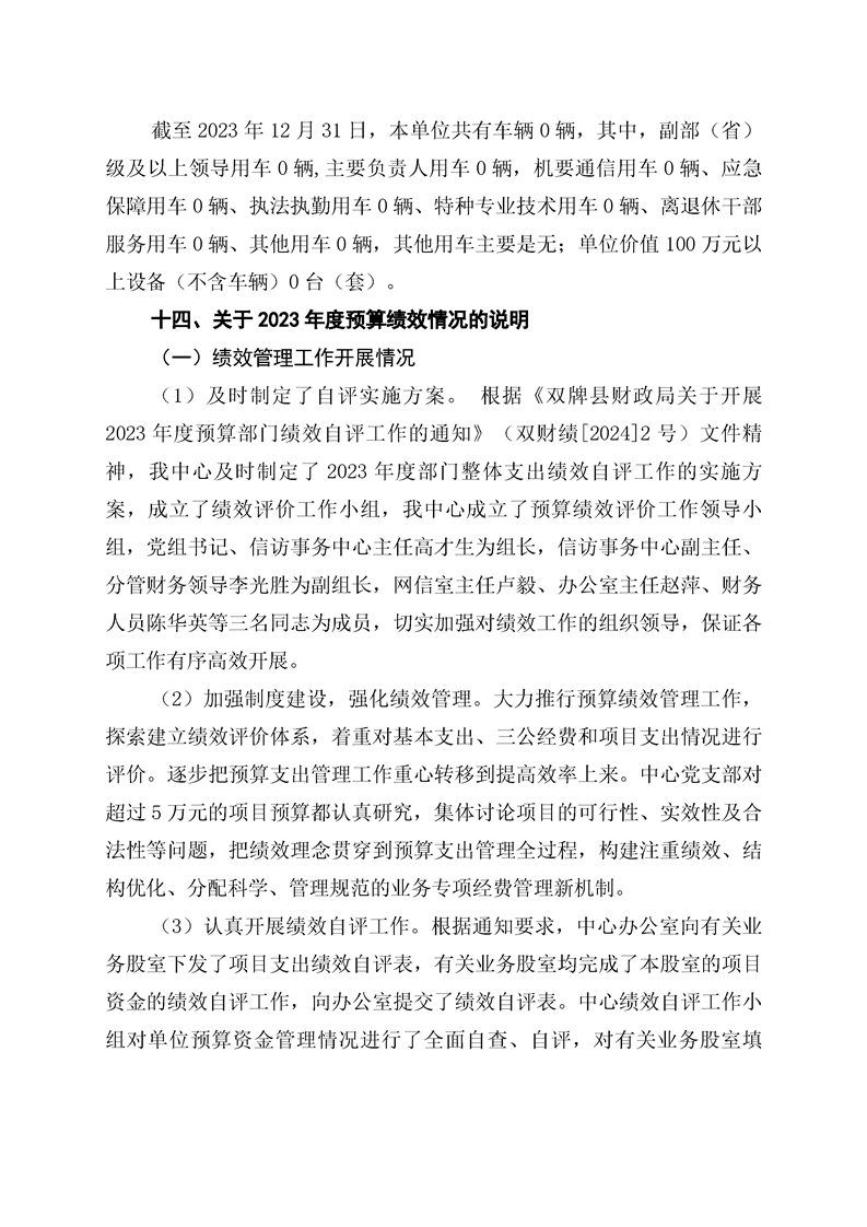 中共双牌县信访事务中心2023年整体绩效报告