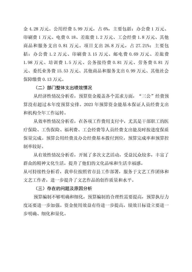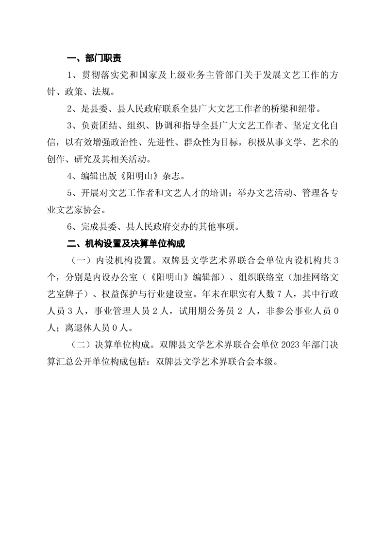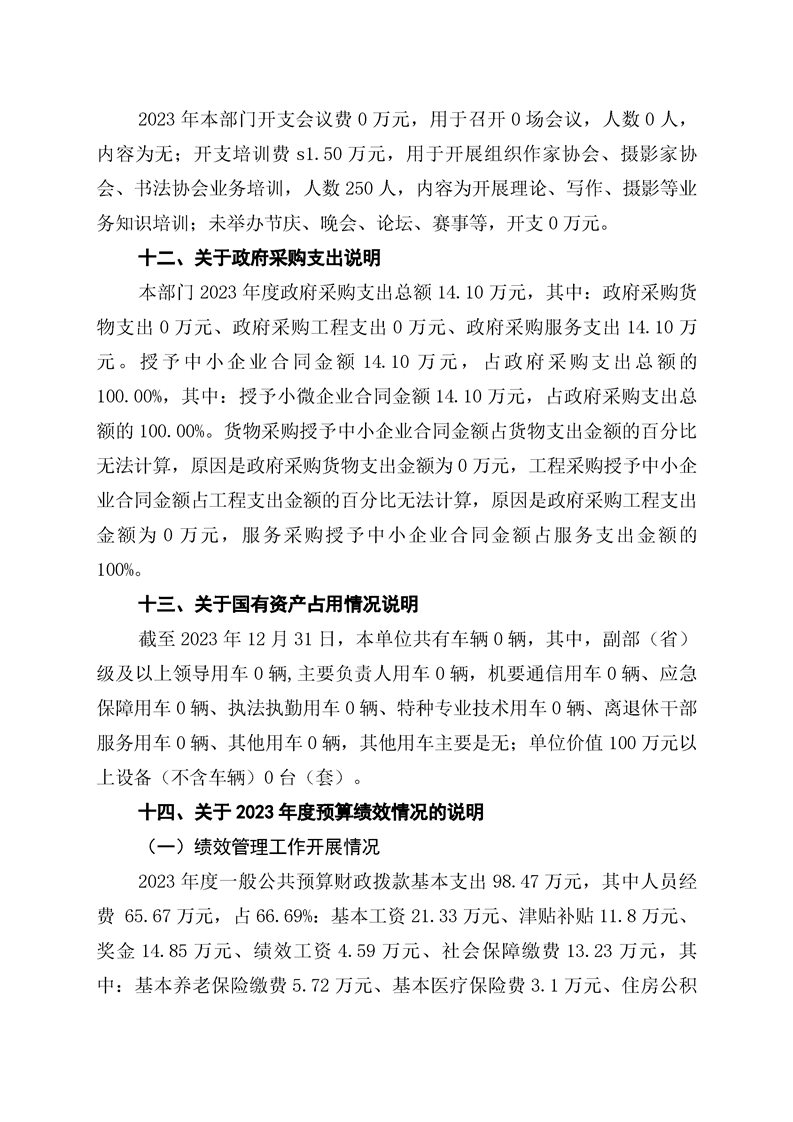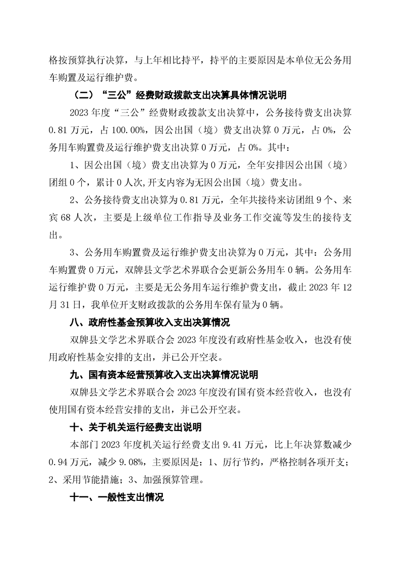 双牌县文学艺术界联合会2023年部门决算公开说明