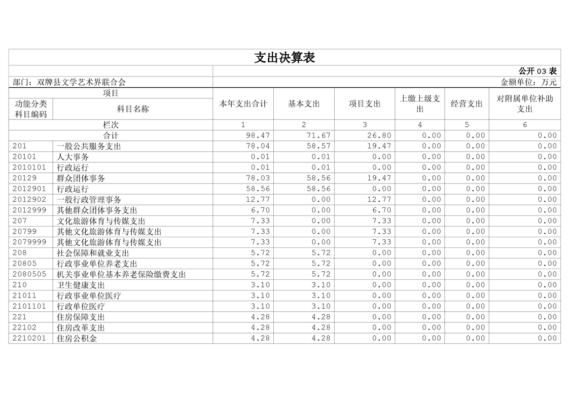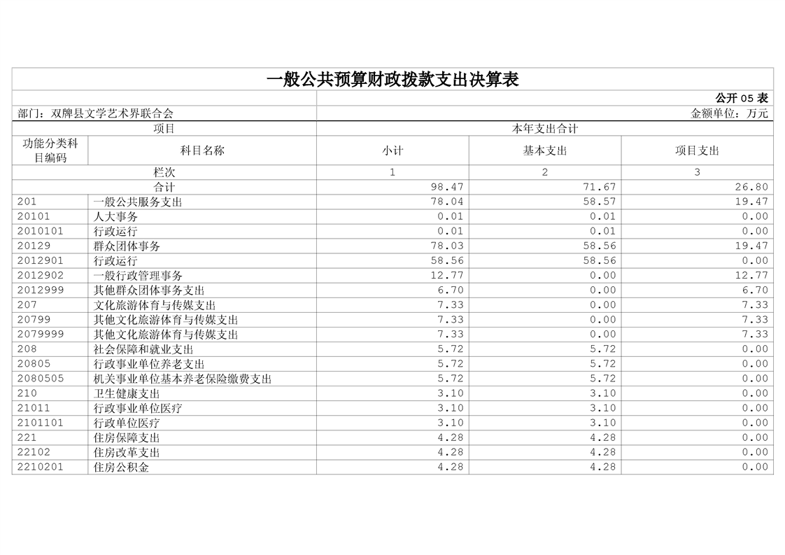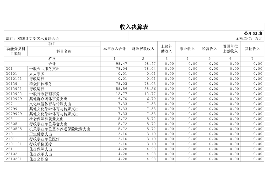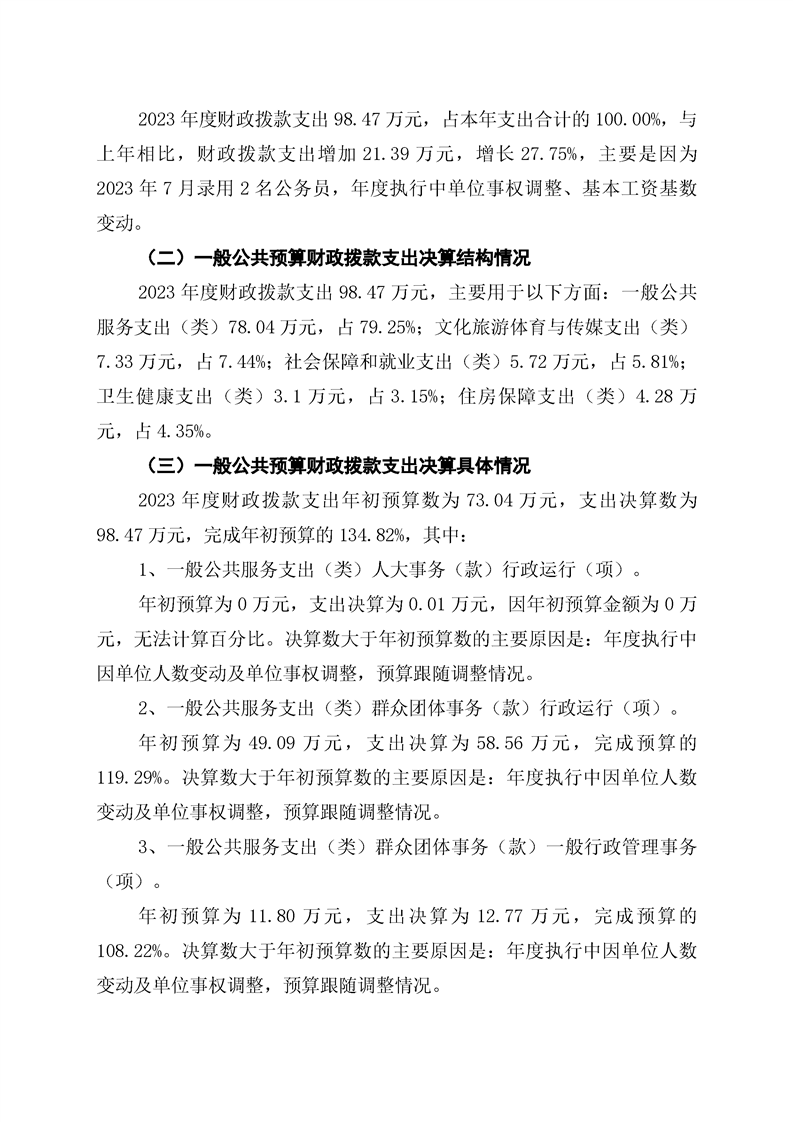 双牌县文学艺术界联合会2023年部门决算公开说明
