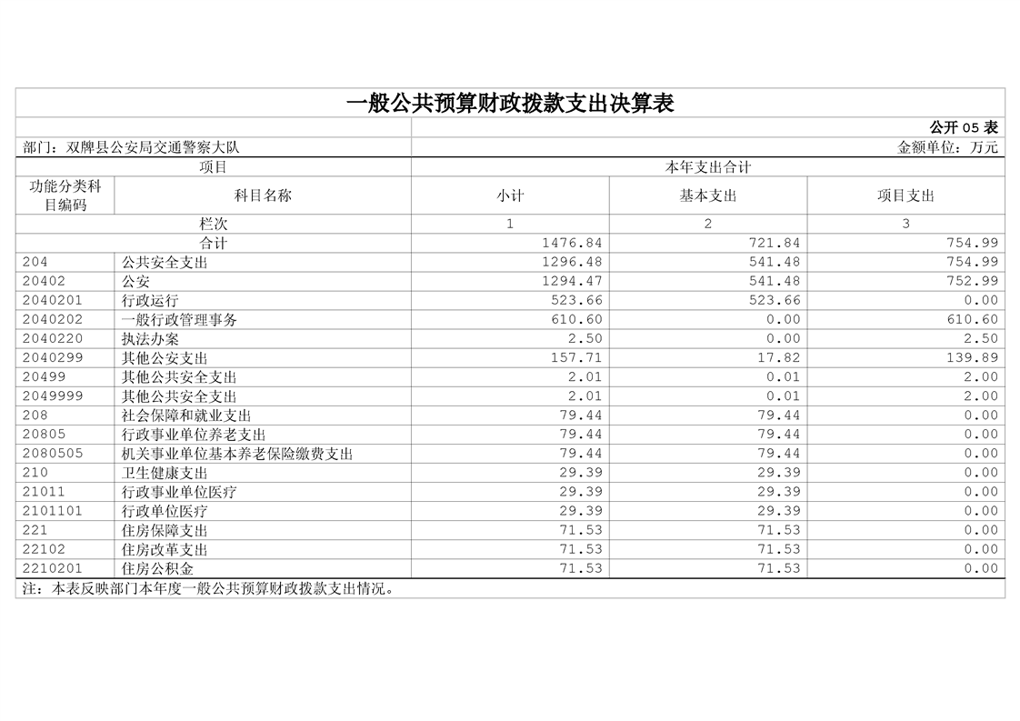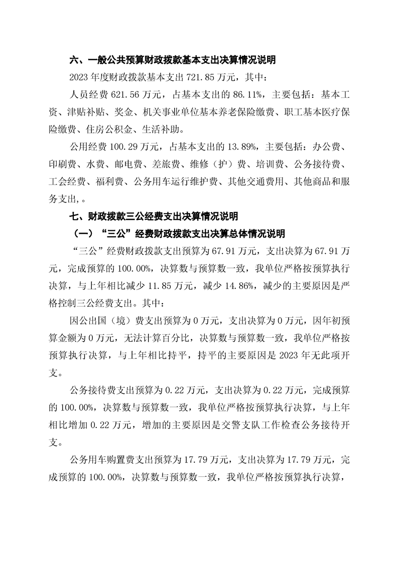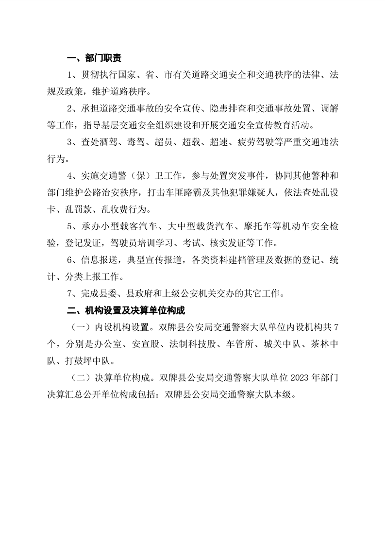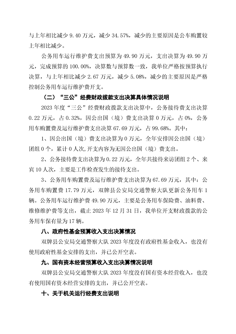 双牌县公安局交通警察大队2023年部门决算公开说明
