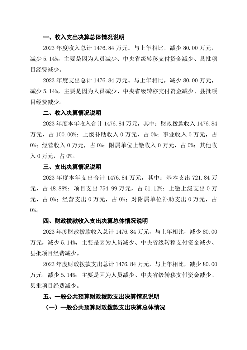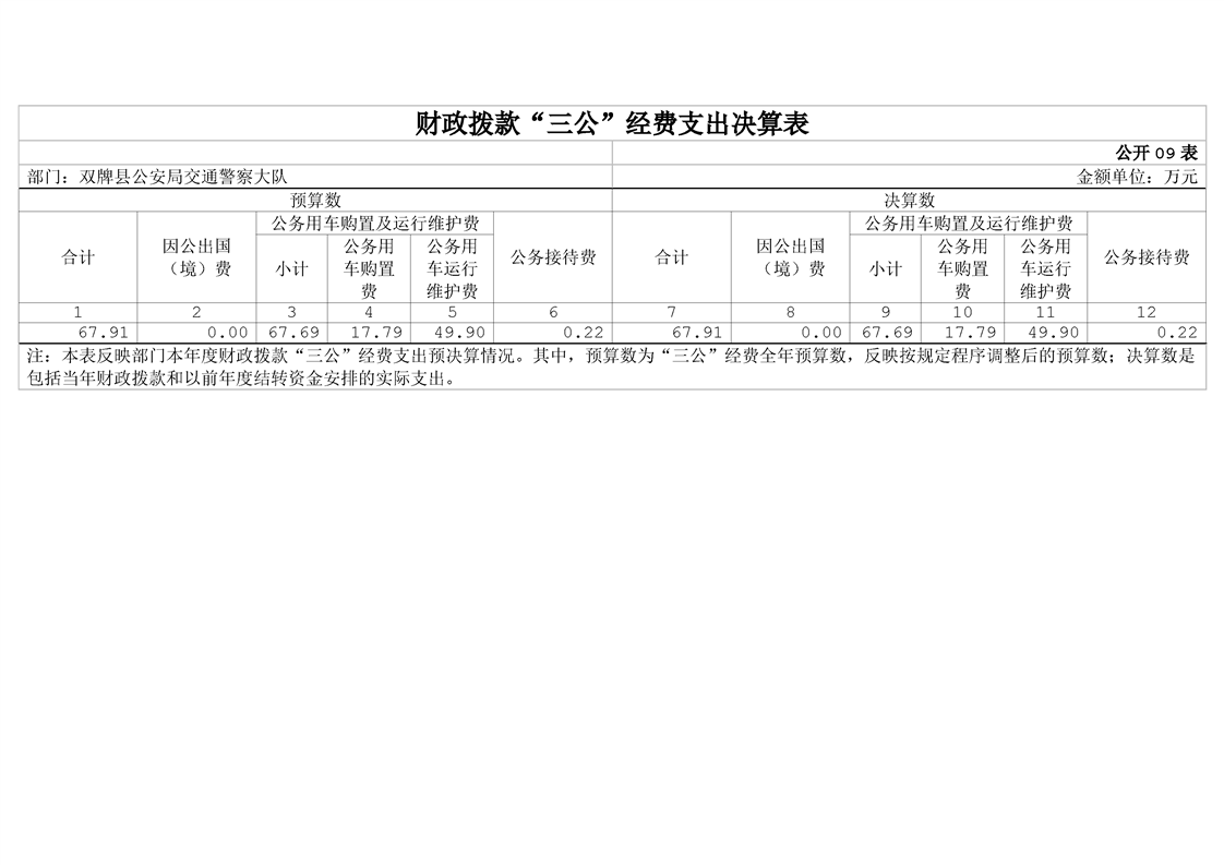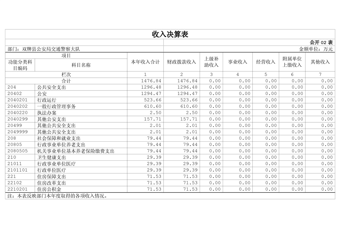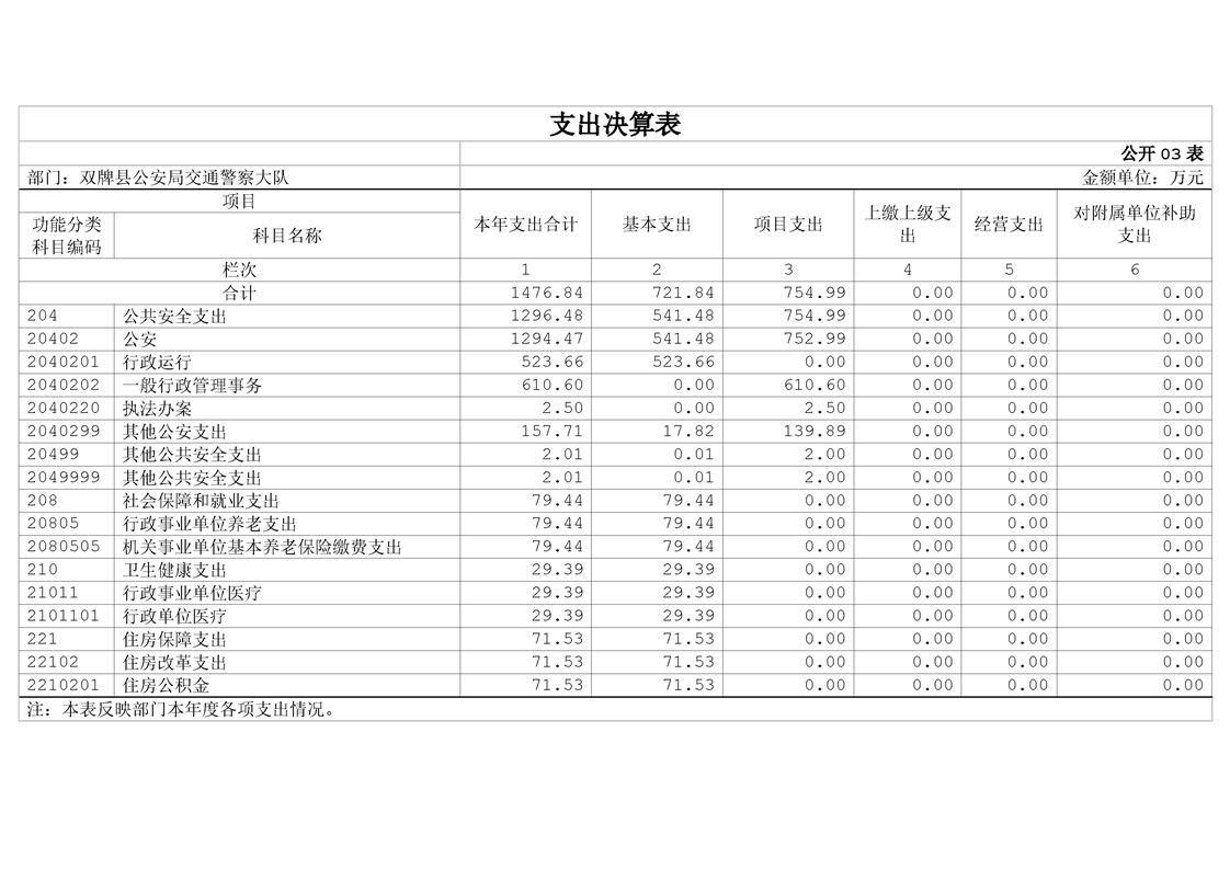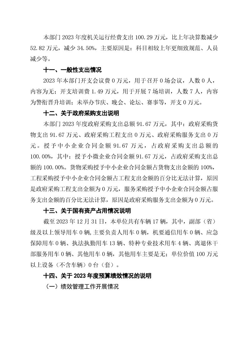 双牌县公安局交通警察大队2023年部门决算公开说明