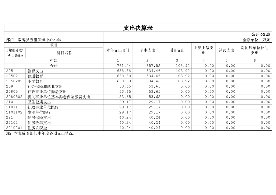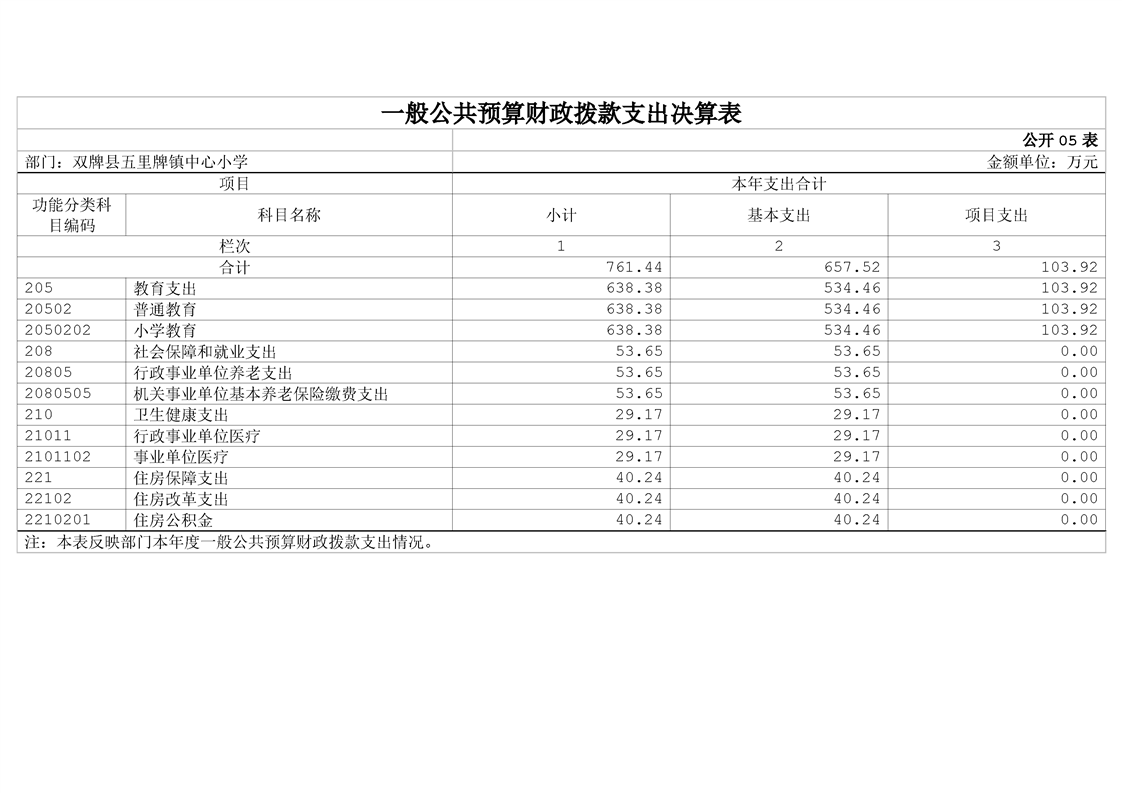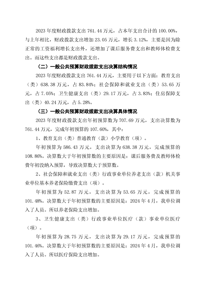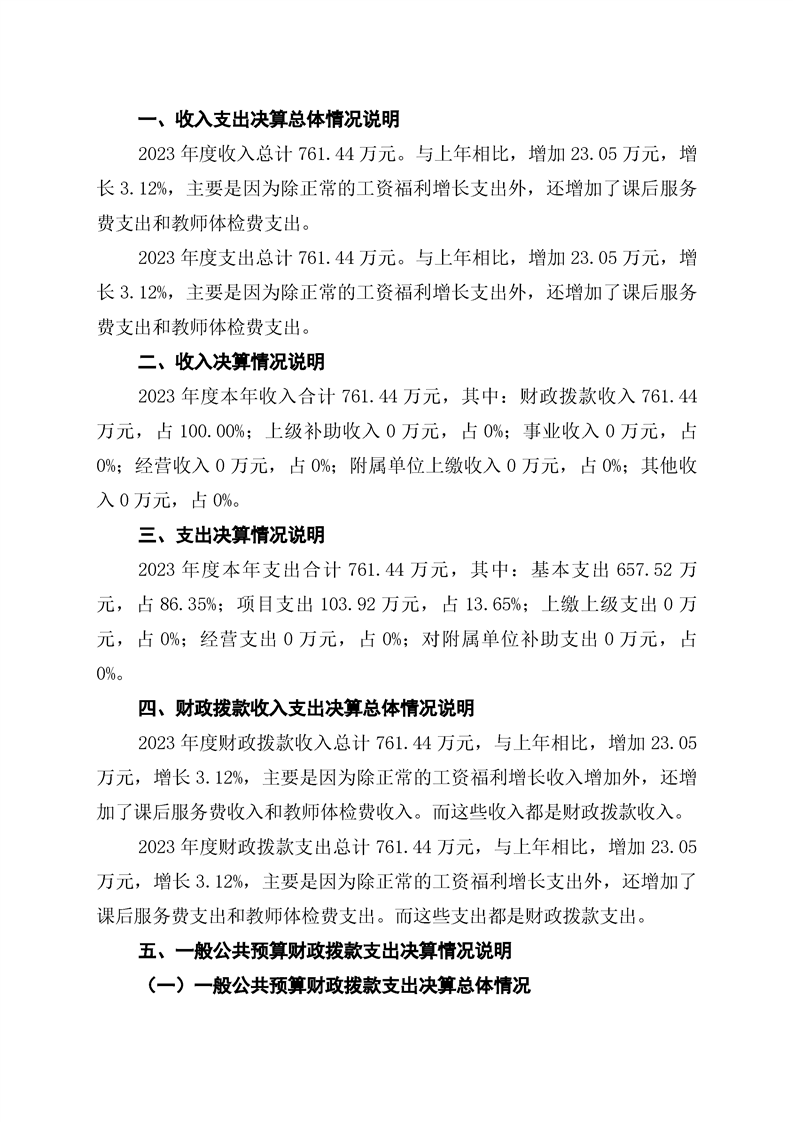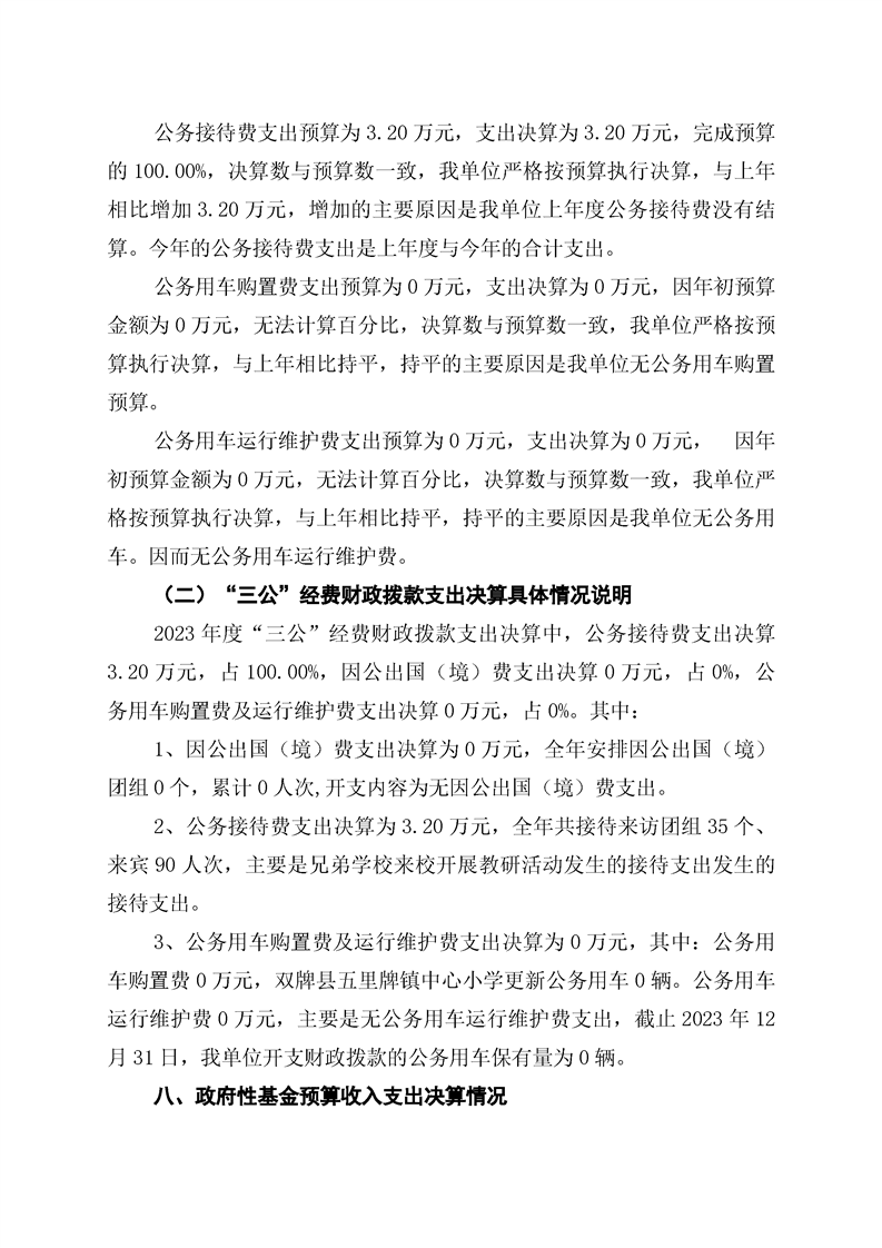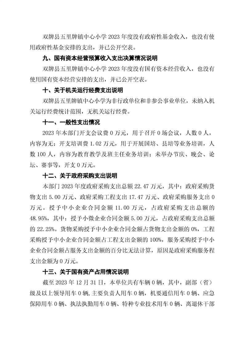 双牌县五里牌镇中心小学2023年部门决算公开说明