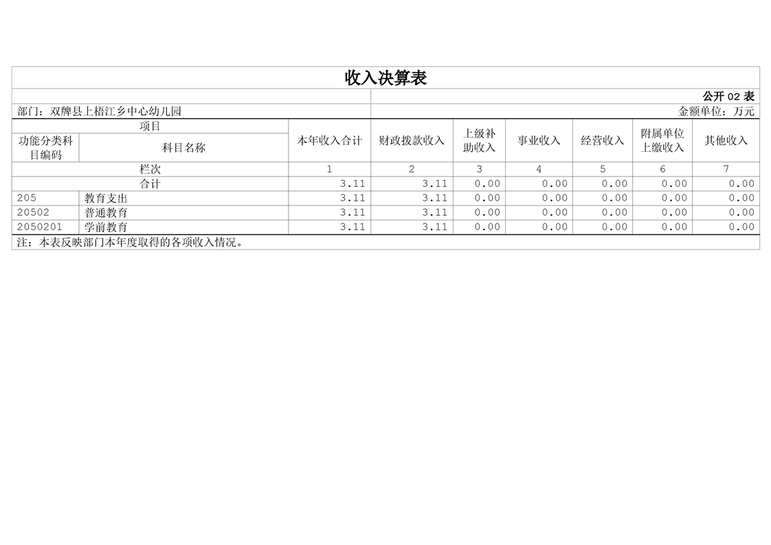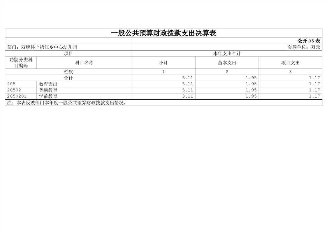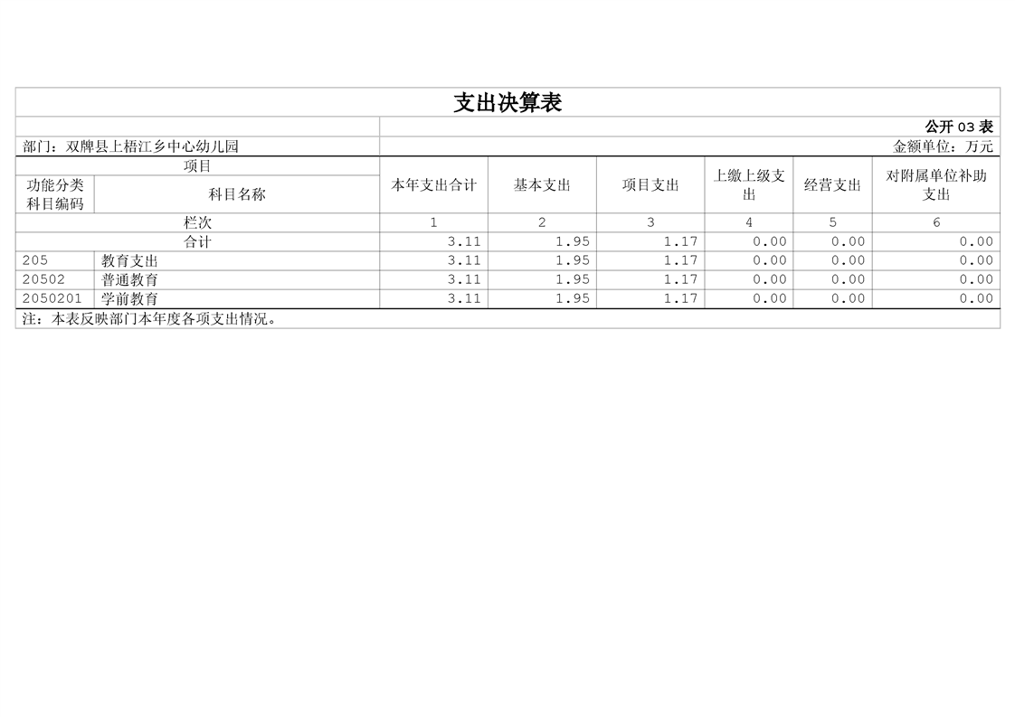 双牌县上梧江乡中心幼儿园2023年部门决算公开说明