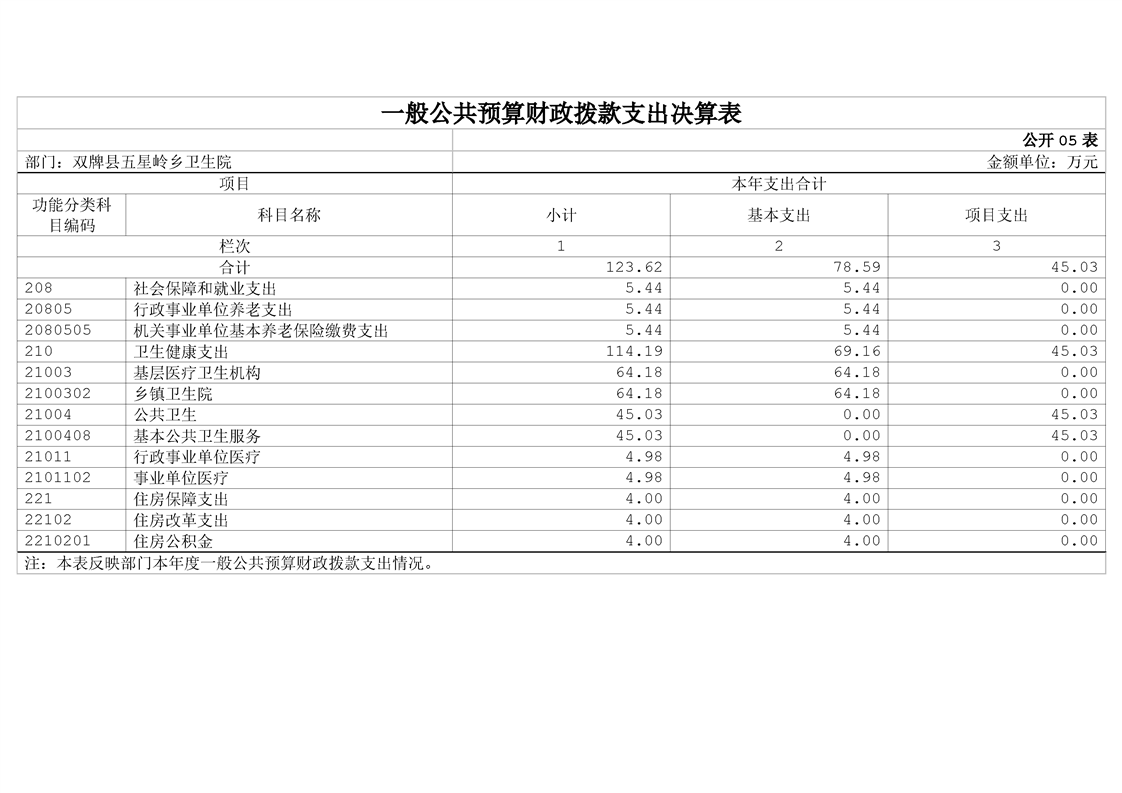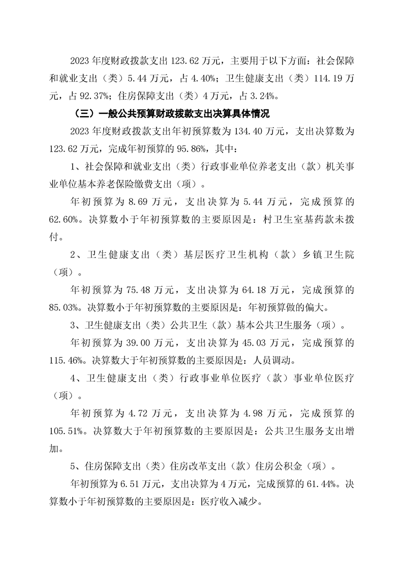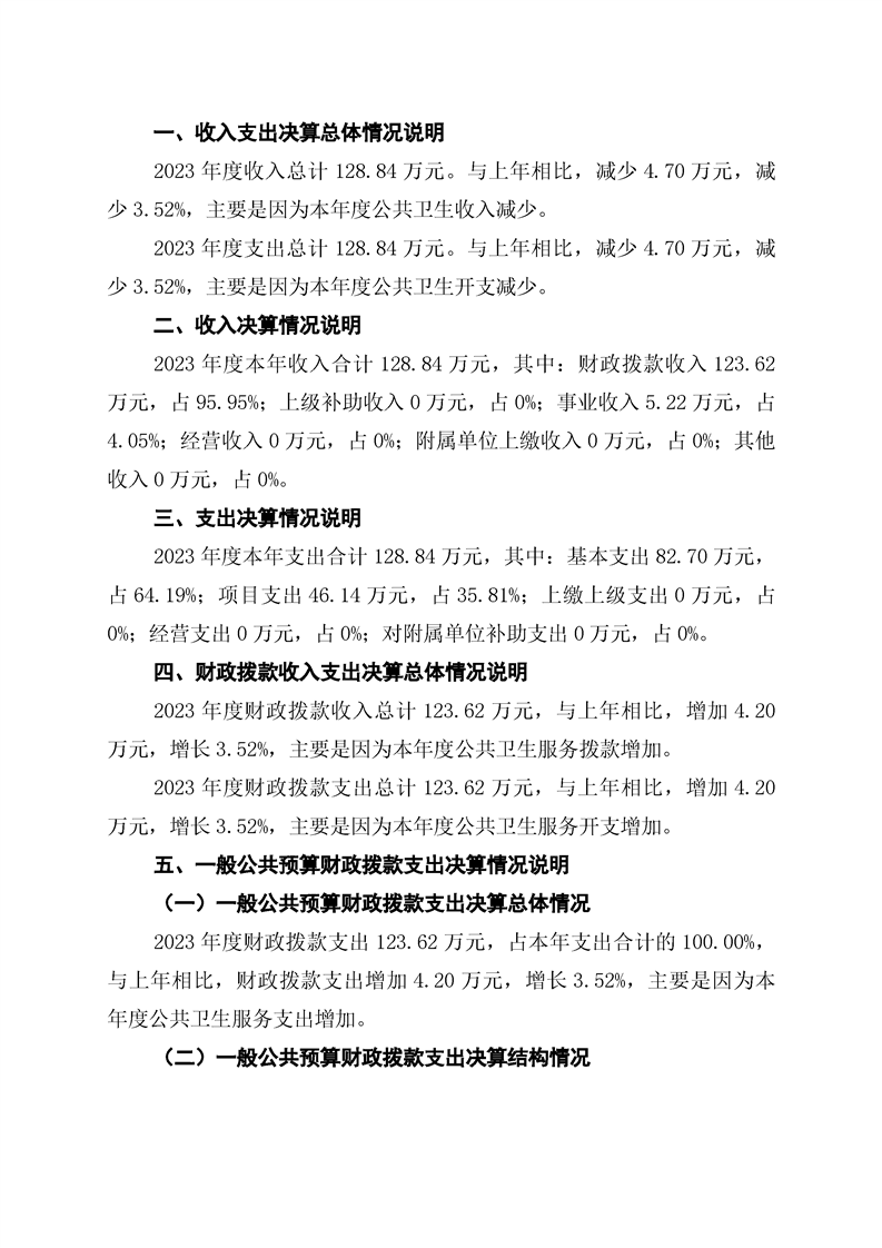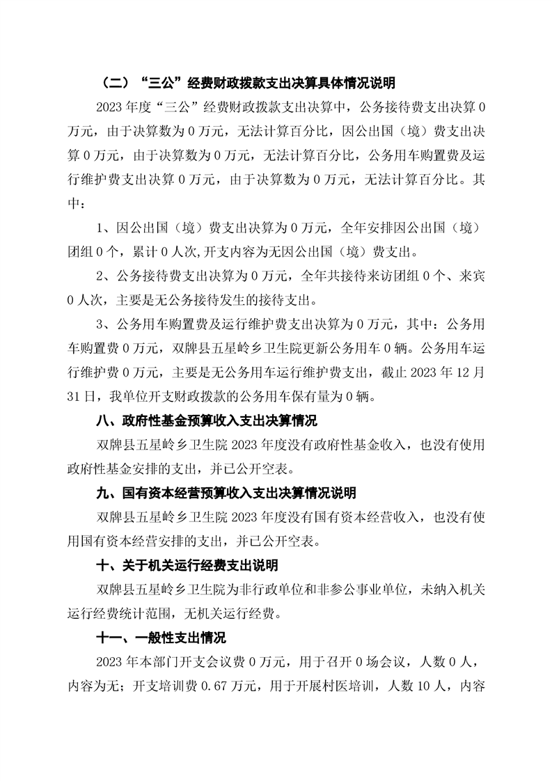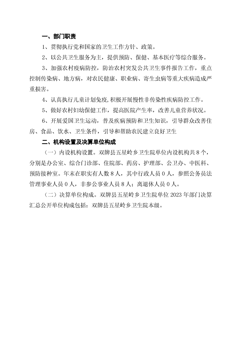 双牌县五星岭乡卫生院2023年部门决算公开说明