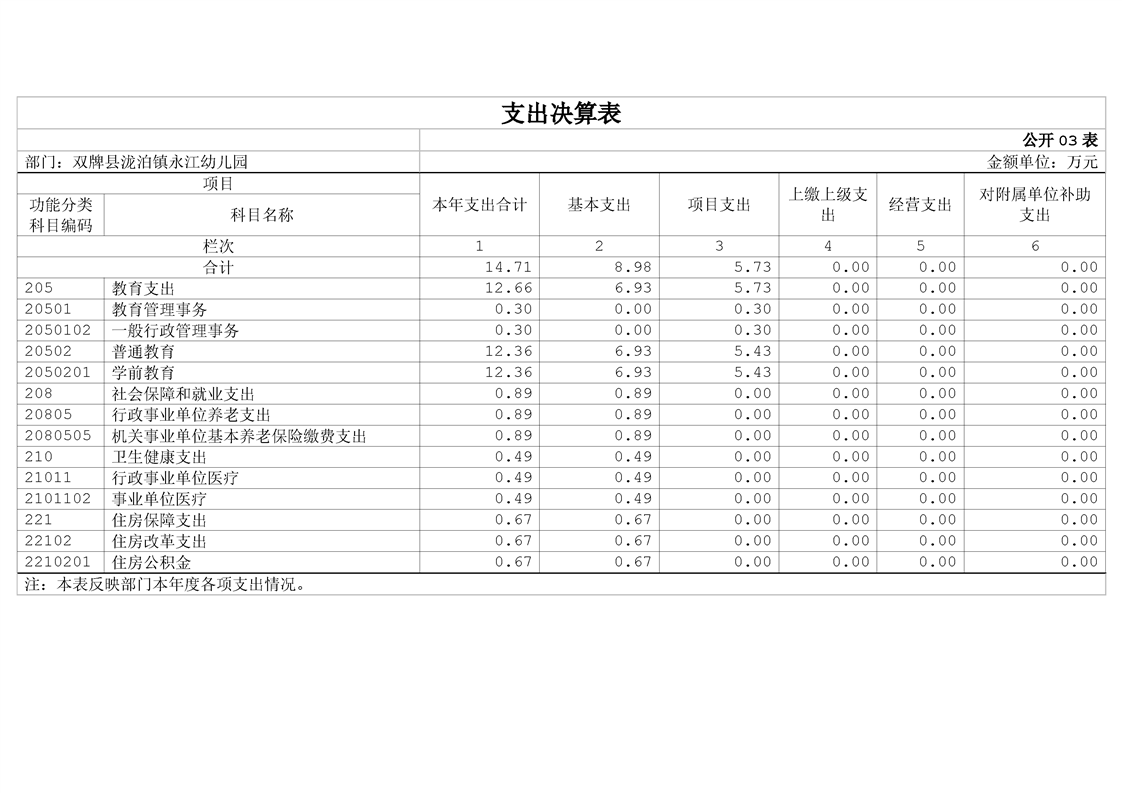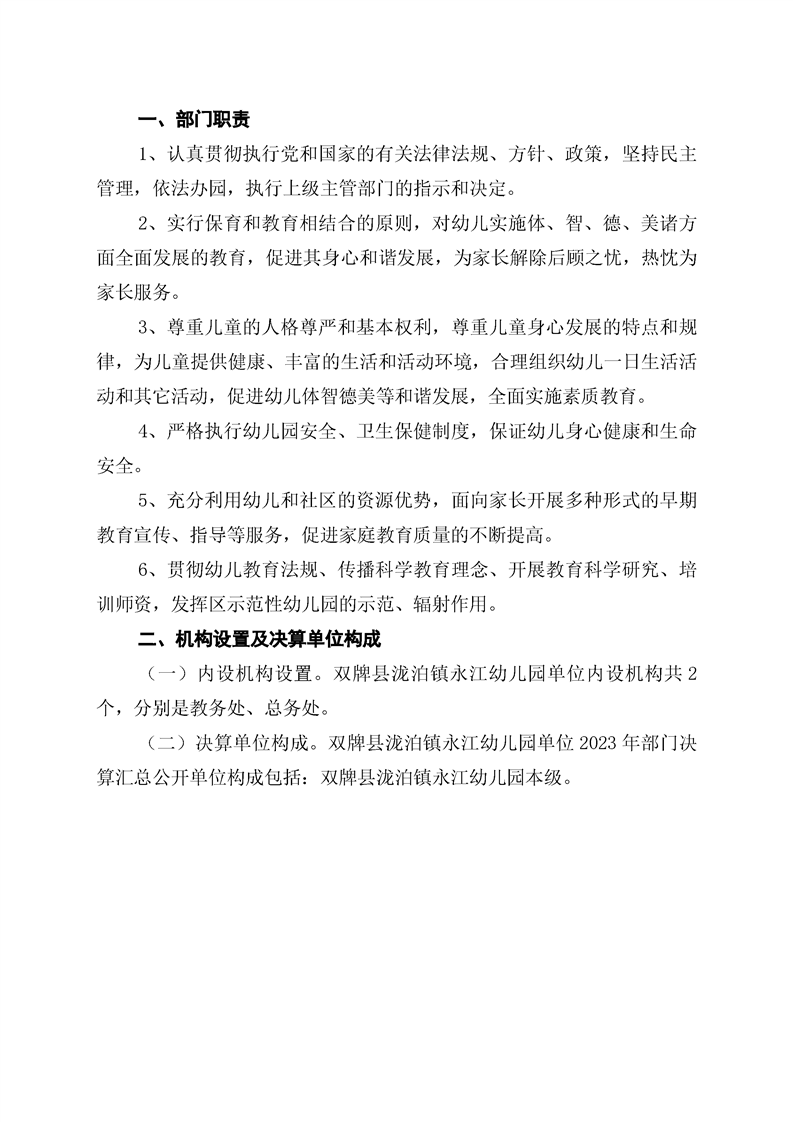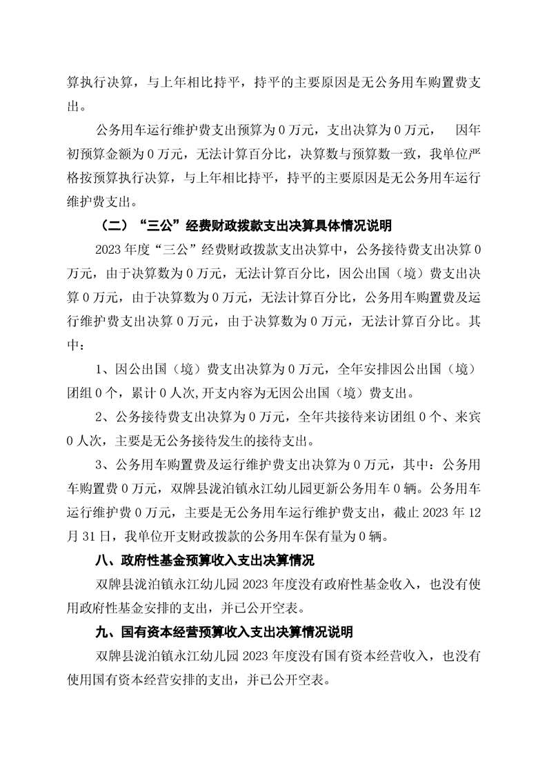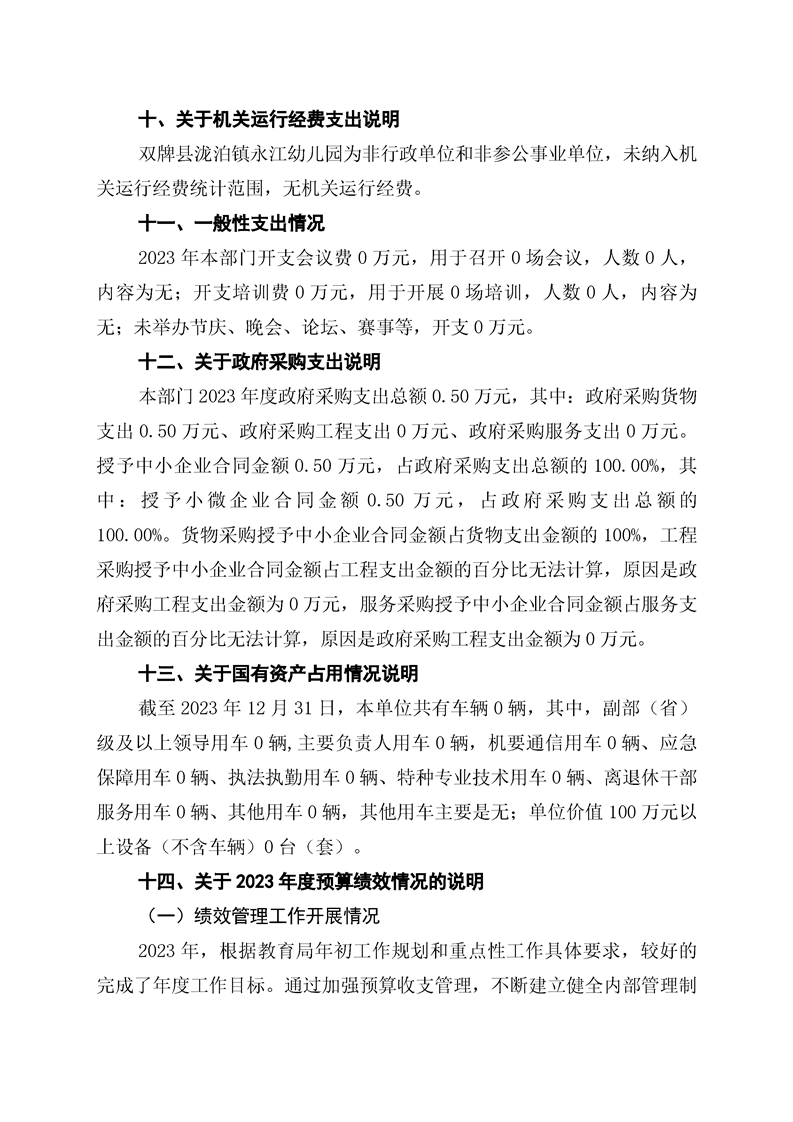 双牌县泷泊镇永江幼儿园2023年部门决算公开说明