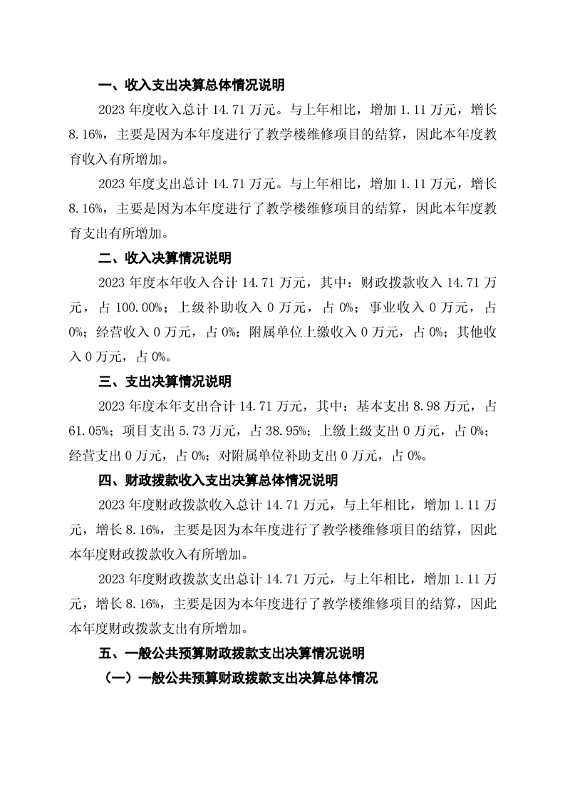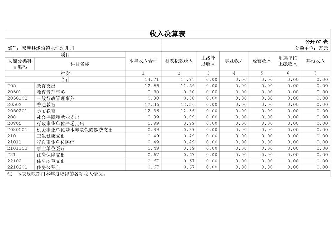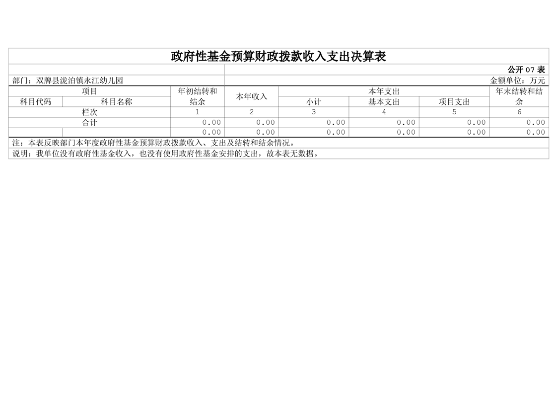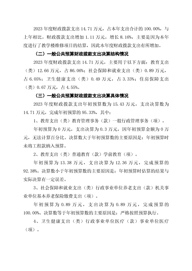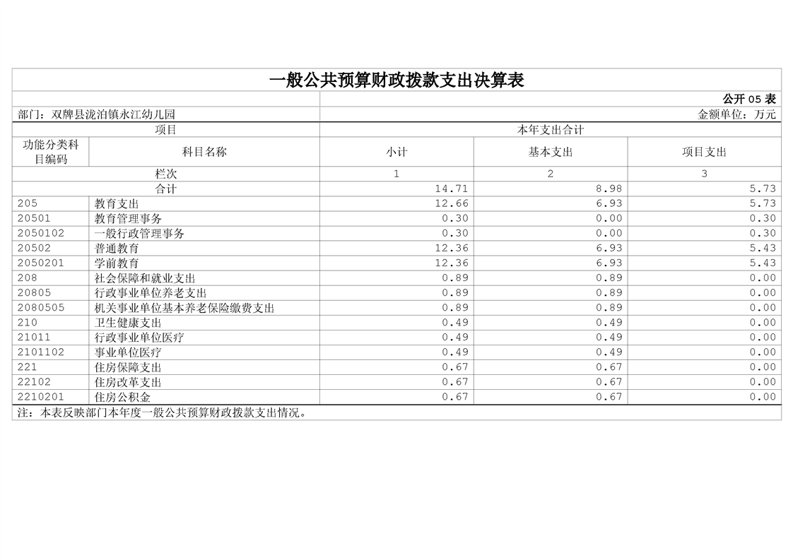 双牌县泷泊镇永江幼儿园2023年部门决算公开说明
