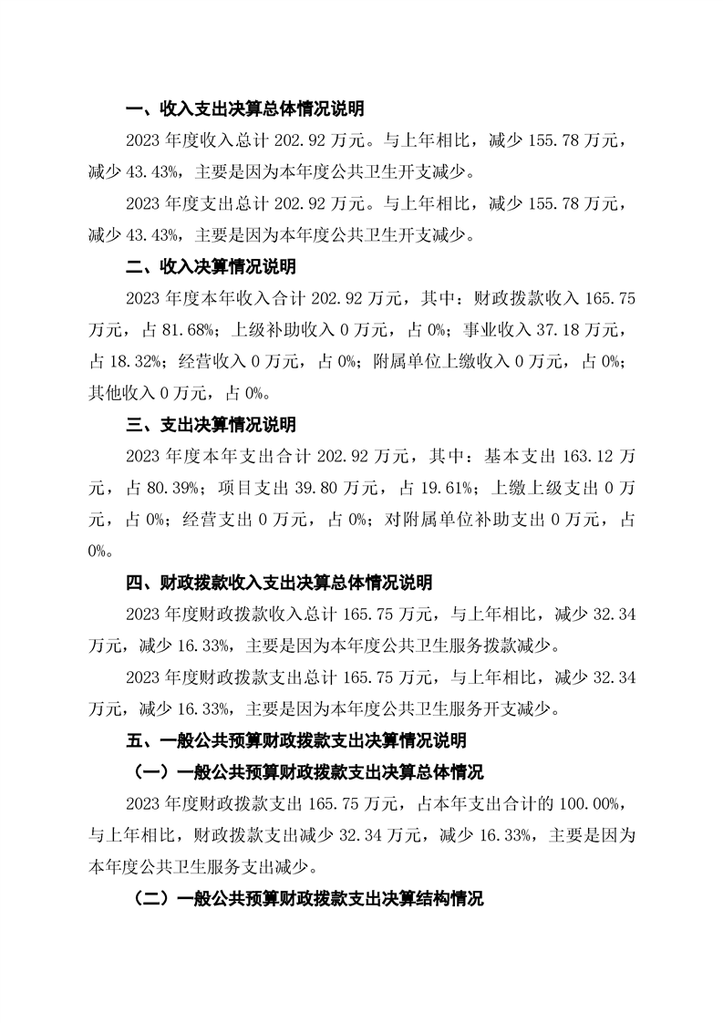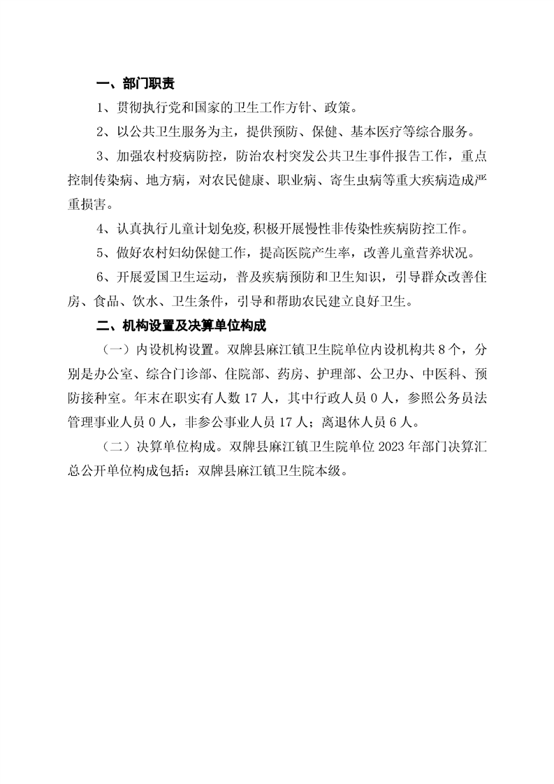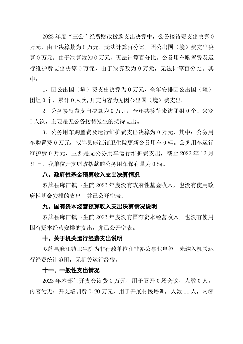 双牌县麻江镇卫生院2023年部门决算公开说明