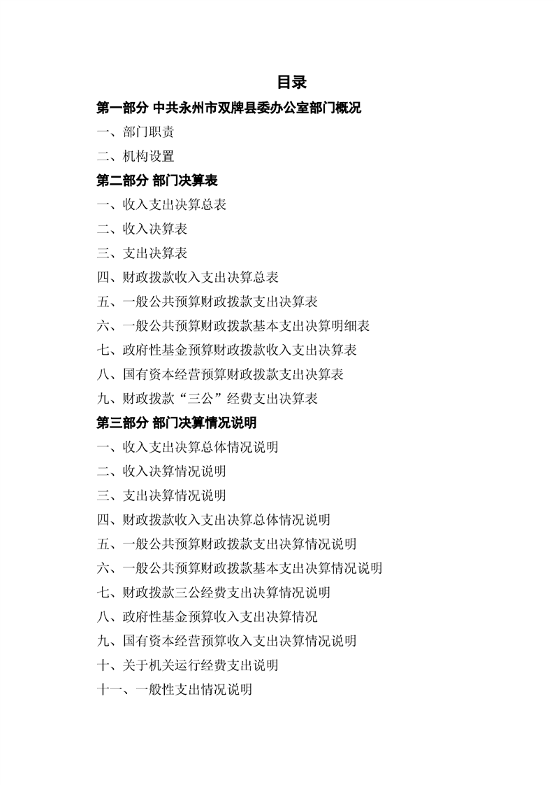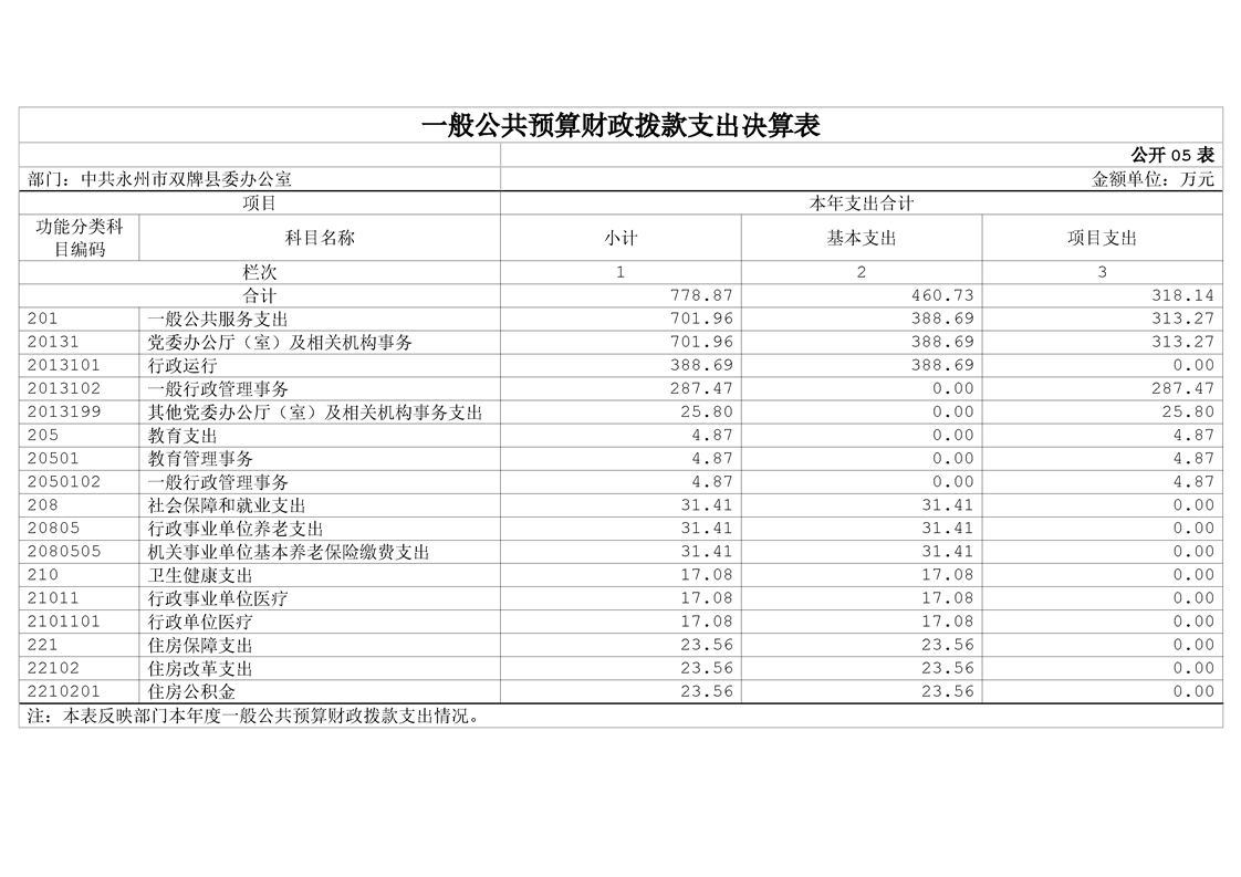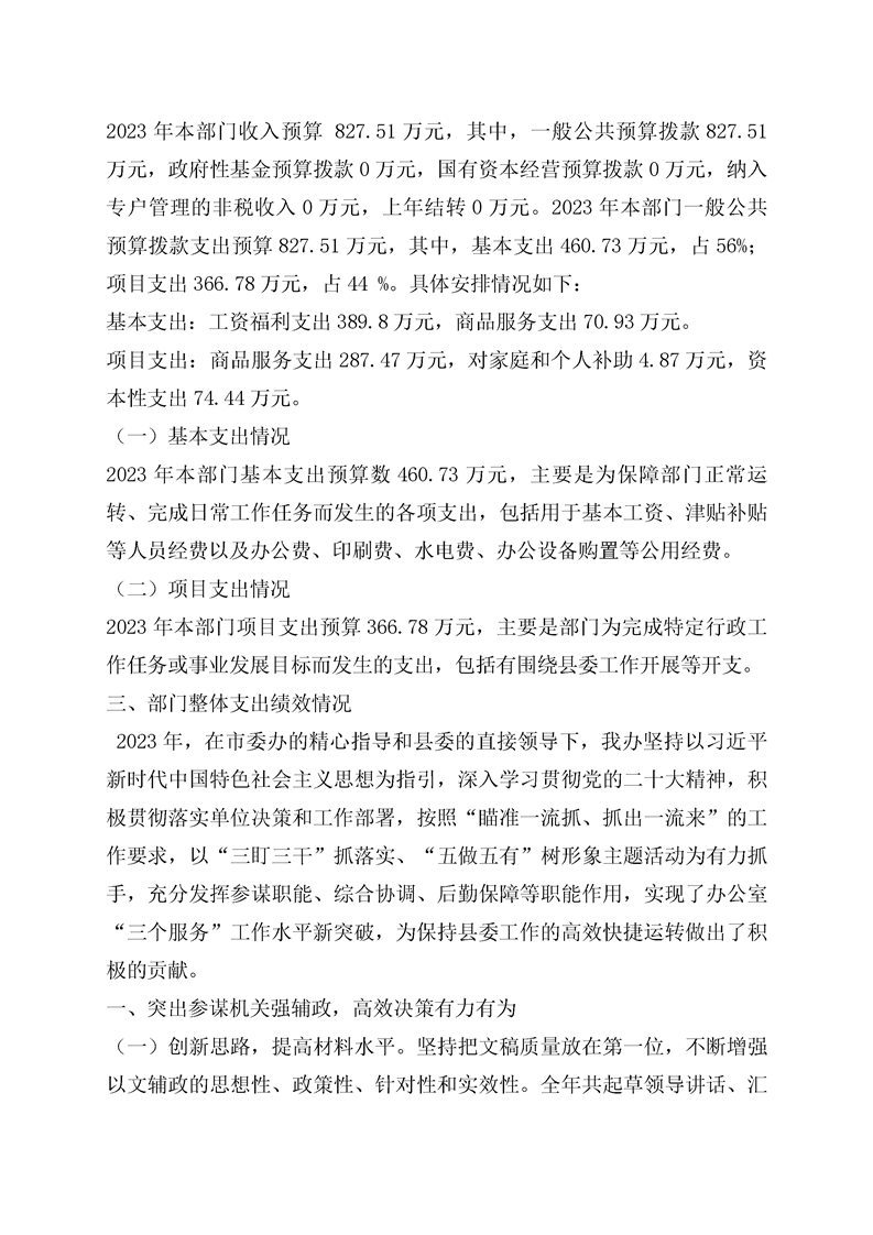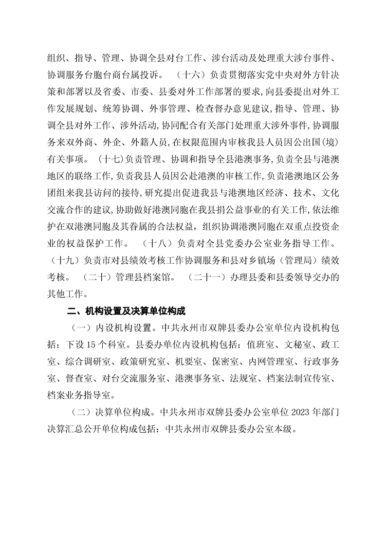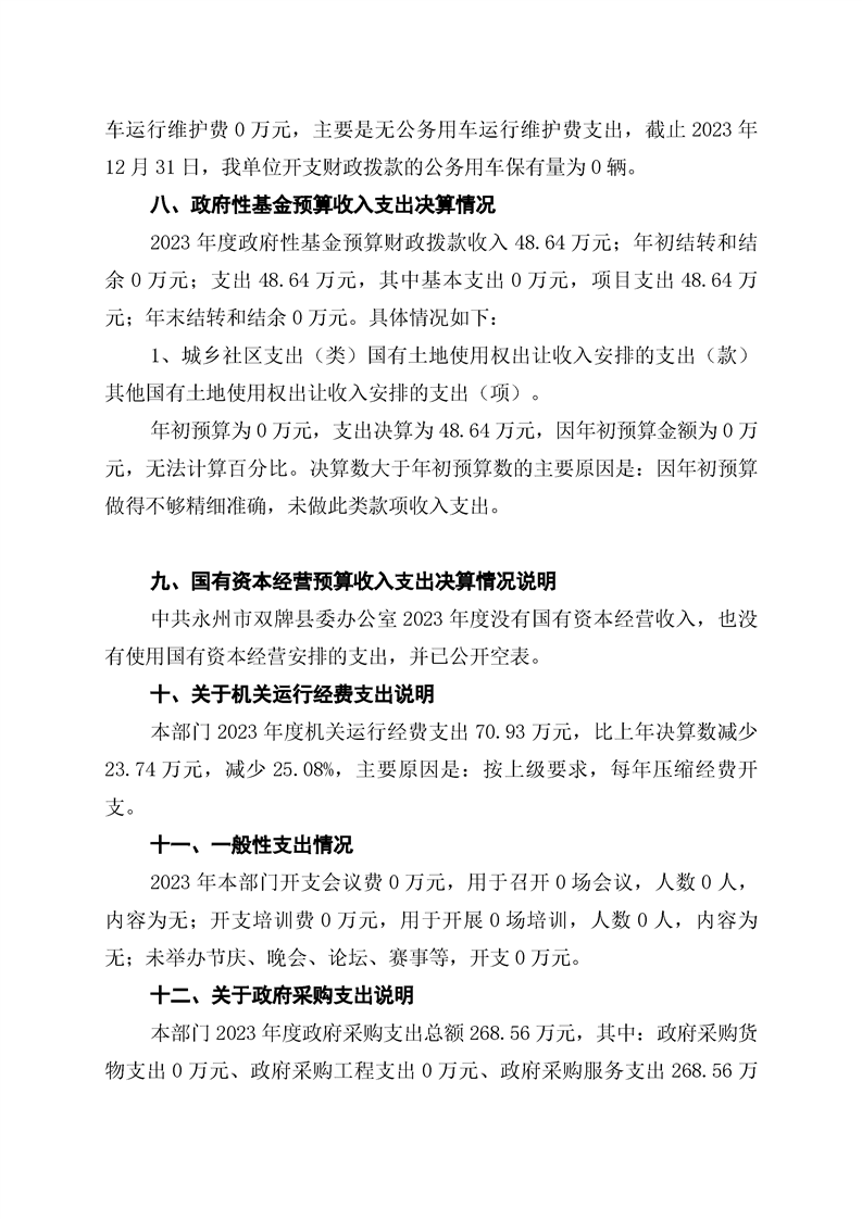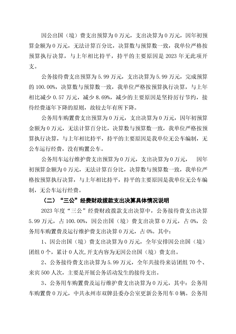 中共永州市双牌县委办公室2023年部门决算公开说明