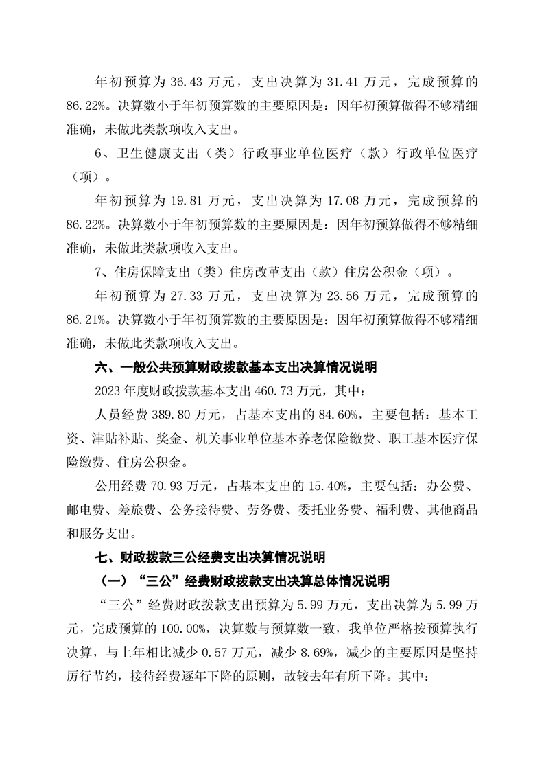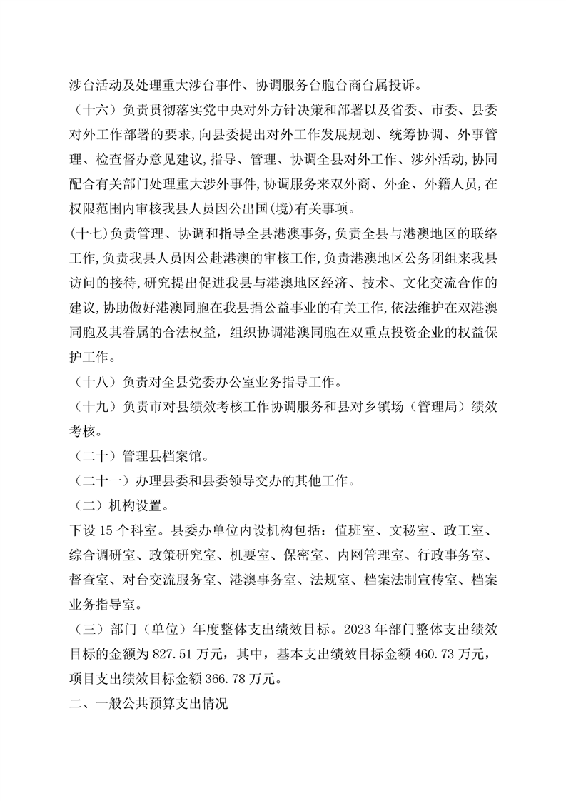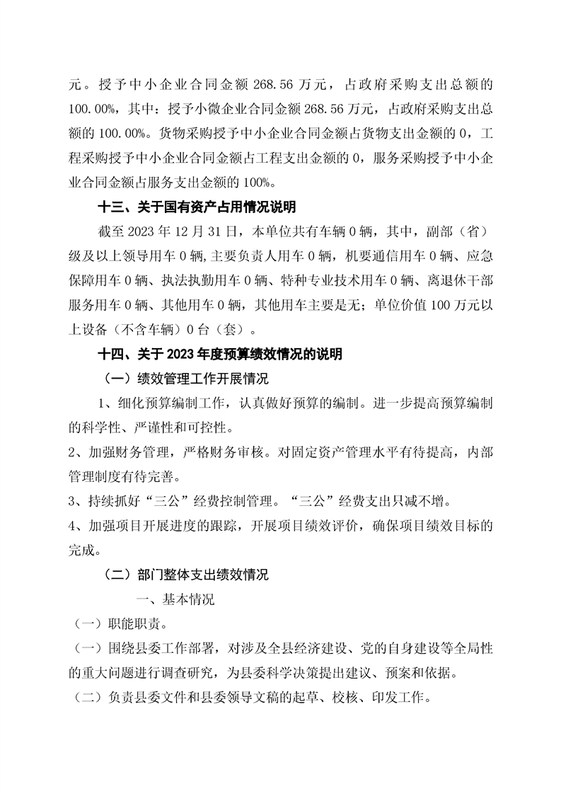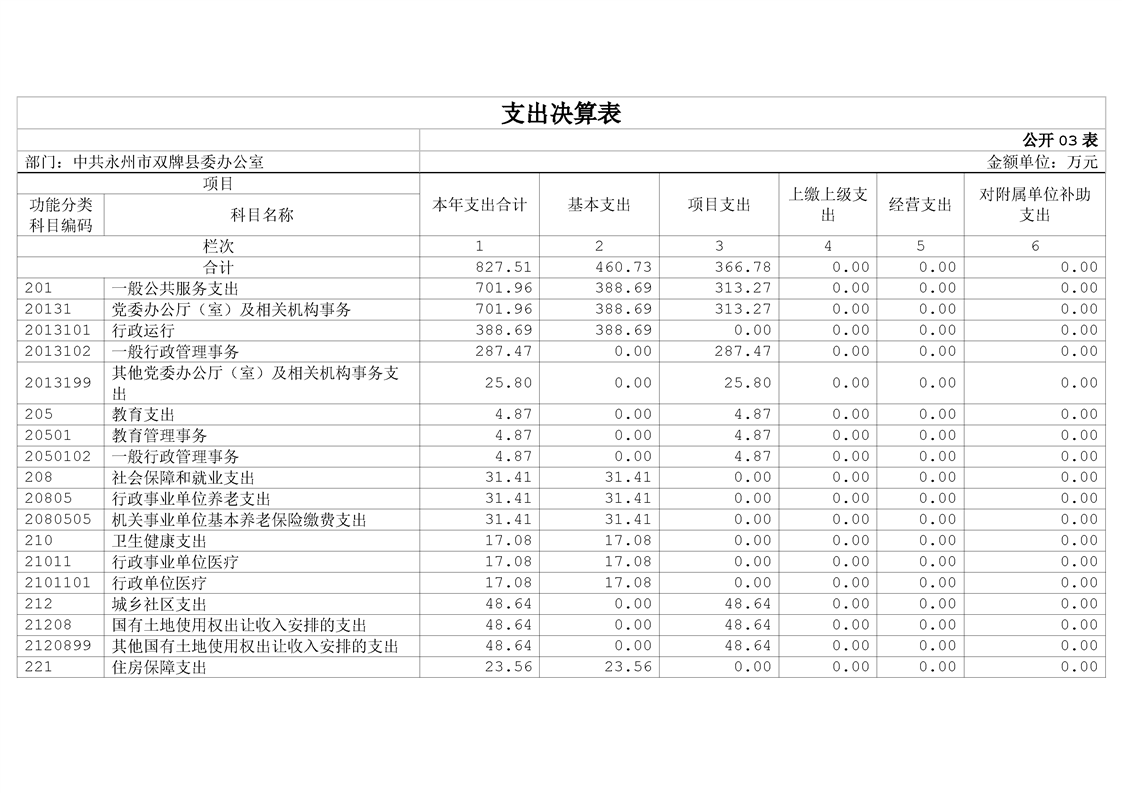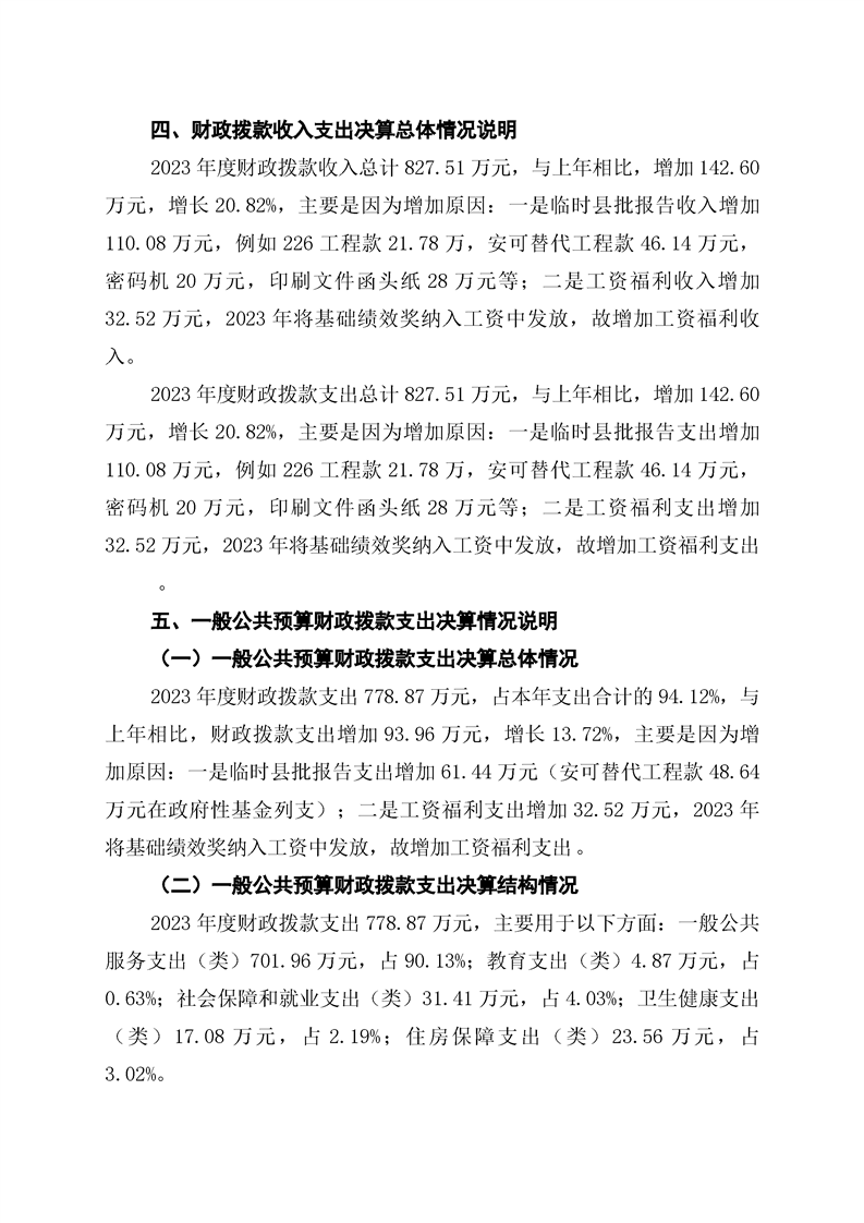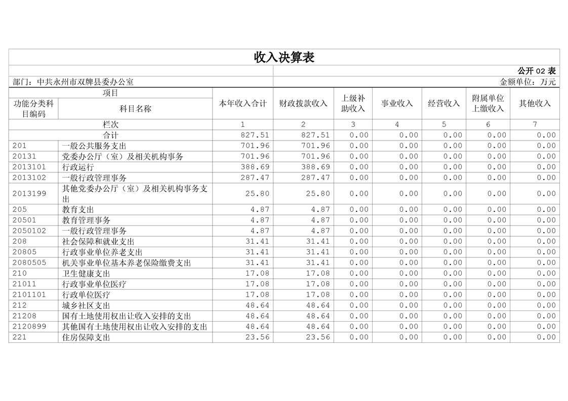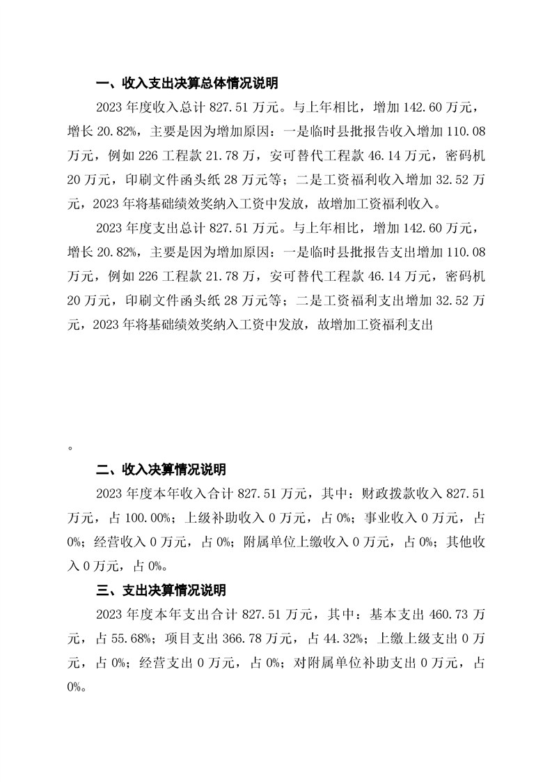 中共永州市双牌县委办公室2023年部门决算公开说明