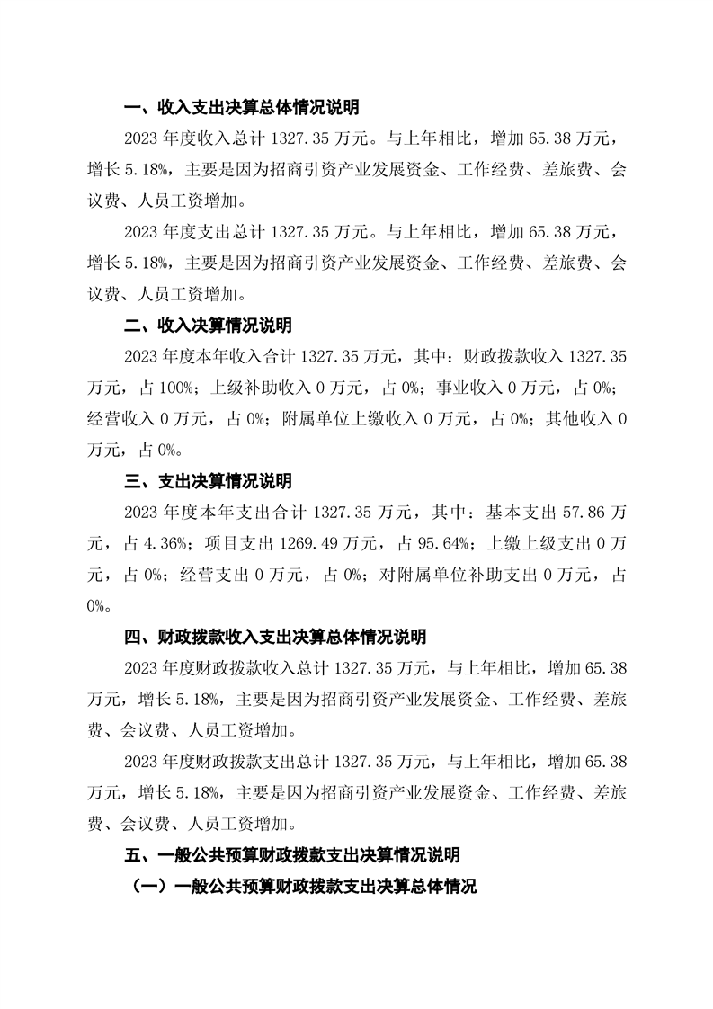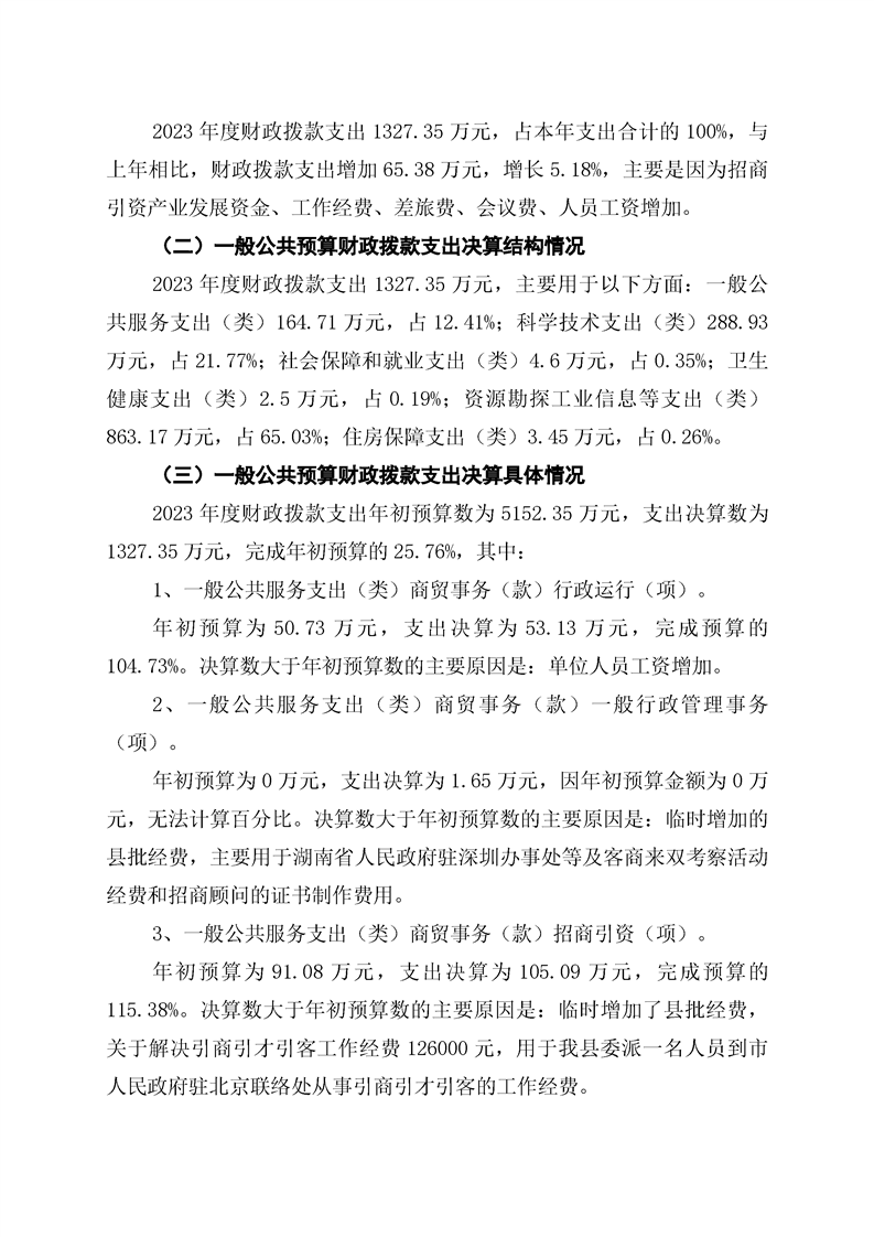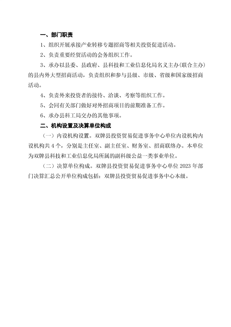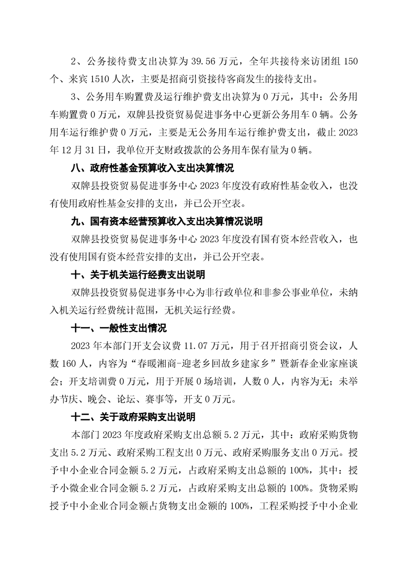 双牌县投资贸易促进事务中心2023年部门决算公开说明