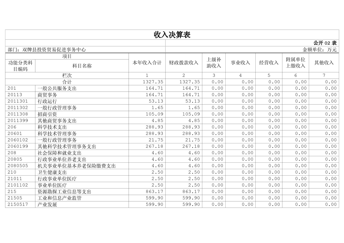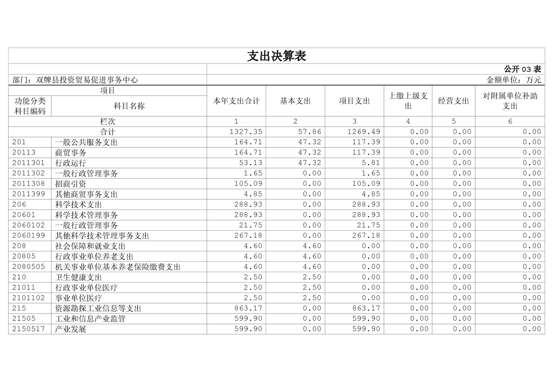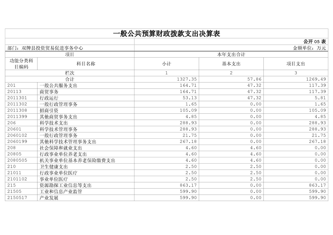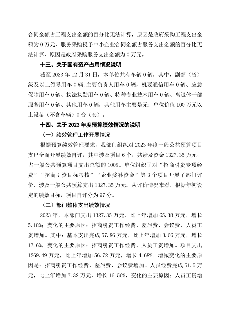 双牌县投资贸易促进事务中心2023年部门决算公开说明
