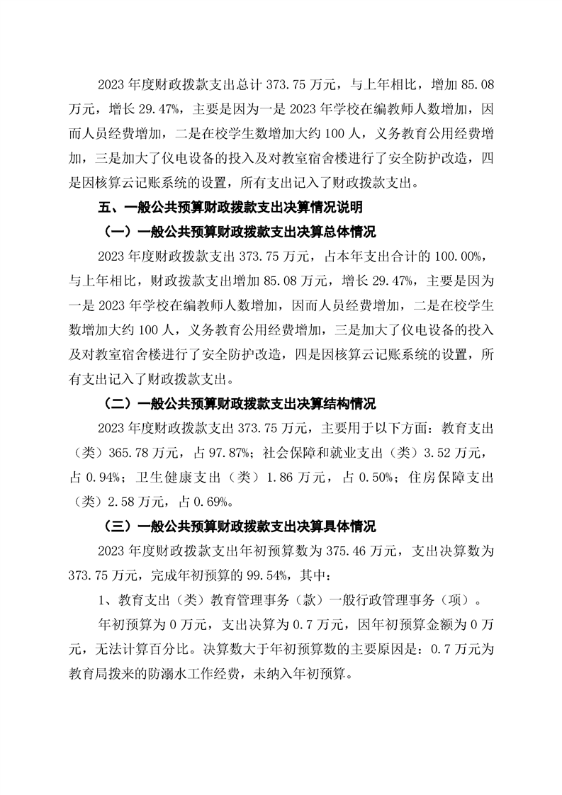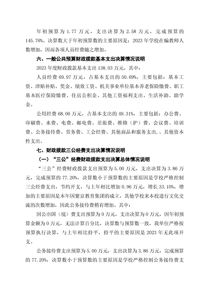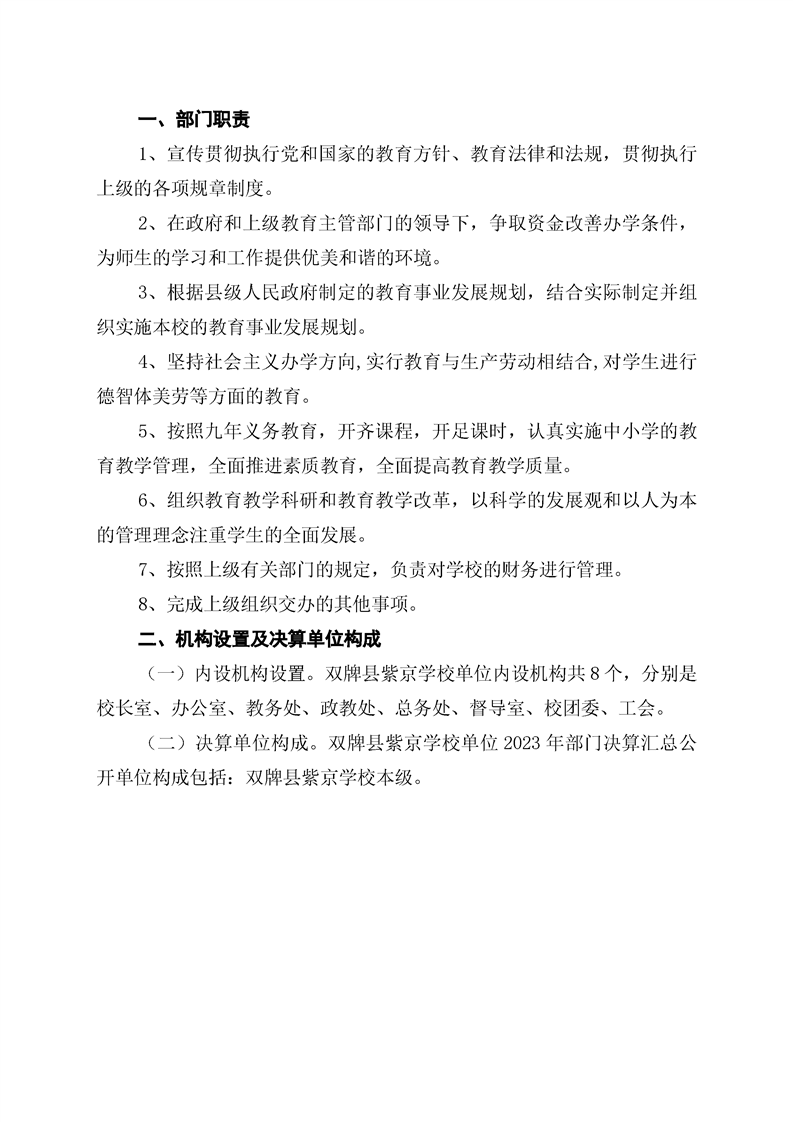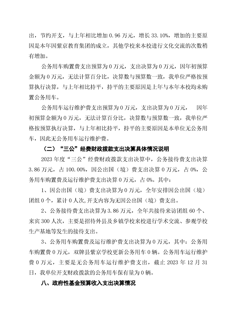 双牌县紫京学校2023年部门决算公开说明