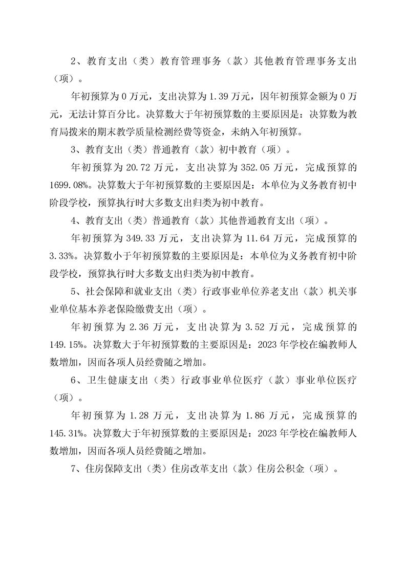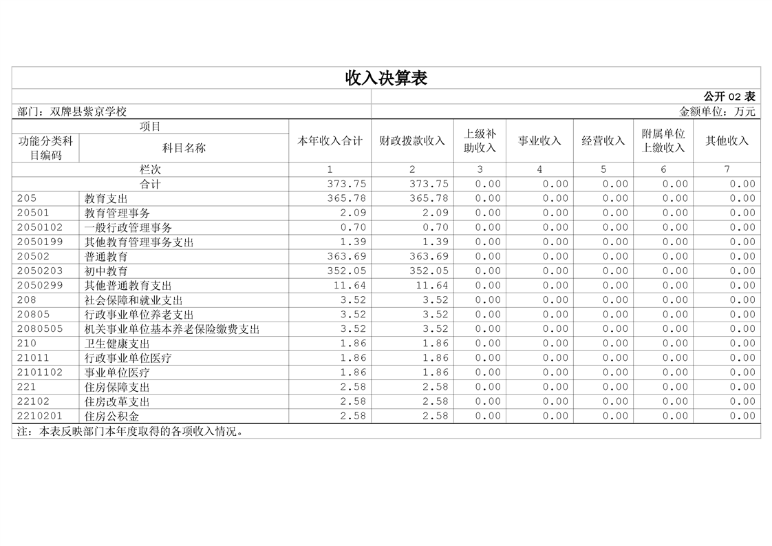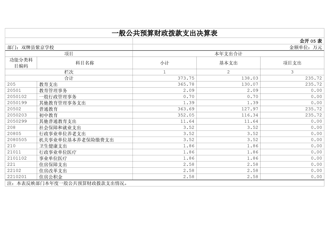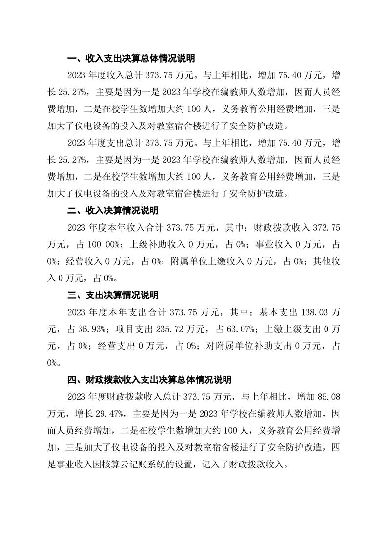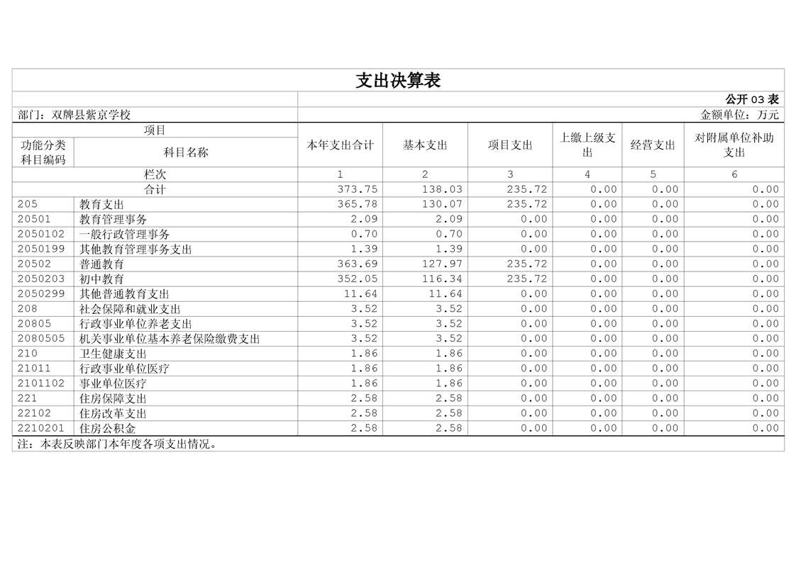 双牌县紫京学校2023年部门决算公开说明