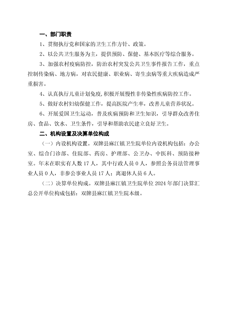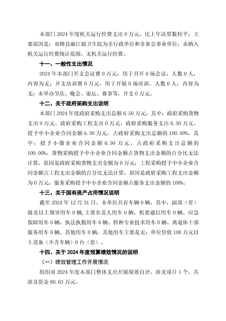 双牌县麻江镇卫生院2024年部门决算公开说明